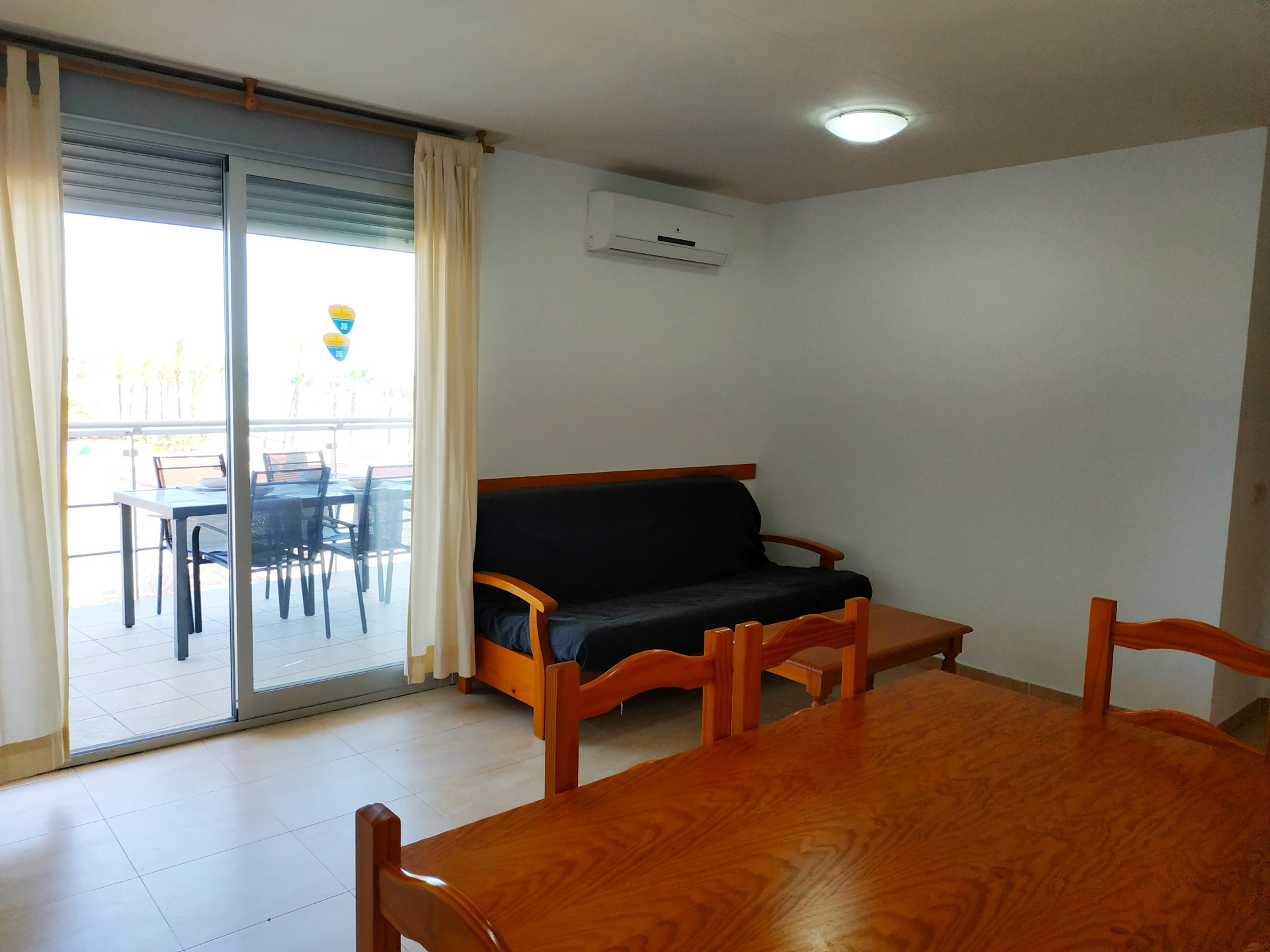 El apartamento en Avd. Papa Luna 115 de Peñiscola 12598, posee 1 dormitorio(s) y capacidad para 5 personas. Alojamiento de 45 m² confortable. Se encuentra a 80 m del restaurante "Arroceria Polo Sur", 100 m de la playa de arena "Playa Norte", 200 m de la estación de autobuses "Parada Interurbano", 1 km del supermercado "Spar", 1 km del parque acuático "Aqualandia", 3 km de la ciudad "Peñiscola", 5 km de la playa de roca "Raco Calent", 6 km de la estación de tren "Benicarlo/Peñiscola", 7 km del parque natural "Parque natural de la Sierra de Irta", 50 km del campo de Golf "Panoramica", 50 km del aeropuerto "Castellon", 100 km del parque de atracciones "Port Aventura", 150 km del aeropuerto internacional "Manises (Valencia)" y está ubicado en una zona tranquila y junto al mar.Dispone de ascensor, terraza, lavadora, plancha, 2 ventiladores, 1 Televisor.La cocina americana, de vitrocerámica, está equipada con nevera, microondas, horno, congelador, vajilla/cubertería, utensilios/cocina y cafetera.