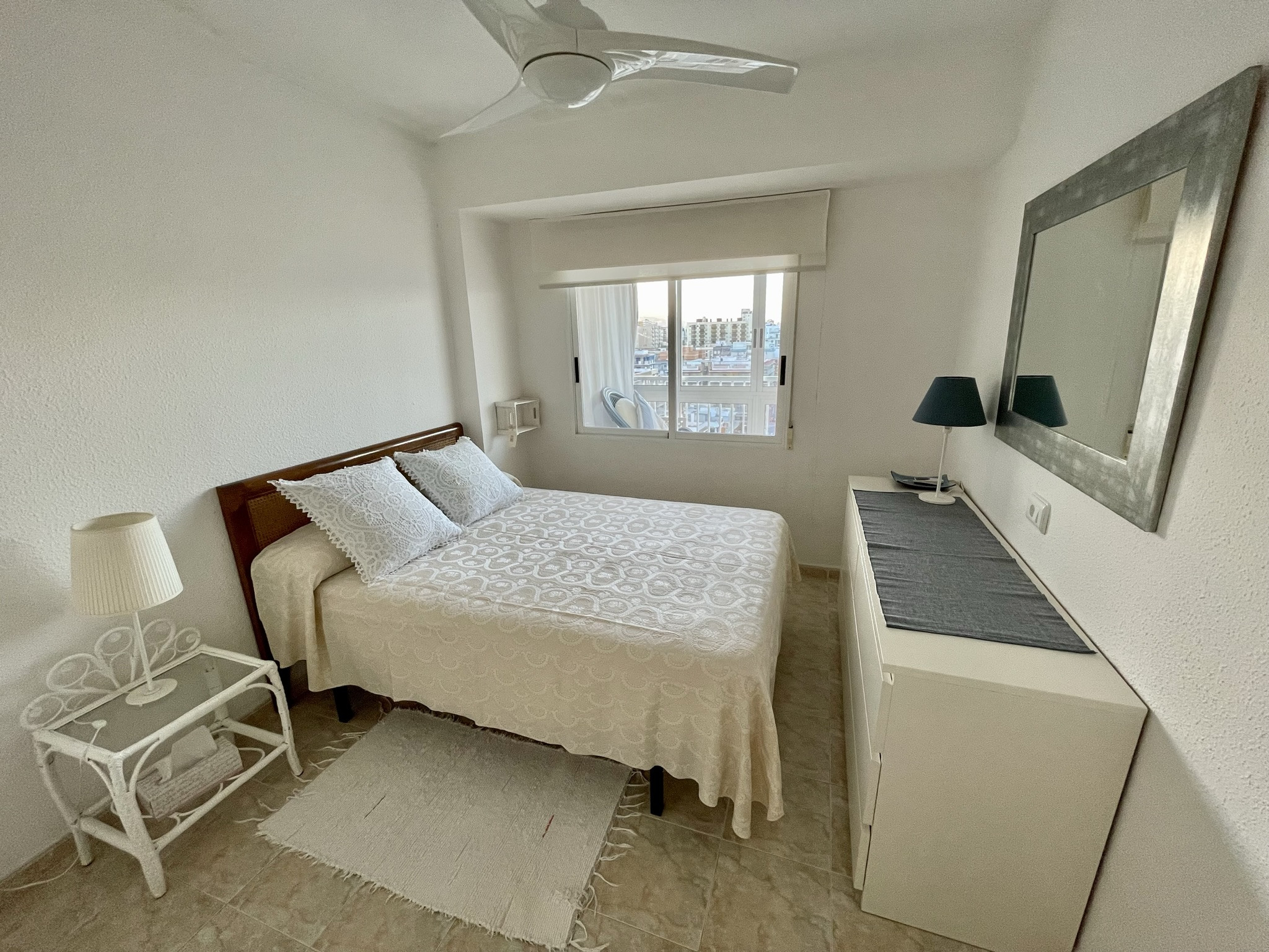 Este apartamento ofrece dos dormitorios dobles con armarios empotrados, bonito, exterior y luminoso baño reformado con bañera, y cocina amplia e independiente equipada con lavavajillas. Salón comedor con salida a la terraza de orientación Norte, desde la cual disfrutamos de unas fabulosas vistas al mar mediterráneo y a la playa. Incluye servicio WIFI y ofrece ventiladores de techa en ambos dormitorios.