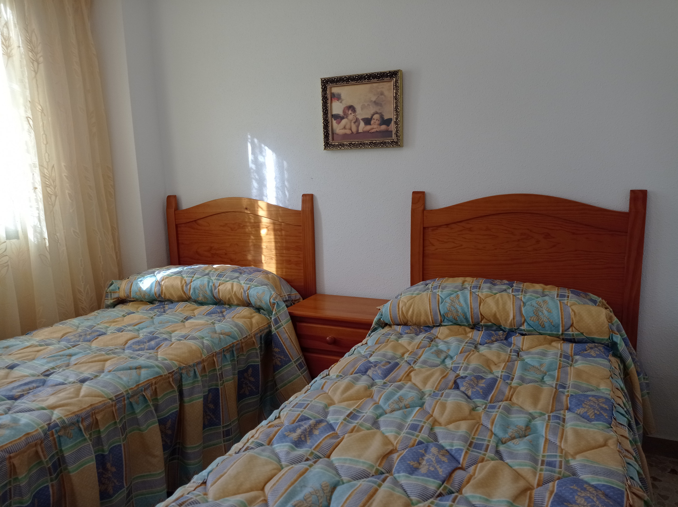 Acogedor apartamento en segunda línea de la Playa de Gandía, situado en el edificio ROMA V, 2ª planta con ascensor. Ofrece tres dormitorios, una cama de matrimonio y tres camas individuales. Un baño con plato de ducha, gran cocina reformada, y salón-comedor con salida a bonita terraza de orientación Este con toldo. Tiene aire acondicionado en el salón y ventiladores de techo en el salón y los tres dormitorios. Incluye plaza de garaje. Está situado en la zona Norte de la Playa de Gandía, zona residencial, en las inmediaciones de todo tipo de servicios, supermercados, restaurantes, etc...