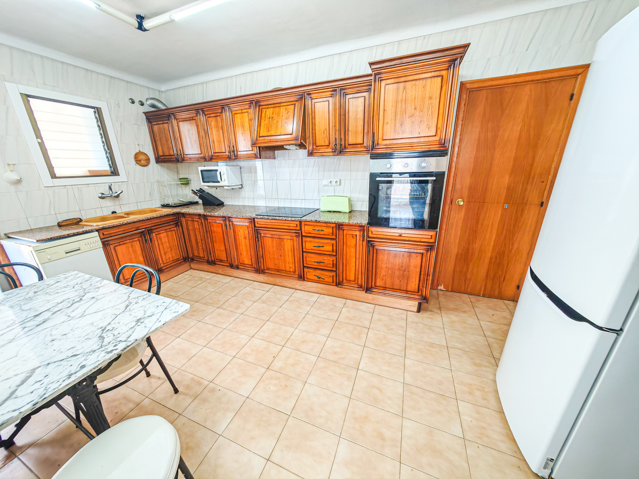 Dispone de 2 baños completos con bañera, perfectos para la comodidad de todos los huéspedes. La cocina independiente está totalmente equipada con electrodomésticos como nevera, congelador, lavadora, lavavajillas, horno, microondas, cafetera y menaje completo, facilitando la preparación de comidas durante la estancia.