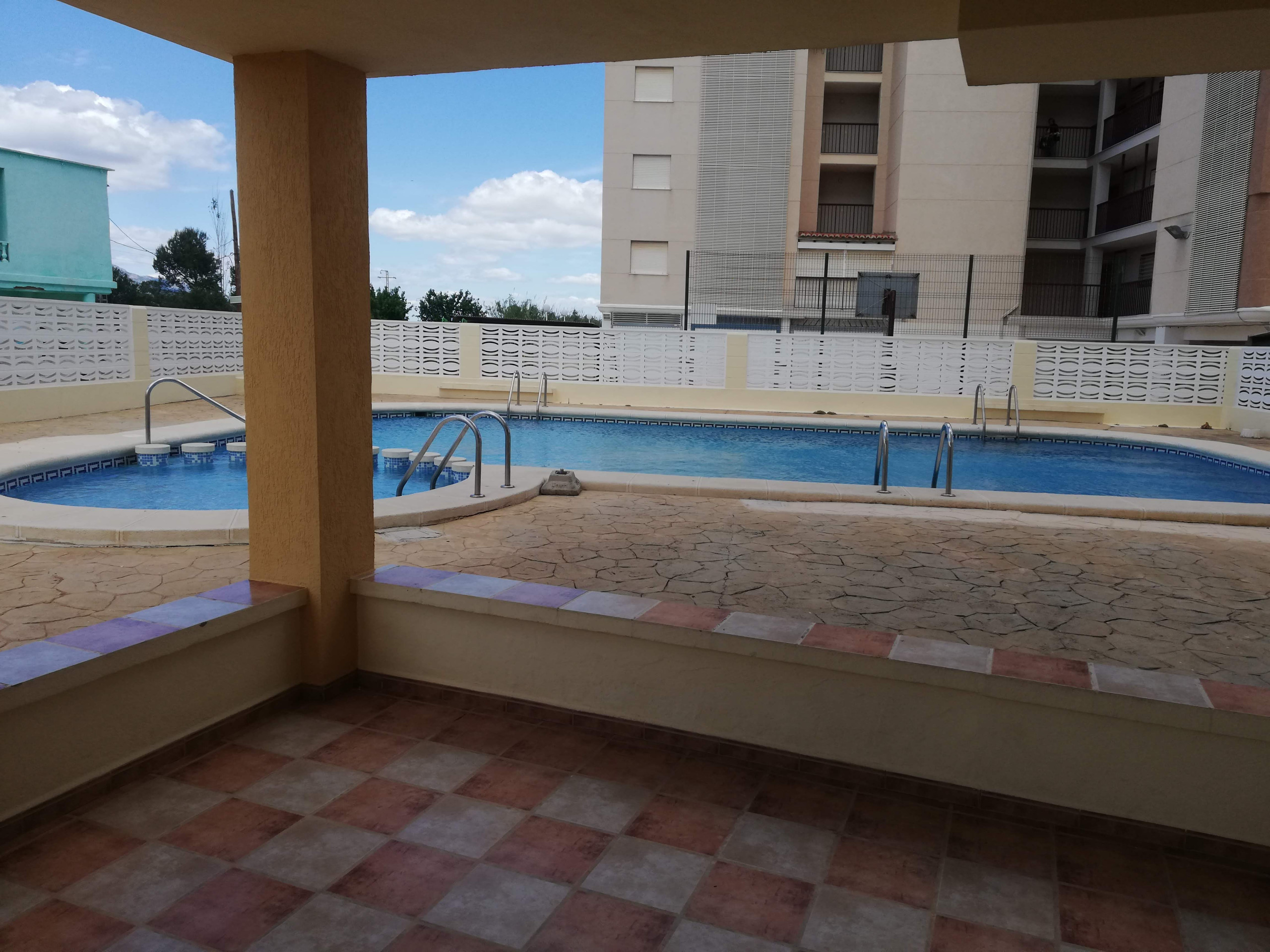 Este apartamento ofrecen de tres dormitorios dobles, un baño completo, un aseo-ducha, amplia cocina con galería, salón-comedor con salida a una gran terraza, esta con vistas a la piscina y sus alrededores. Incluye plaza de garaje.