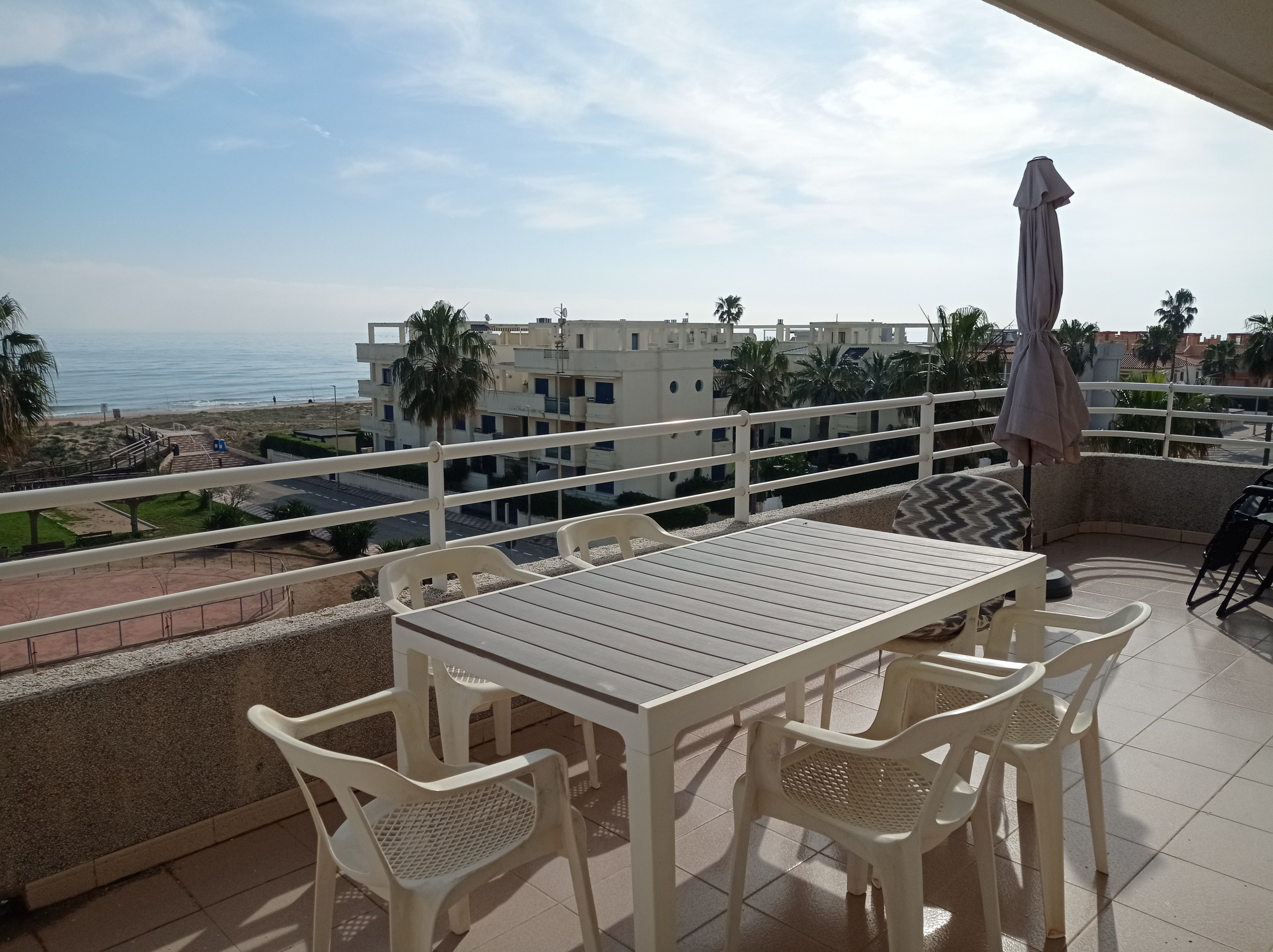 Bonito apartamento en cuarta planta con terraza frontal al mar. Tiene tres dormitorios, dos baños (ambos con bañera), cocina independiente con galeria-lavadero y lavavajillas, salón comedor con salida a una terraza fresca de orientación Este frontal con panorámicas y fabulosas vistas al mar. Tiene servicio WIFI e incluye plaza de garaje.