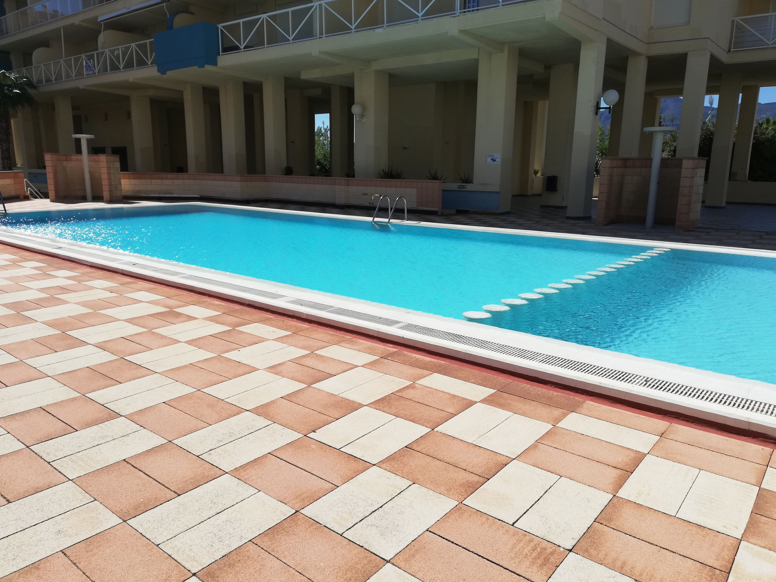 El complejo « MAR AZUL » consta de un bloque de siete alturas con ascensor, ofrece una zona común ajardinada, club y local social, pista de Squash, pista de tenis y zona empisada rodeando la piscina y el charco infantil.