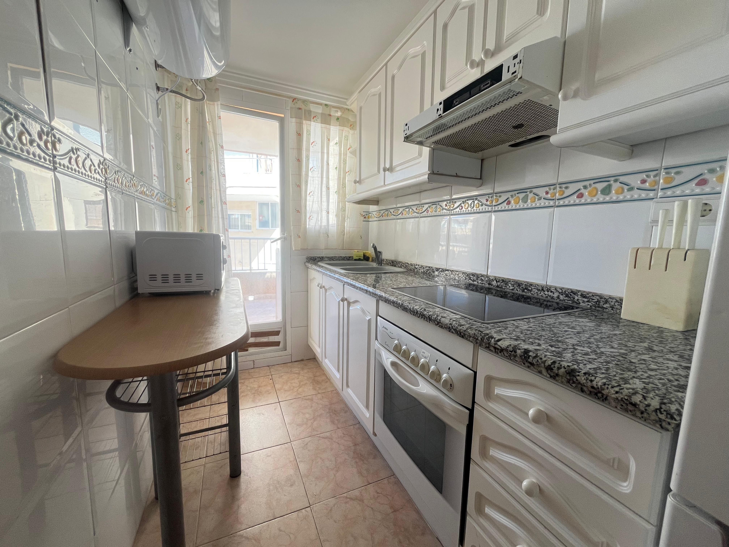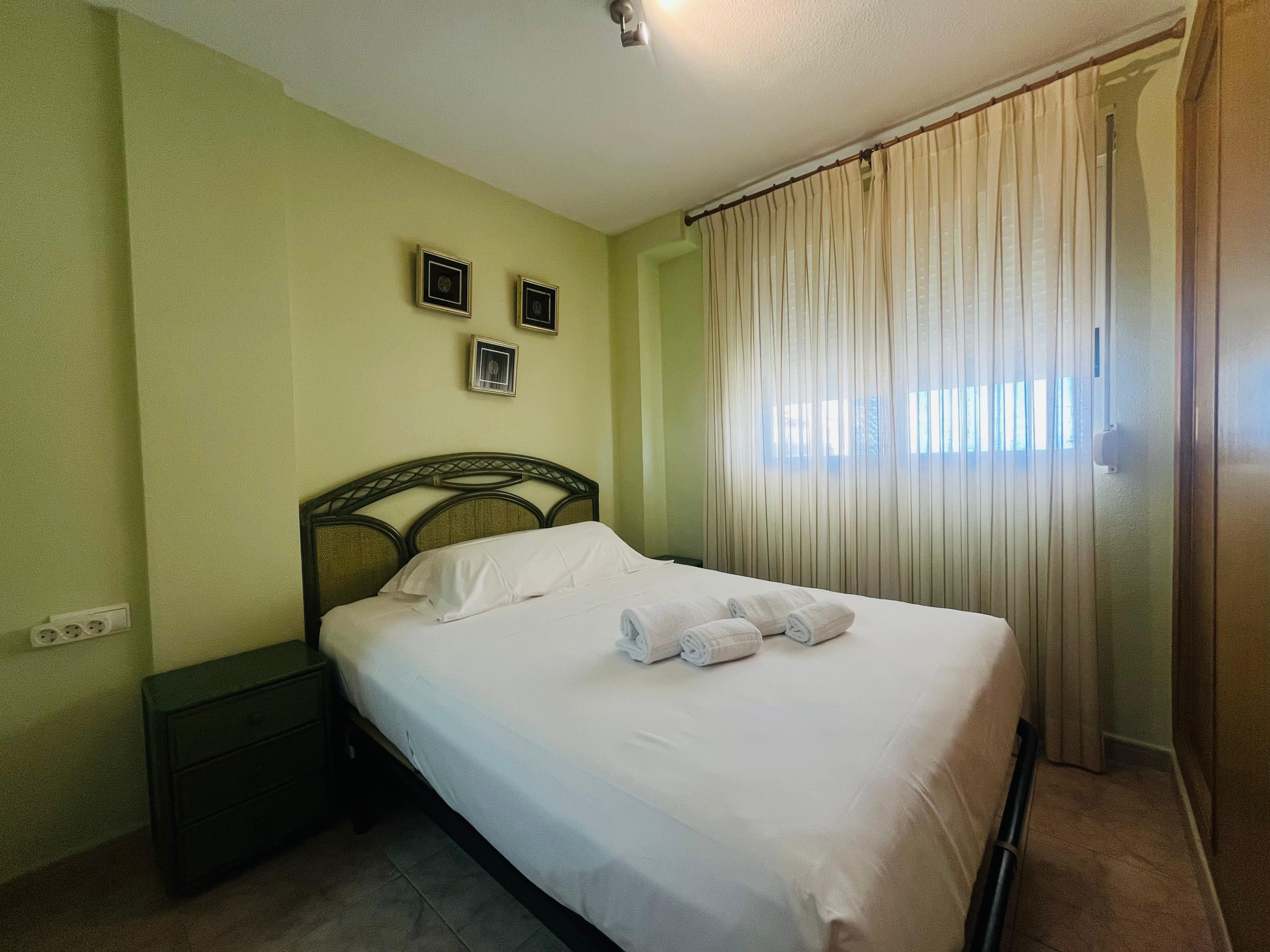 Este apartamento está en segunda planta con terraza de orientación Sur a la calle Marina Alta y vistas a las zonas ajardinadas comunitarias. Tiene un dormitorio doble, un salón estar- comedor con sofá cama para 2 personas (1,20 cm), cocina independiente con lavadero y un cuarto de baño completo.