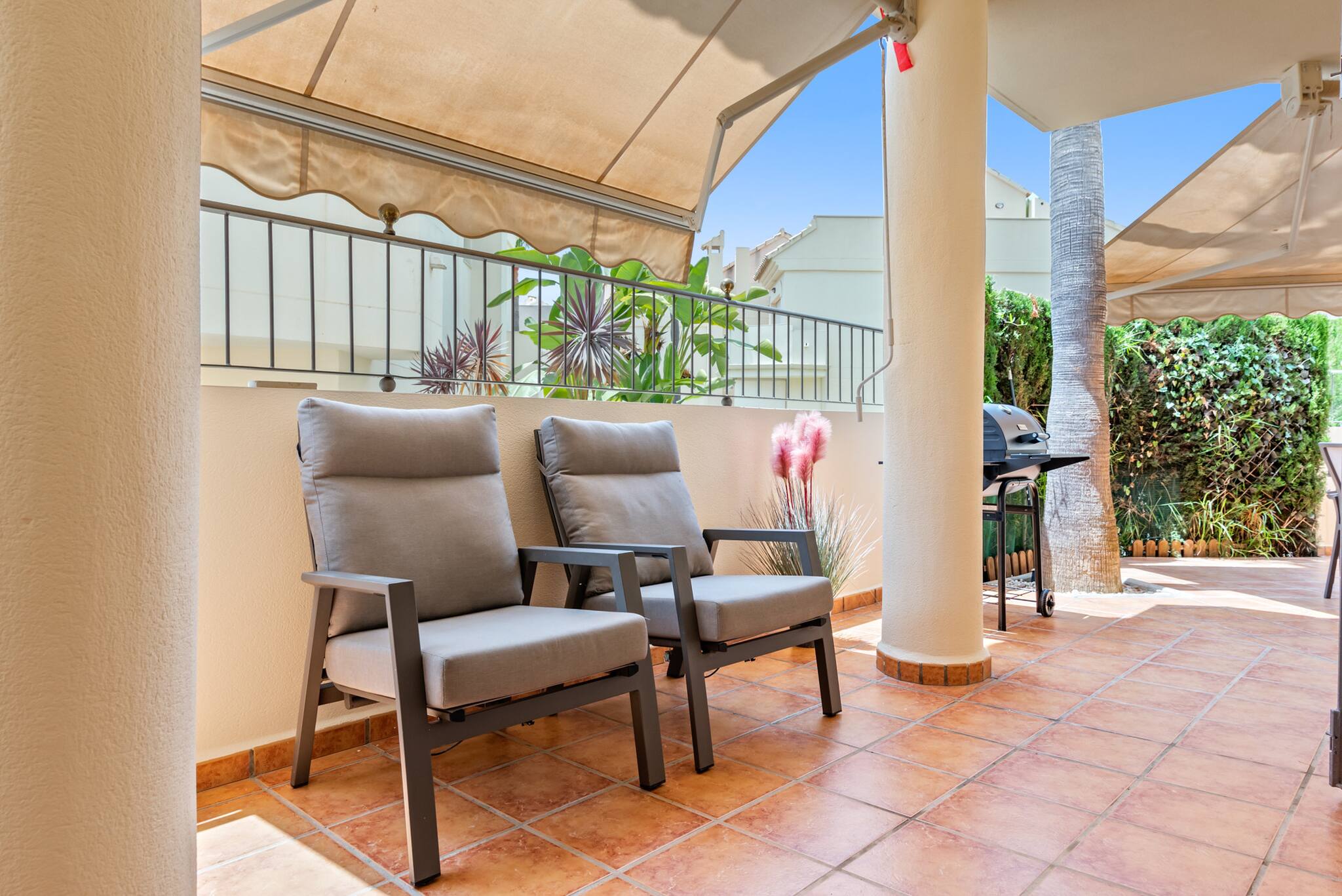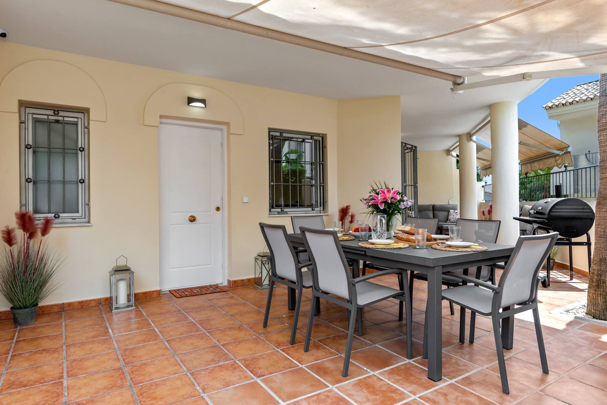 El espacio exterior es perfecto para comer al aire libre y relajarse, con barbacoa y capacidad para 8 comensales en la terraza. También puedes descansar en el jardín junto a la piscina.