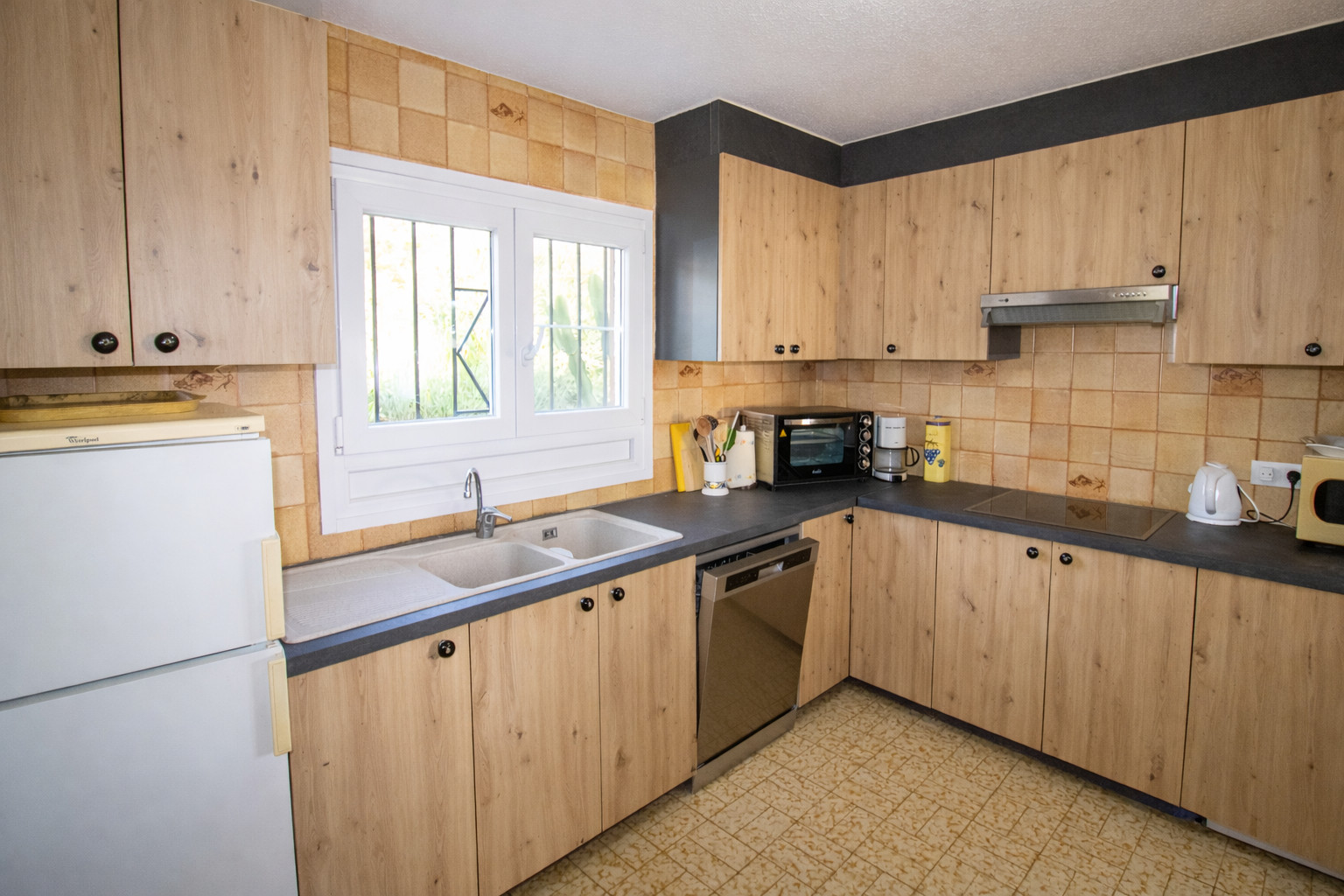 La villa se encuentra en una zona tranquila de Alcossebre, pero con servicios y playas muy cerca.
