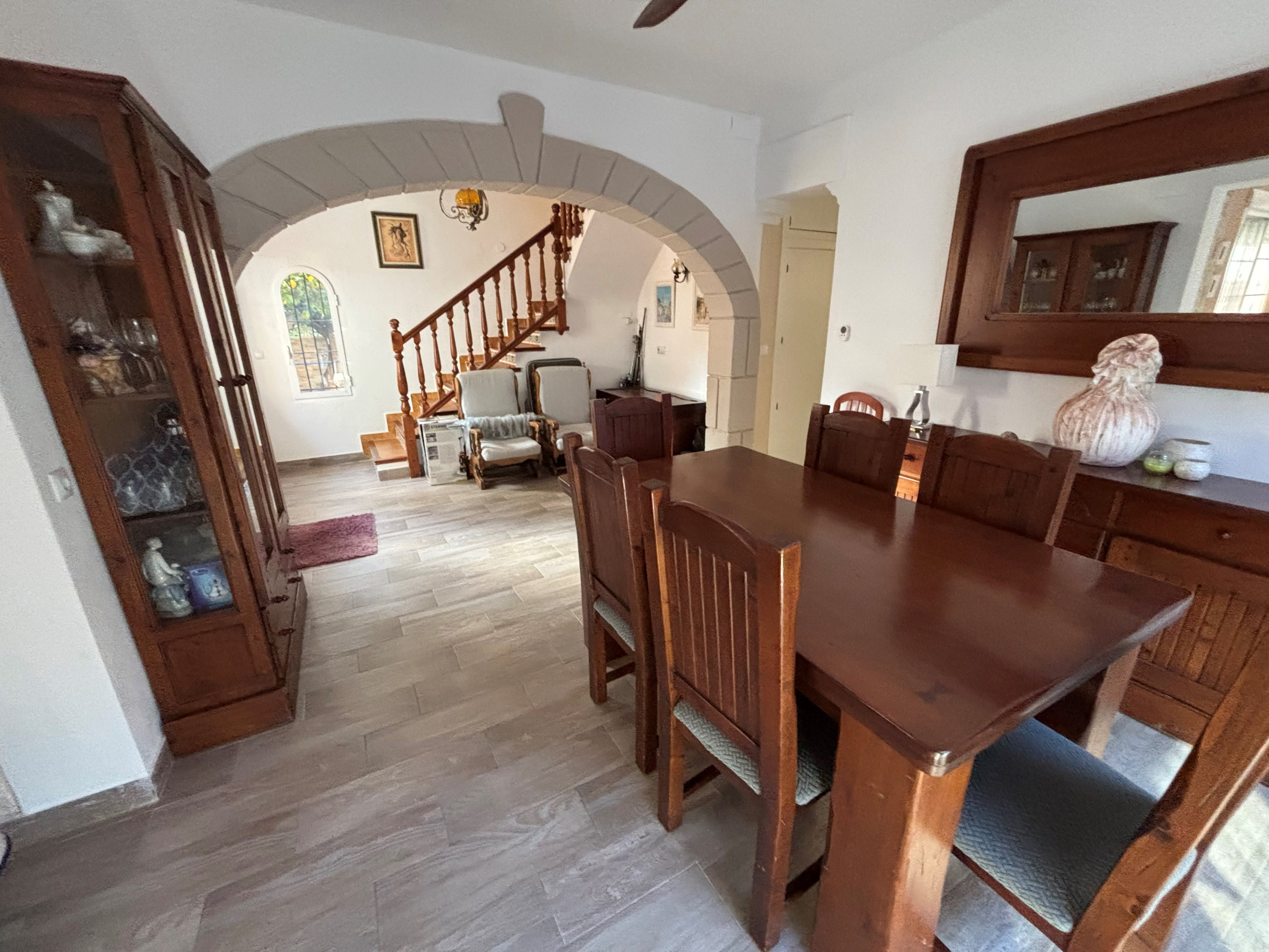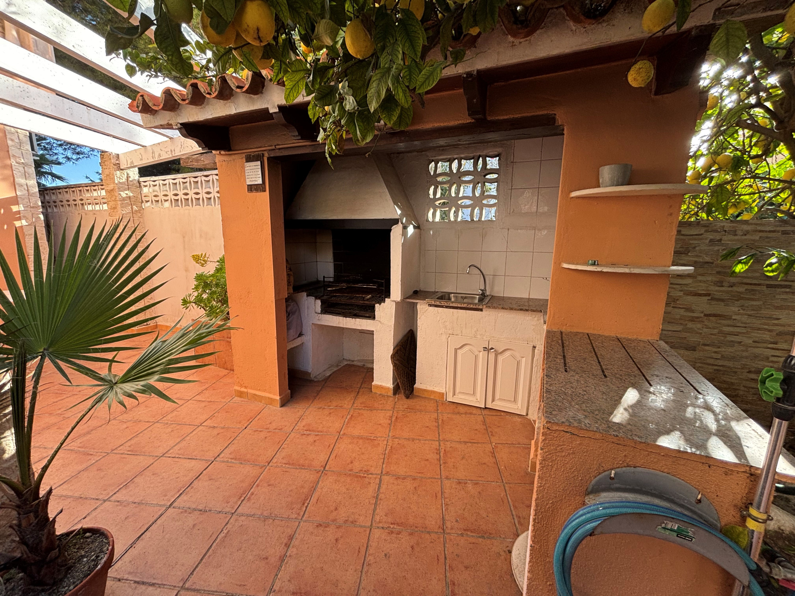Tiene un amplio y bonito jardín con césped, piscina privada y barbacoa portátil. El interior está distribuido en 2 plantas, en la planta baja se encuentra el salón, comedor con la cocina abierta, 2 dormitorios y 1 baño. Tiene aire en el pasillo de los dormitorios. En la planta superior tenemos otros 2 dormitorios y 1 baño. Aire acondicionado en el dormitorio de matrimonio. Terraza.