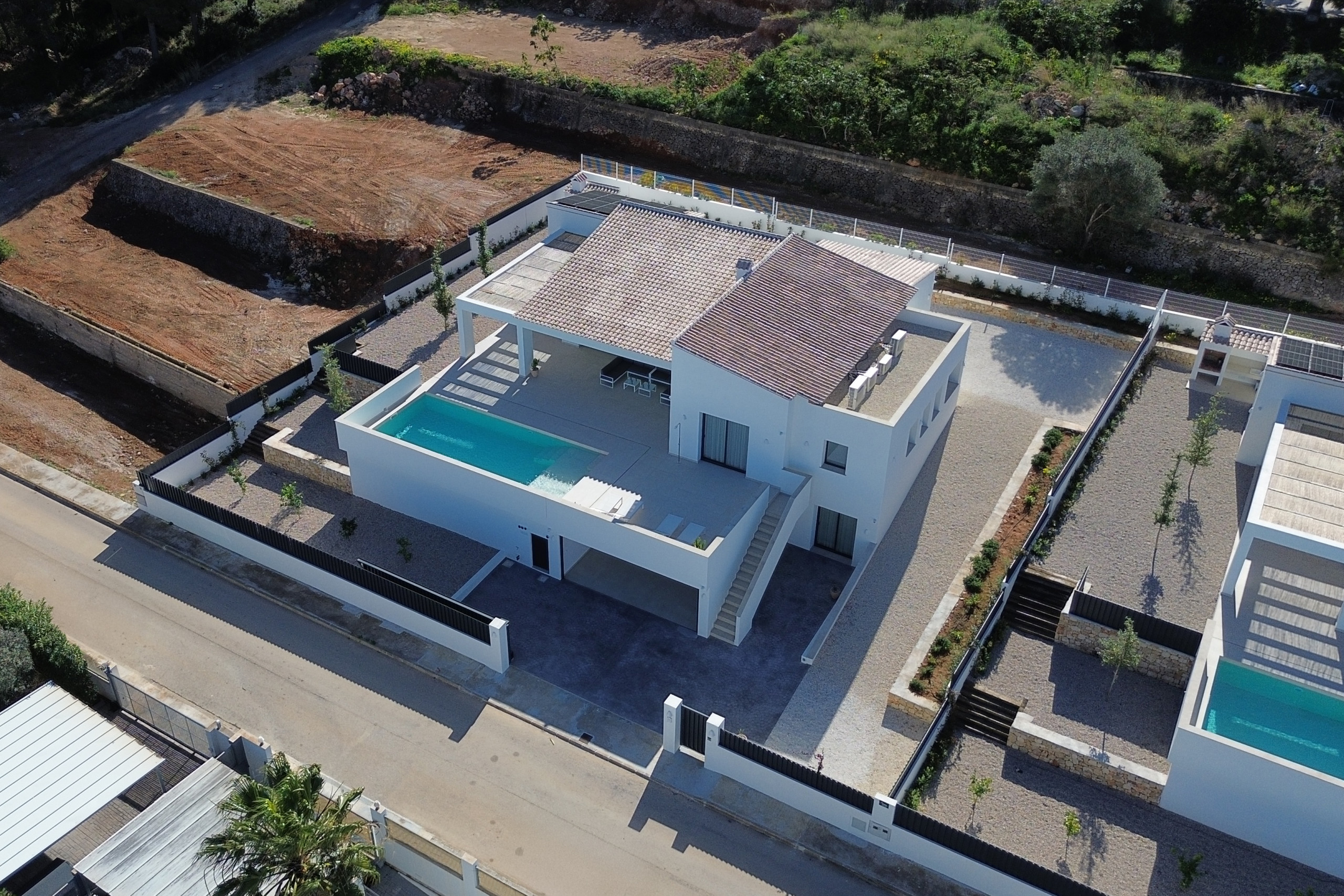 La villa se distribuye en 2 alturas a la que se accede por un pequeño tramo de escaleras que da a una bonita terraza cubierta. Con cocina americana abierta al salón comedor, 5 dormitorios y 4 baños.