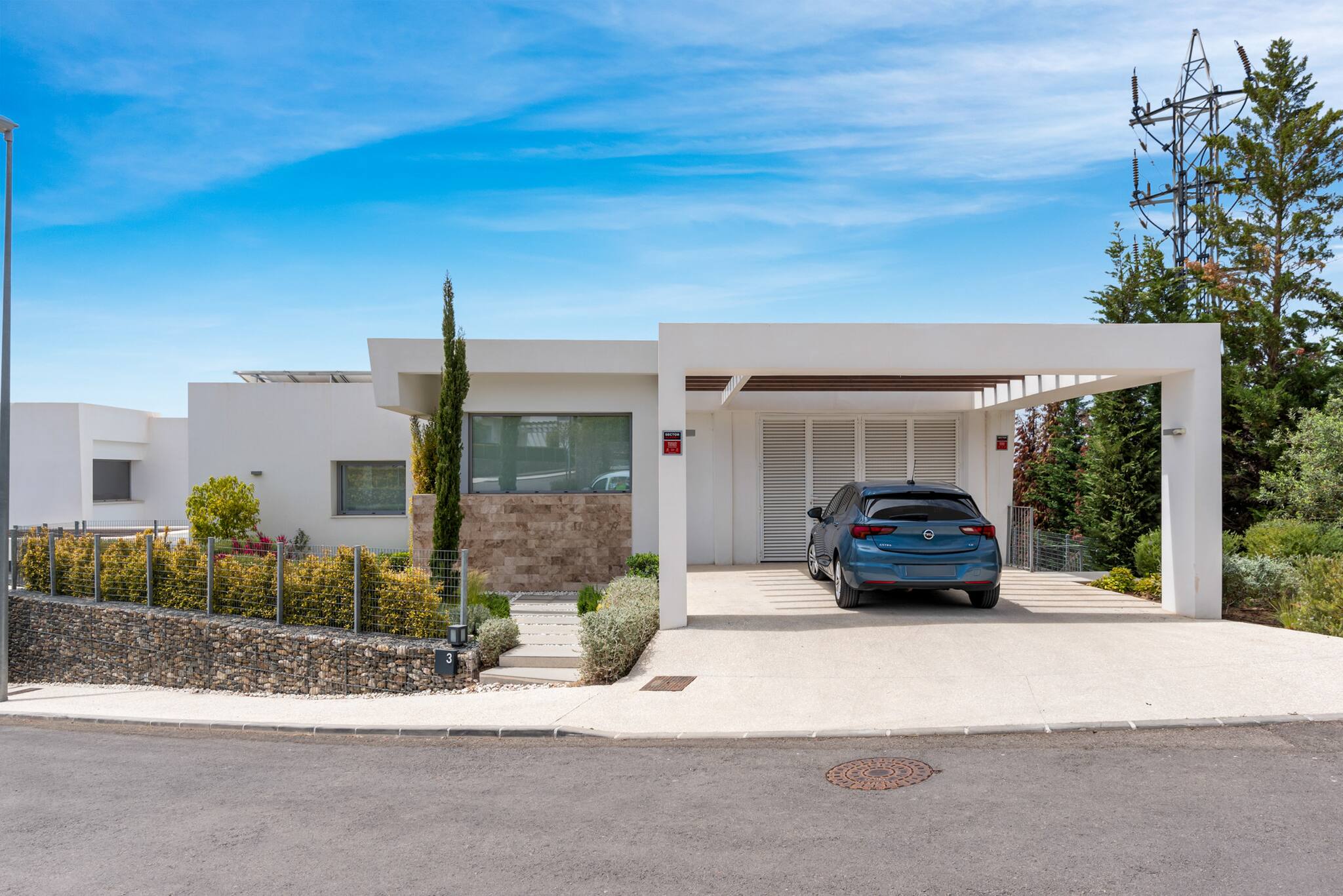 La urbanización es cerrada y segura, y la villa cuenta con sistema de alarma y portero automático. Hay aparcamiento para 2 coches en la entrada y espacio adicional en la calle.