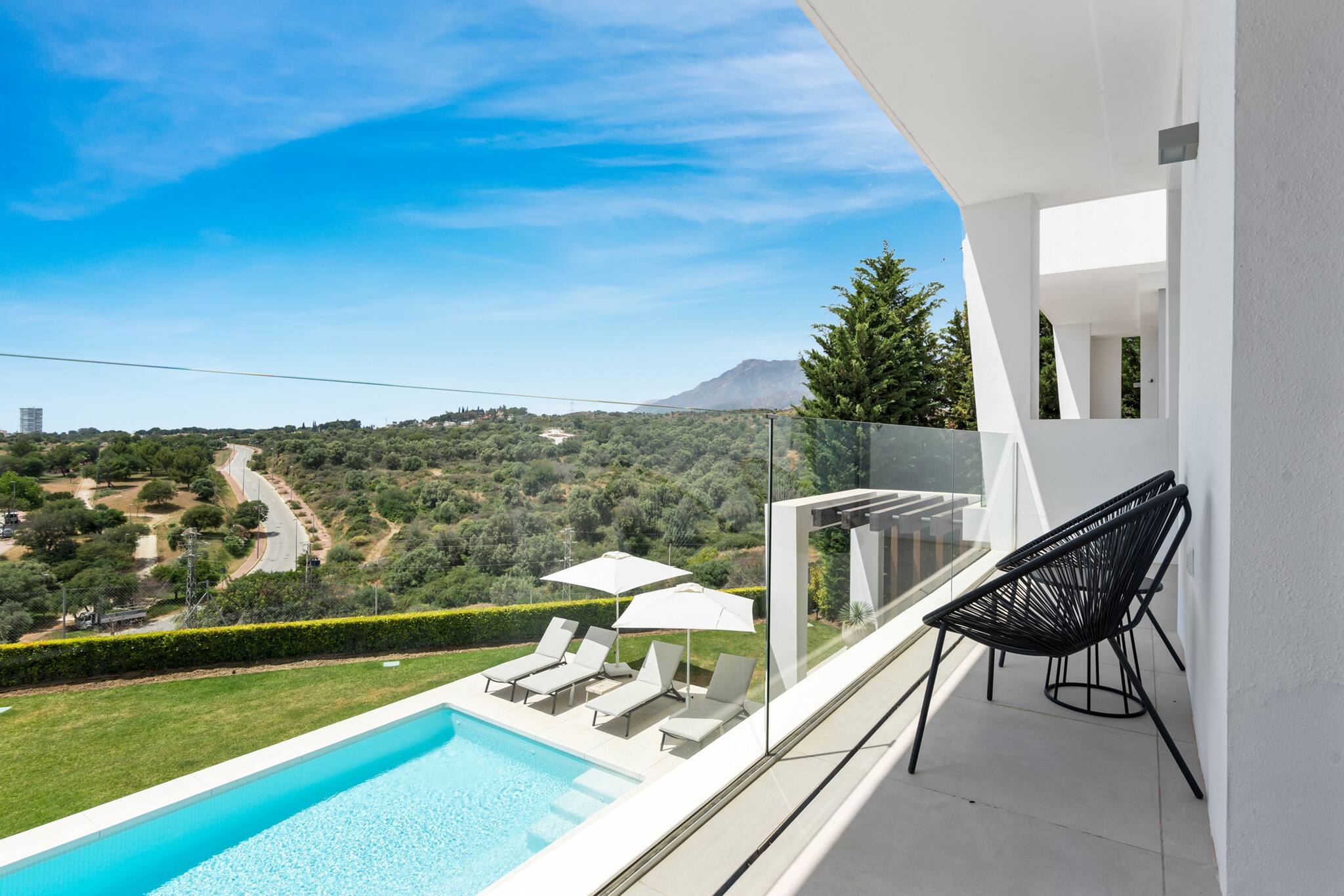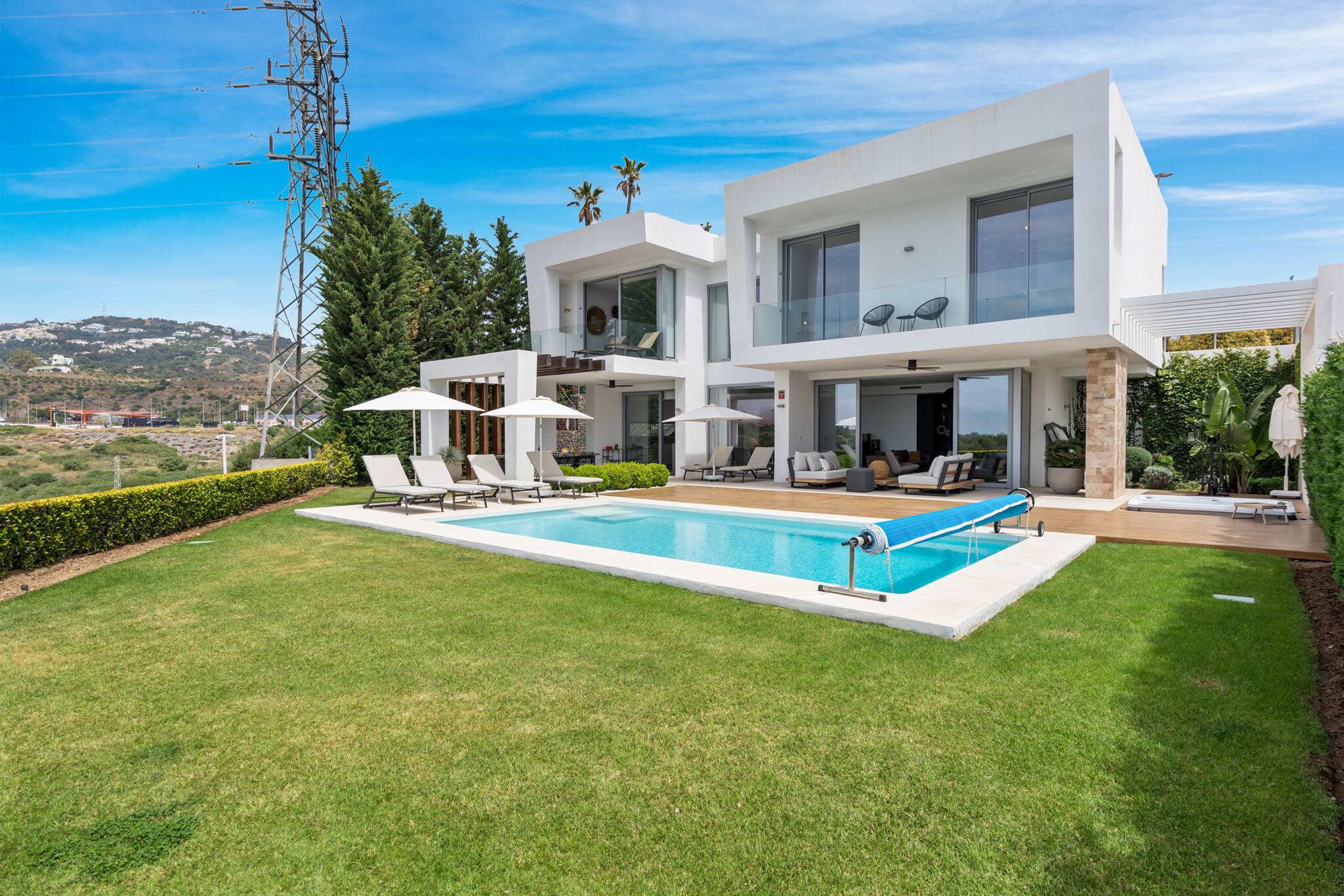 Puedes llegar al centro de Marbella en 10 minutos, al aeropuerto de Málaga en 30 minutos y a Puerto Banús en 15 minutos. Cerca encontrarás muchas playas de arena fina, así como clubes de playa muy conocidos como Los Monteros La Cabane, Nosso, Luuma y Trocadero Arena. El Royal Tennis Club Marbella también está a solo 5 minutos en coche (tenis, pádel y gimnasio).