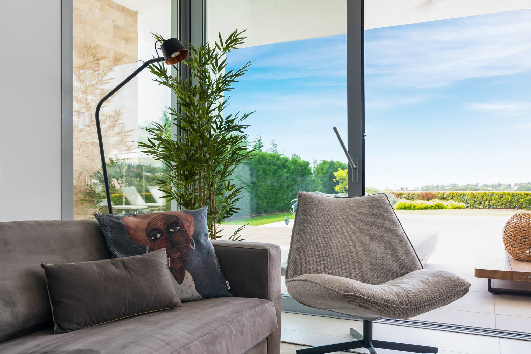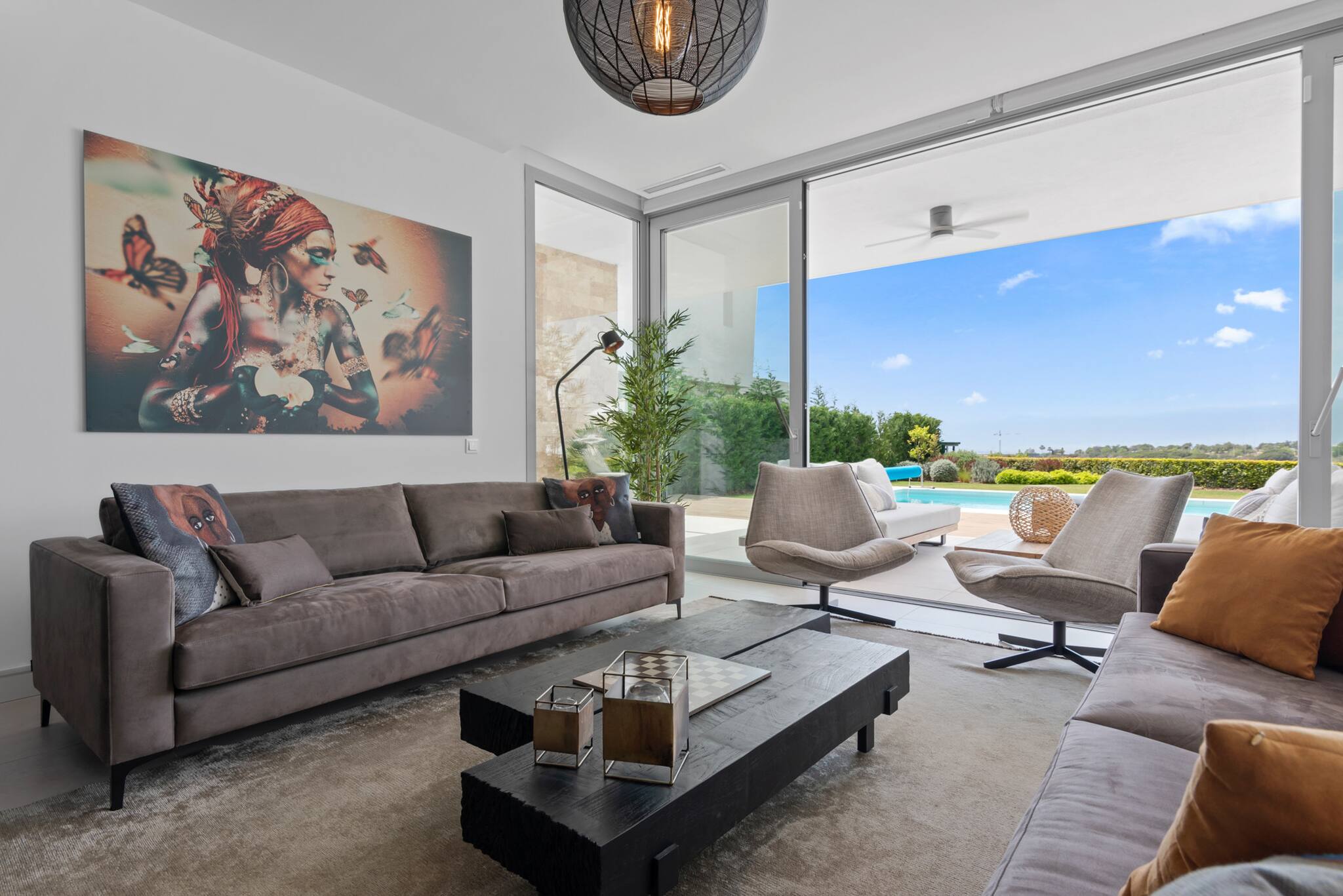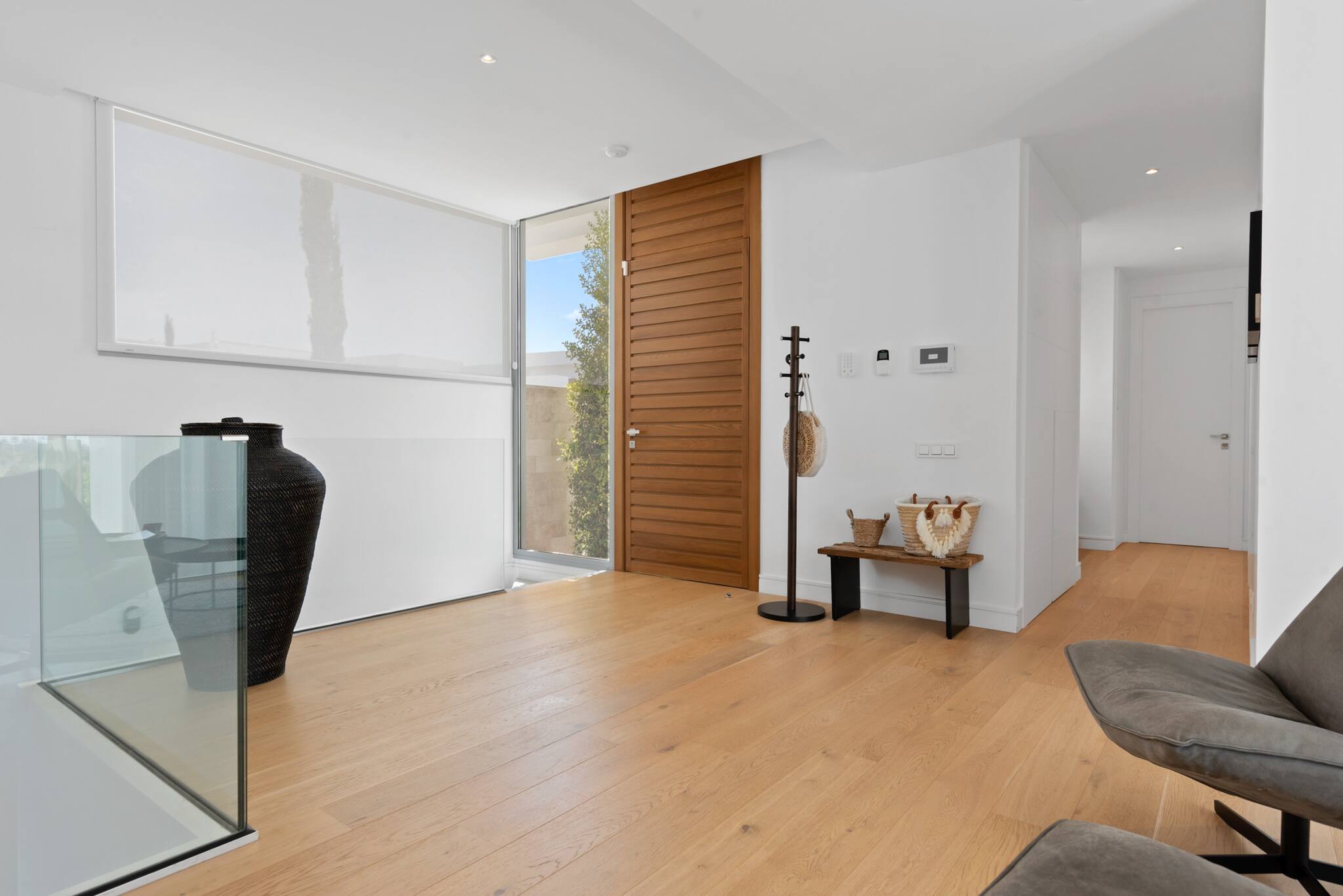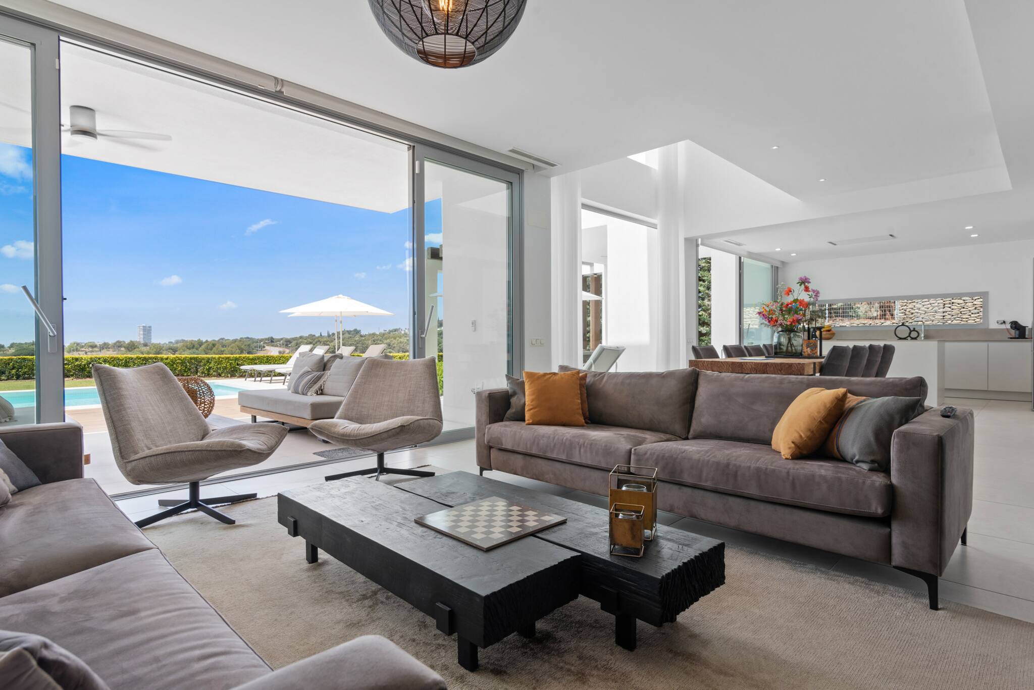 Desde el primer momento en que entras en Villa Riva, te envuelve una sensación de lujo y confort. Dispone de suelo radiante para los meses más fríos y aire acondicionado en todas las habitaciones. El salón y la cocina comparten un espacio diáfano con grandes ventanales y puertas correderas que permiten la entrada de abundante luz natural.