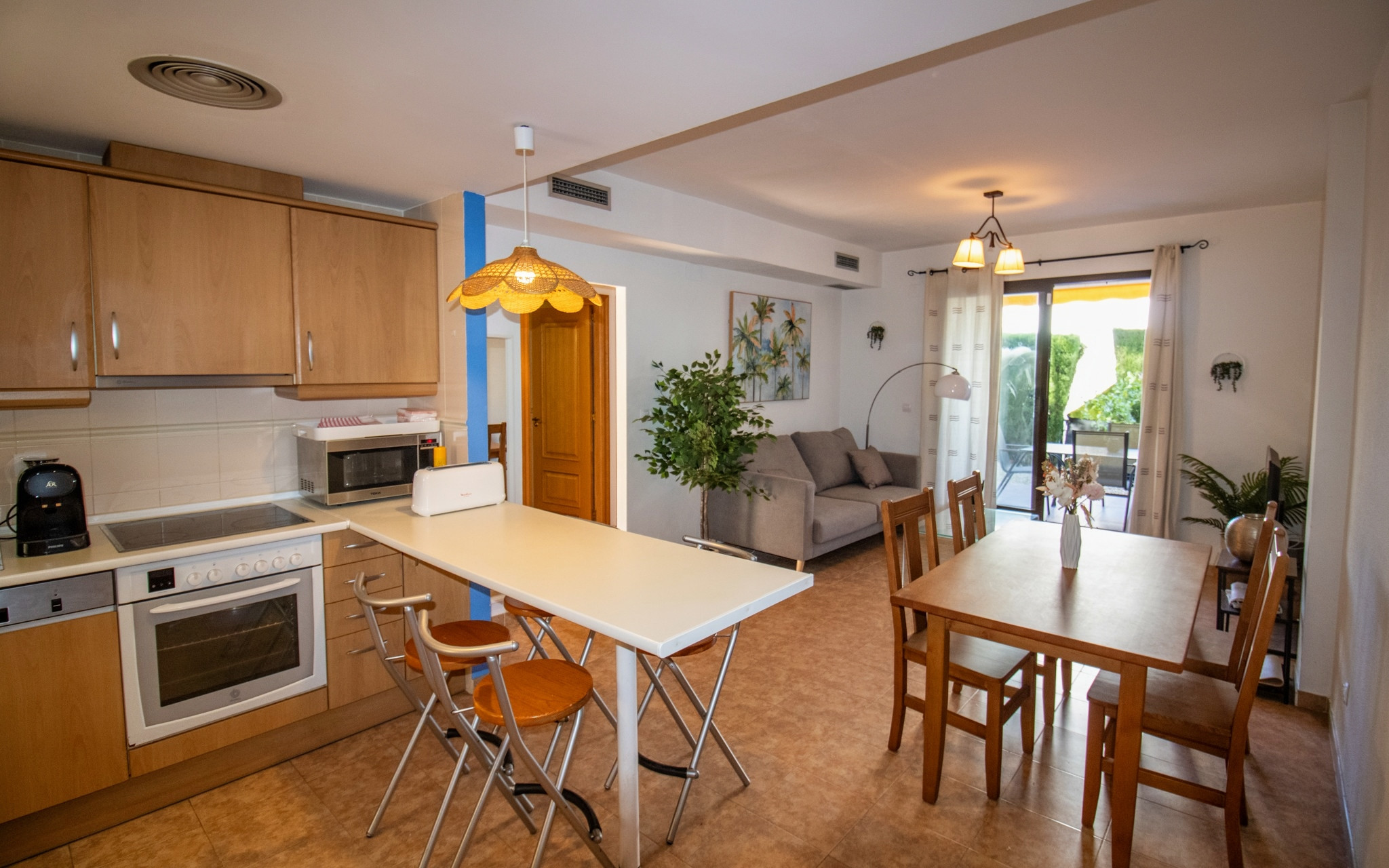 Apartamento impecable a cinco minutos de la playa con una zona de piscinas muy cuidada y tranquila, Destaca la limpieza y su jardín. así como su decoración muy acogedora.