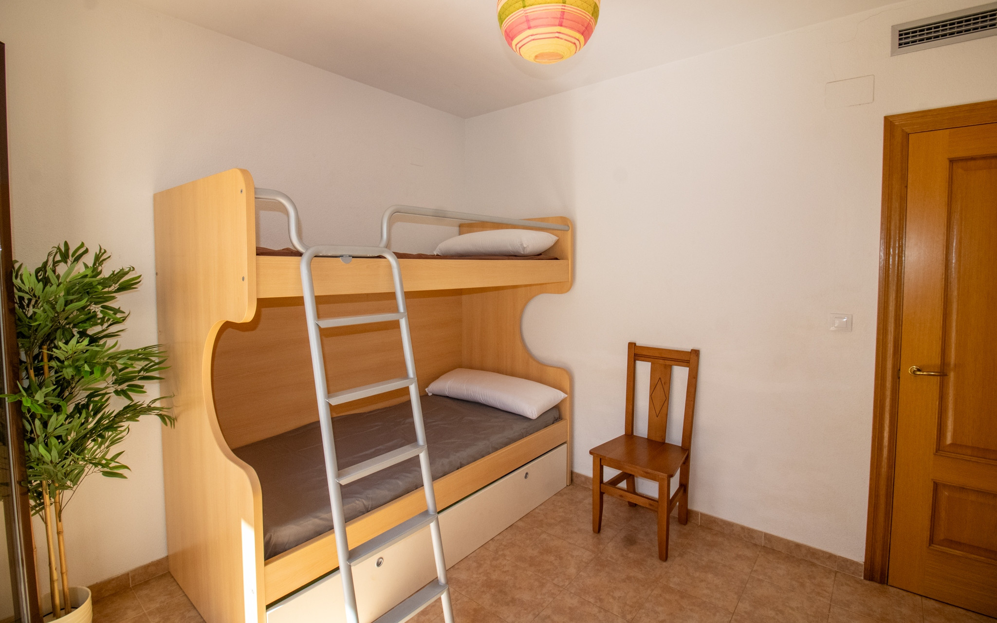 The apartment in Alcocebre / Alcossebre has 2 bedrooms and has capacity for 5 people. The apartment is 60 m². It has views of the garden. The property is located 100 m from centro Alcossebre city, 100 m from Dora the restaurant, 120 m from Meson Ximo the restaurant, 130 m from Pizzeria Sam the restaurant, 140 m from Spar supermarket, 190 m from Cioffi the restaurant, 200 m from Arenal the restaurant, 210 m from Playa Cargador sand beach, 3 km from Sierra de Irta nature reserve.The accommodation is equipped with the following items: terrace, washing machine, heat pump, air conditioning throughout the house, communal+children's swimming pool, 1 TV.In the open plan kitchen, refrigerator, microwave, oven, freezer, dishes/cutlery, kitchen utensils, coffee machine and toaster are provided.