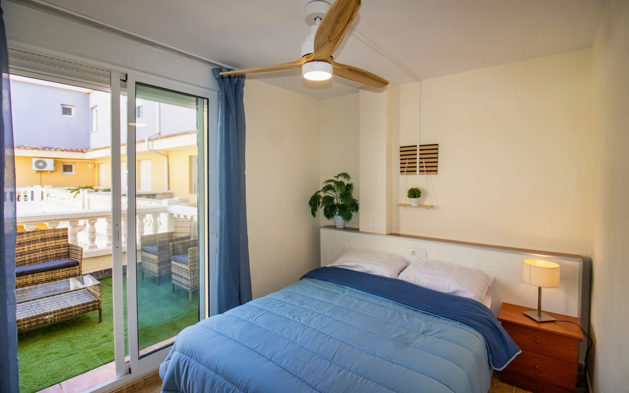 The apartment in Alcocebre / Alcossebre has 2 bedrooms and has capacity for 6 people. The apartment is tastefully-furnished, is fully-equiped, and is 70 m². It has views of waterfront and the mountain. The property is located 350 m from Sierra de Irta nature reserve, 370 m from Cala Blanca rock beach, 900 m from Las Fuentes sand beach, 1 km from Spar las Fuentes supermarket, 2 km from centro del pueblo Alcoceber city. The house is situated in a family-friendly neighborhood in a suburb.The accommodation is equipped with the following items: garden, terrace, washing machine, internet (Wi-Fi), balcony, heat pump, air conditioning in the living room, communal+children's swimming pool, 3 fans, TV.In the hotplate of glass ceramics open plan kitchen, refrigerator, microwave, freezer, dishes/cutlery, kitchen utensils, coffee machine and toaster are provided.