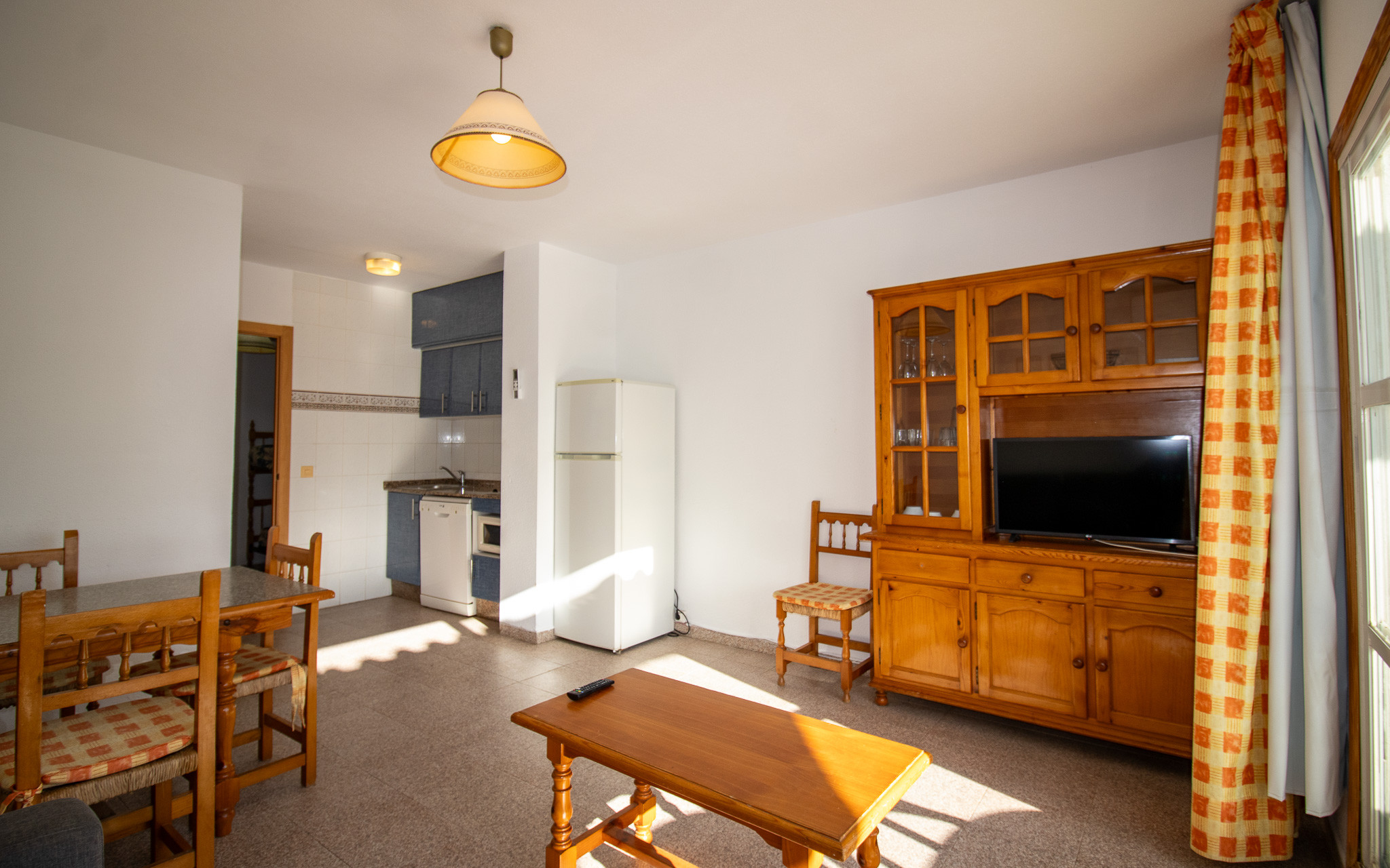 The apartment in Alcocebre / Alcossebre has 1 bedrooms and has capacity for 5 people. The apartment is 40 m². The accommodation is equipped with the following items: terrace, internet (Wi-Fi), heat pump, air conditioning in the living room, communal+children's swimming pool, 1 TV.In the hotplate of glass ceramics open plan kitchen, refrigerator, microwave, freezer, dishwasher, dishes/cutlery, kitchen utensils, coffee machine and toaster are provided.