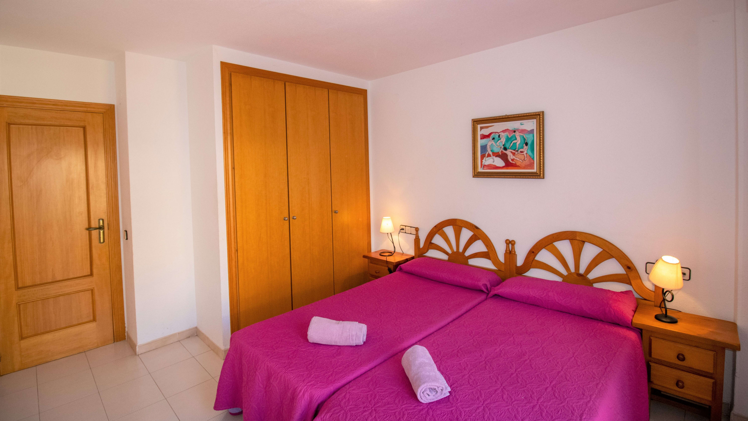 One bedroom with two single beds , fitted wardrobe and private balcony overlooking the pool and garden.