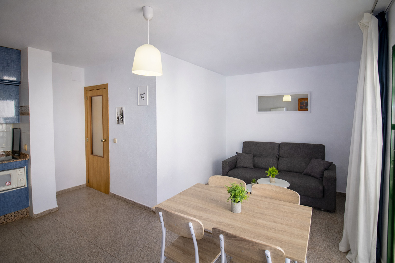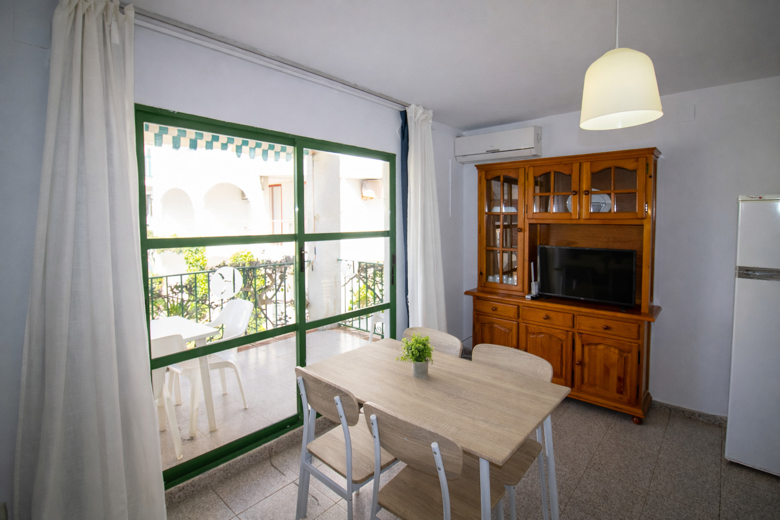 The apartment in Alcocebre / Alcossebre has 1 bedrooms and has capacity for 5 people. The apartment is 40 m². The accommodation is equipped with the following items: terrace, internet (Wi-Fi), heat pump, air conditioning in the living room, communal+children's swimming pool, 1 fan, 1 TV.In the hotplate of glass ceramics open plan kitchen, refrigerator, microwave, dishwasher, dishes/cutlery, kitchen utensils and coffee machine are provided.