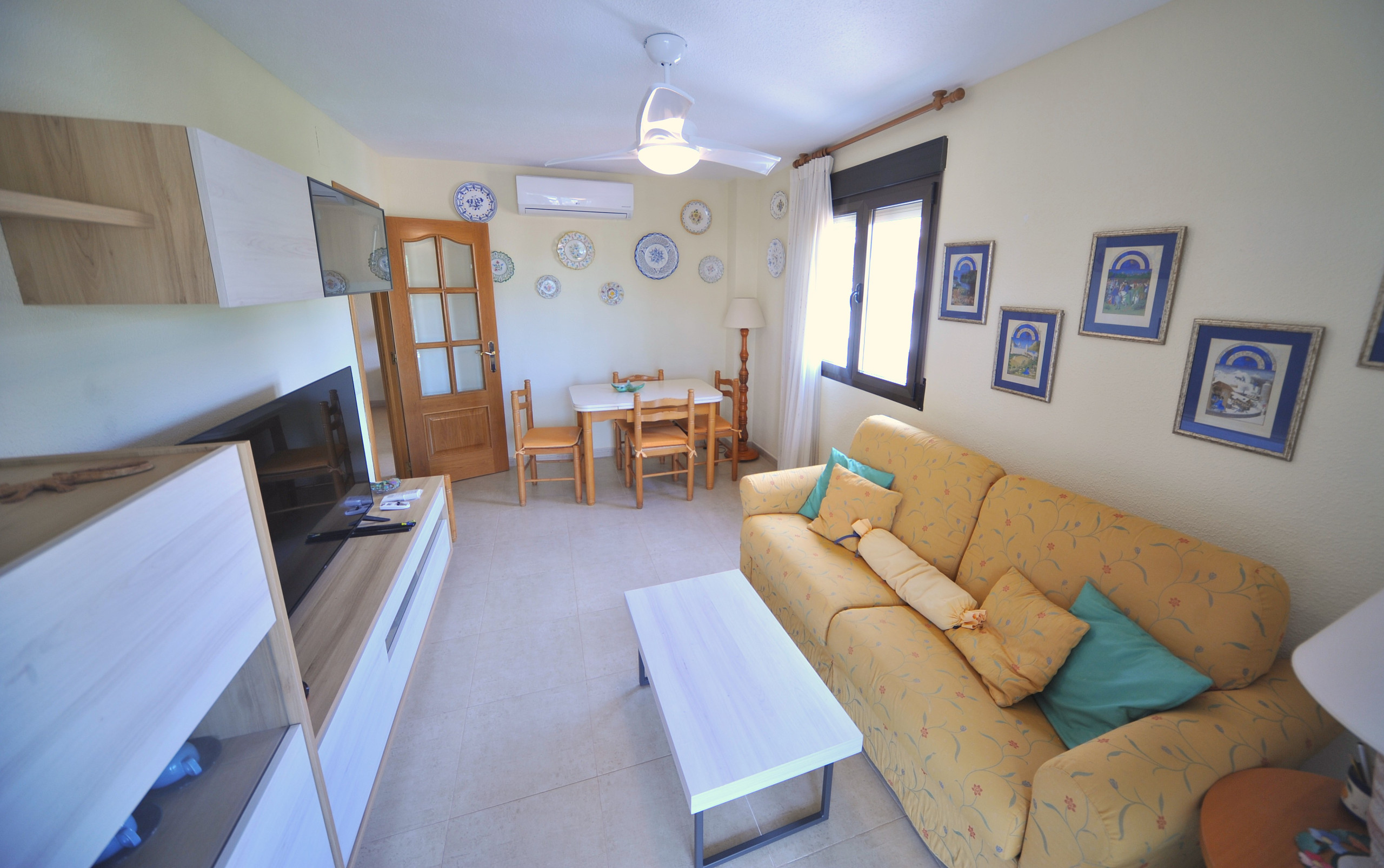 Spacious and bright apartment in Benicàssim, with capacity for up to 8 people and approximately 90 m². It has 3 bedrooms, large terrace with north-facing orientation, air conditioning, lift, covered parking and communal swimming pool.