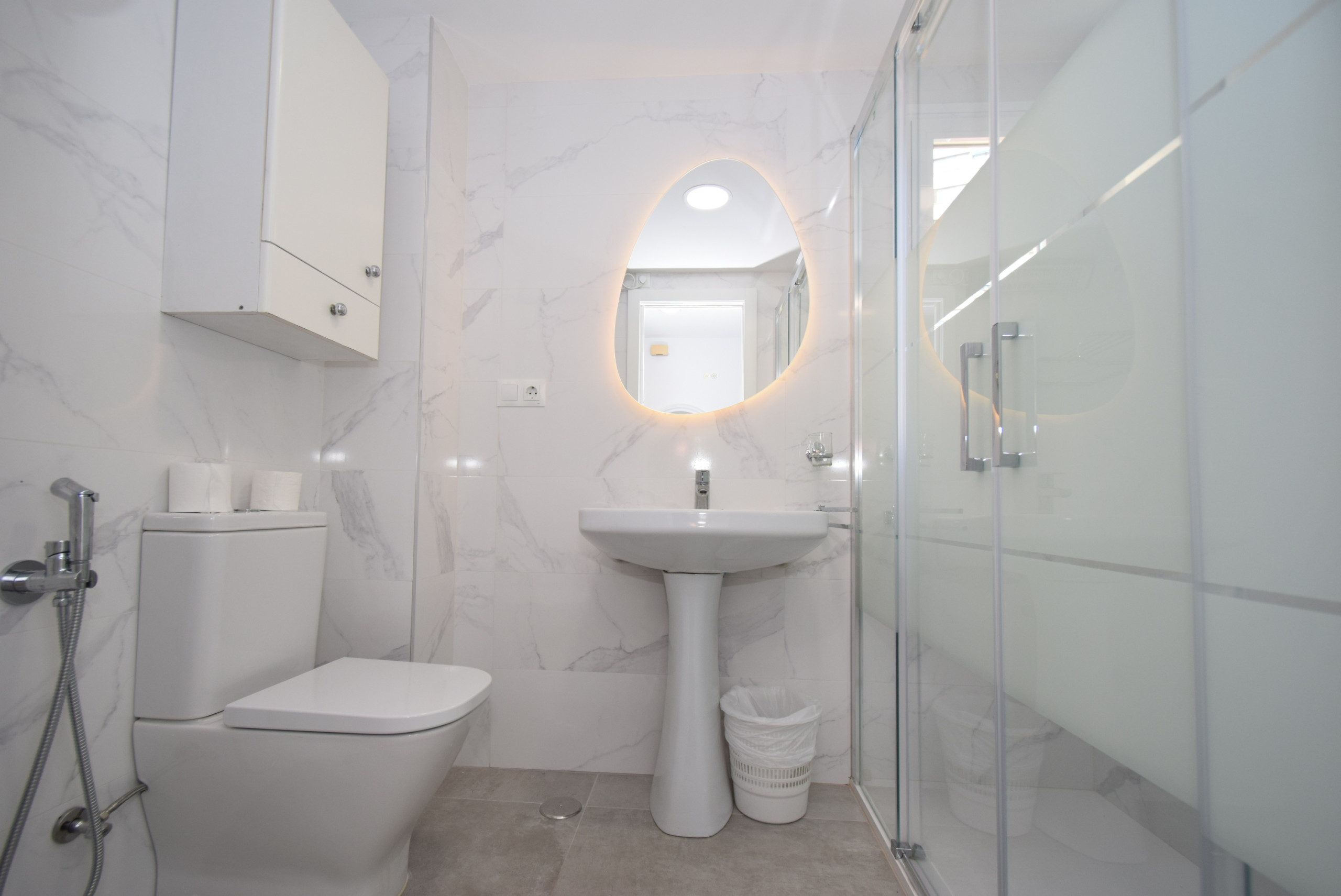It has an elevator, garden, terrace, iron, electric radiator heating, air conditioning in the living room and some bedrooms (paid service), communal open air parking in the same building (there is no guaranteed space for each apartment), TV (for rent), wifi (for rent).