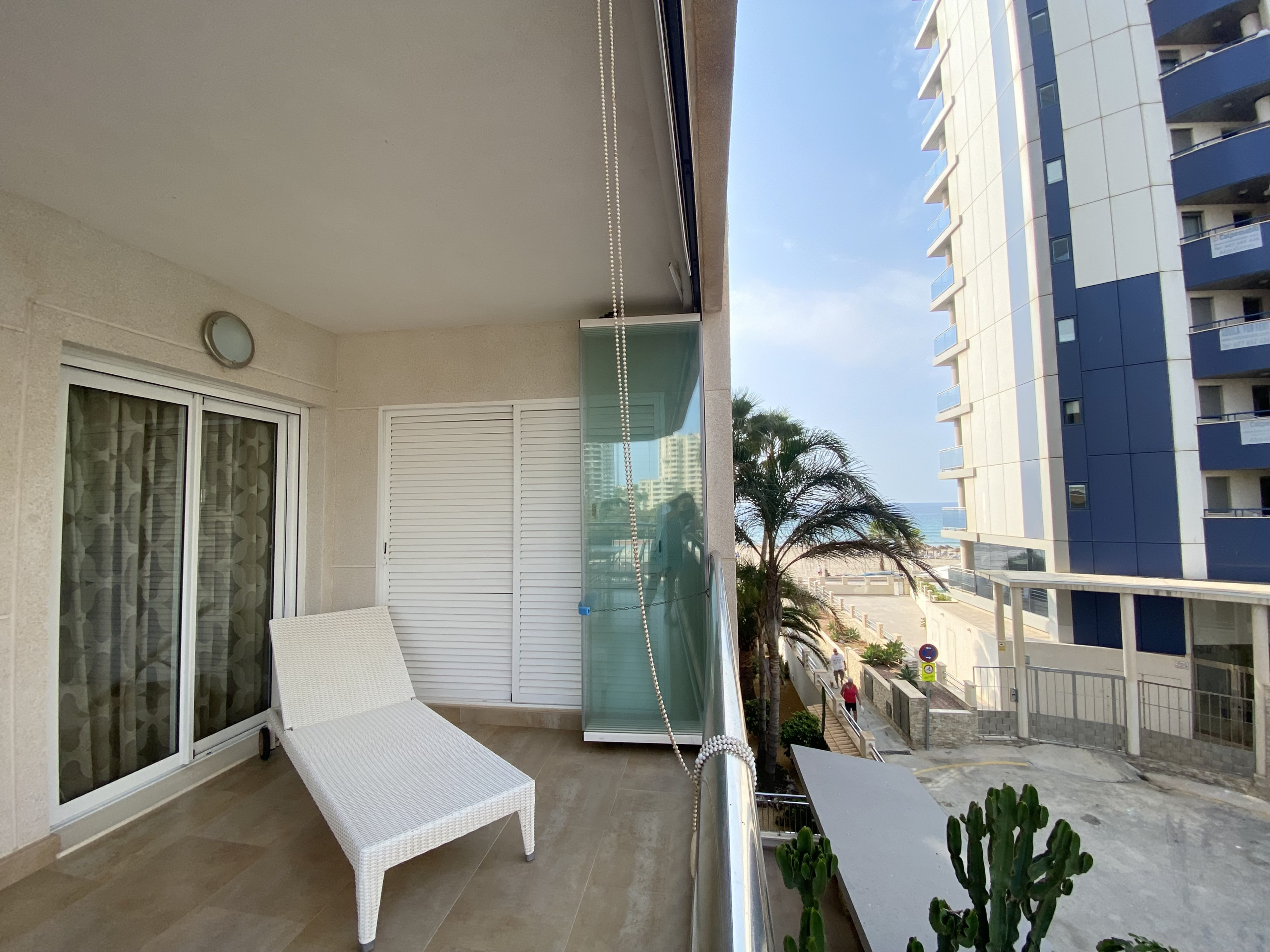 Beautiful apartment on the first line of Arenal beach, with side sea views, in the Porto Azul residential complex. Modern and new with high-end furniture. It consists of 1 bedroom with a double bed, 1 living-dining room with TV and 2 sofas, (a double sofa bed), bathroom with bathtub, fully equipped kitchen and terrace with views (the glazed terrace remains open in summer and closed in winter). Unbeatable location. It has air conditioning and WIFI.