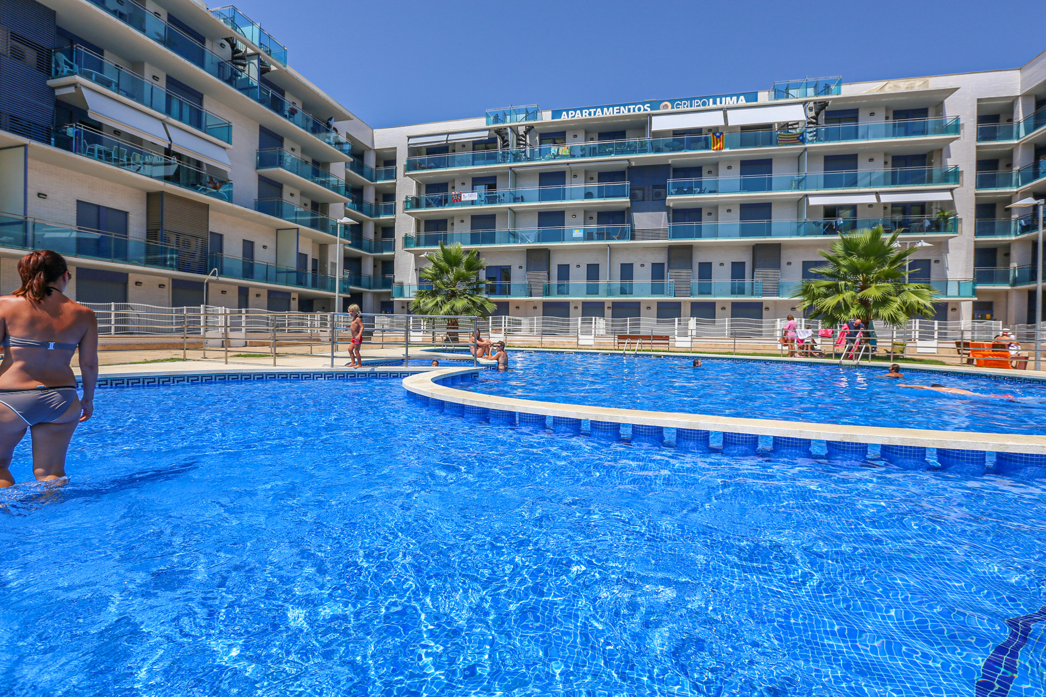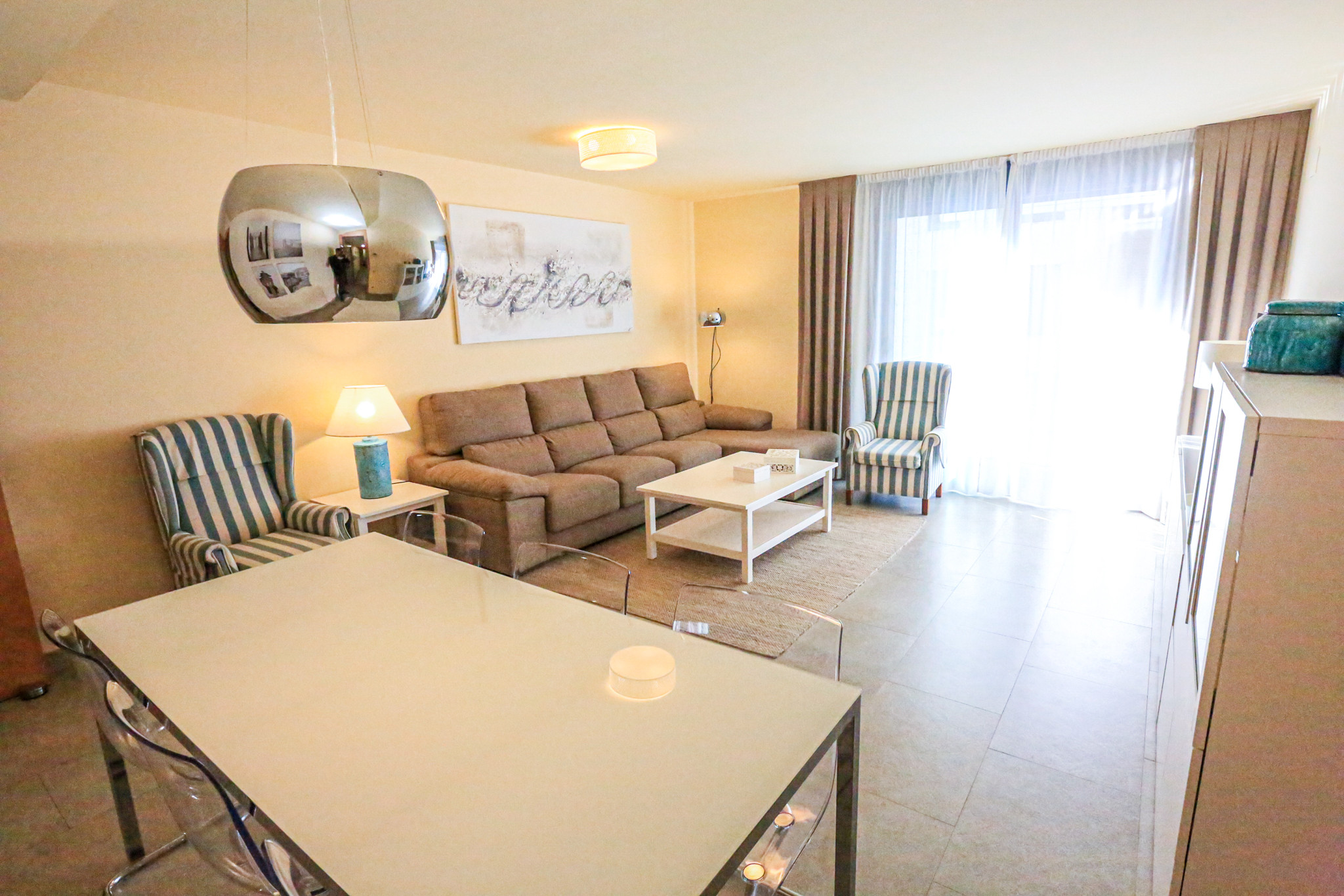 Located in the prestigious Golf de Sant Jordi complex, this apartment is the perfect choice for an unforgettable seaside vacation. The complex features over 3000 m² of gardens and a large pool facing the sea, ideal for soaking up the Mediterranean sun in a peaceful setting surrounded by palm trees.