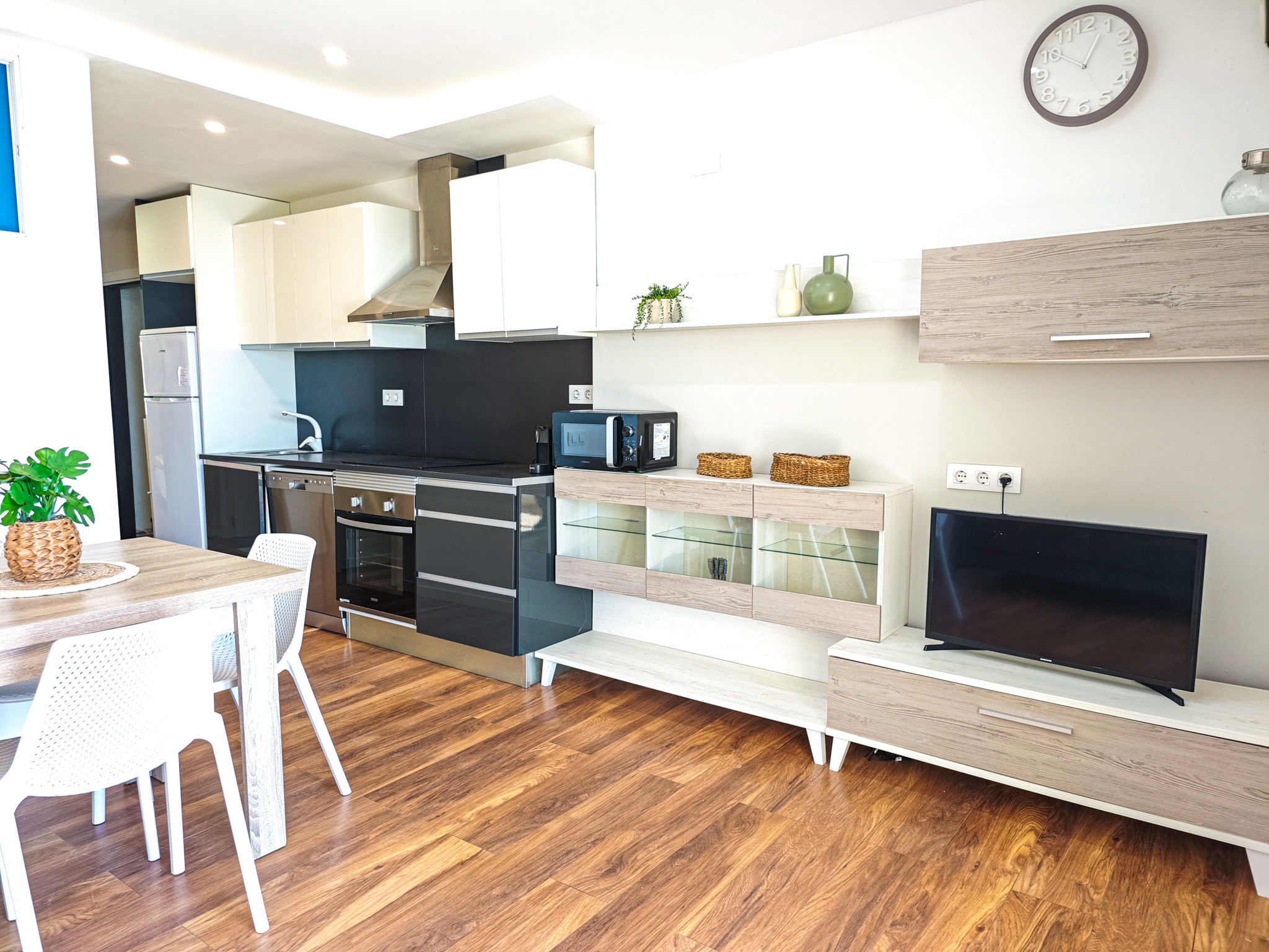 La ubicación y el apartamento muy acogedor con mobiliario minimalista bonito y muy práctico