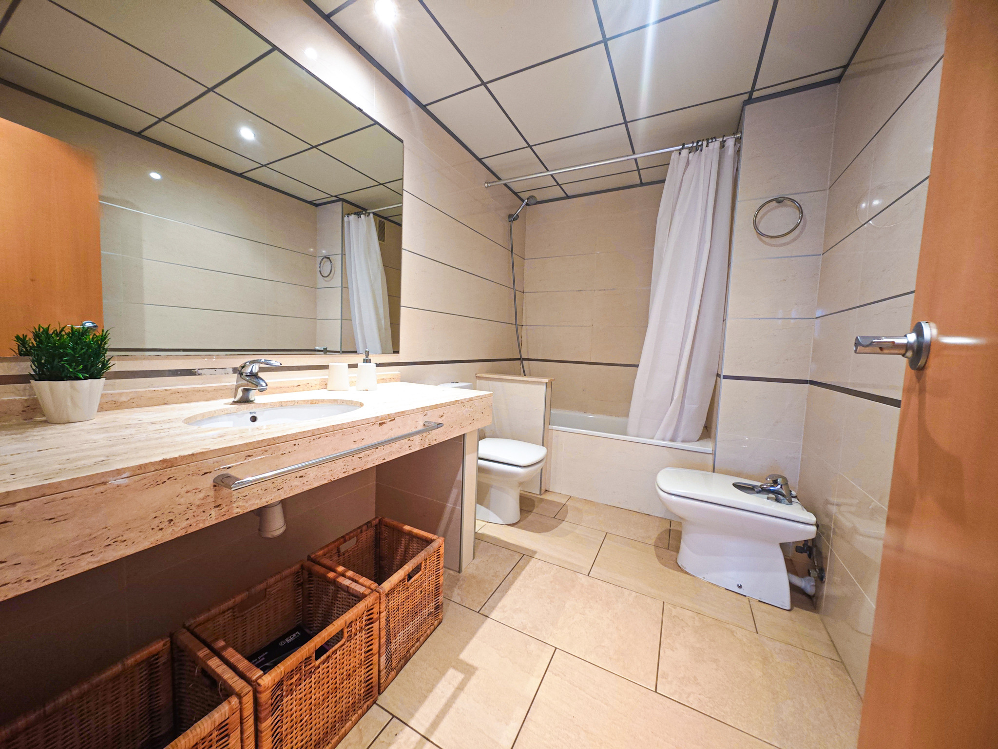 The TROPICANA BJS apartment has two bedrooms. It has one room with a double bed, another with two single beds and a sofa bed in the living room. A bathroom with a full bathtub completes the interior spaces.