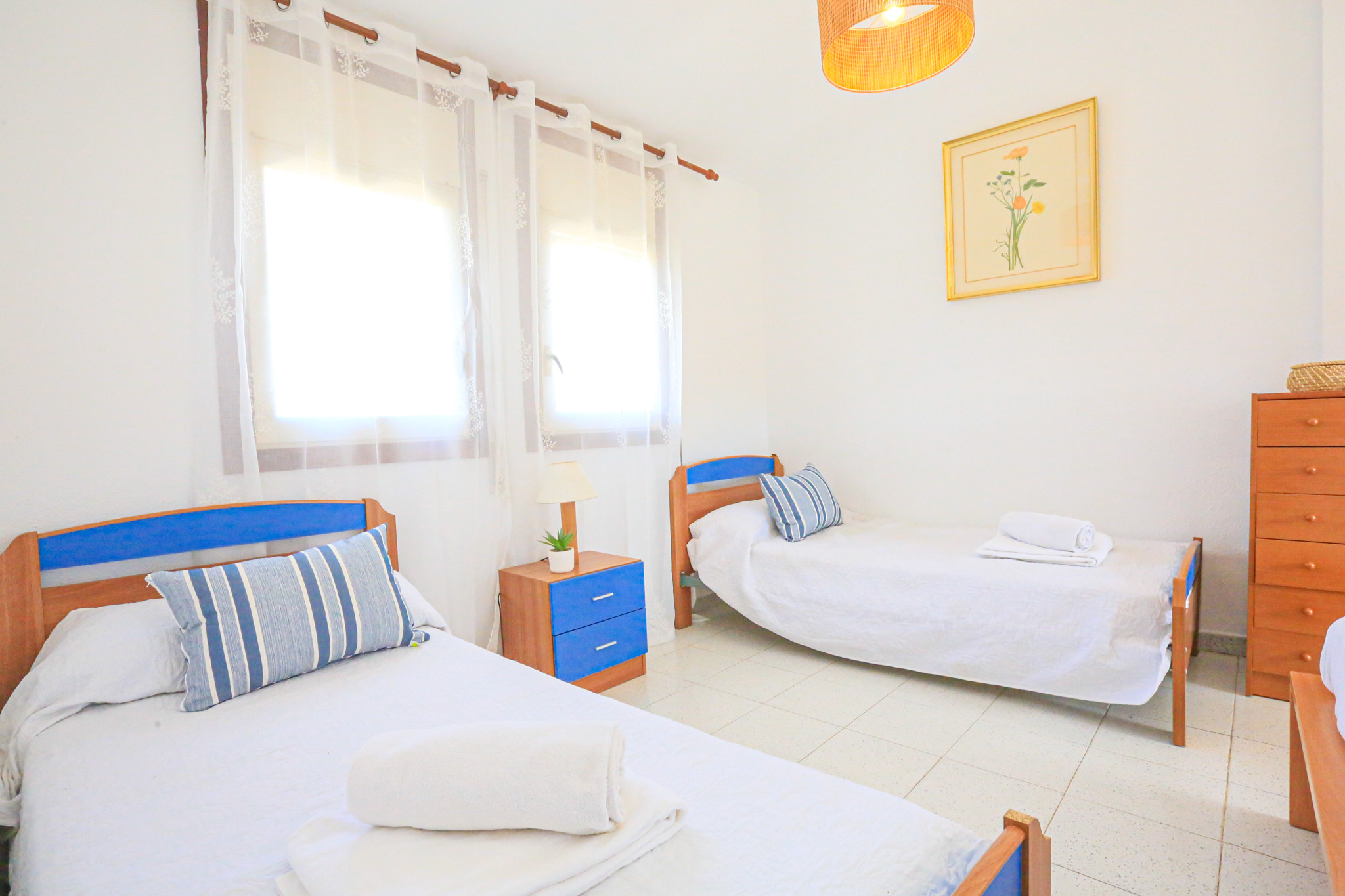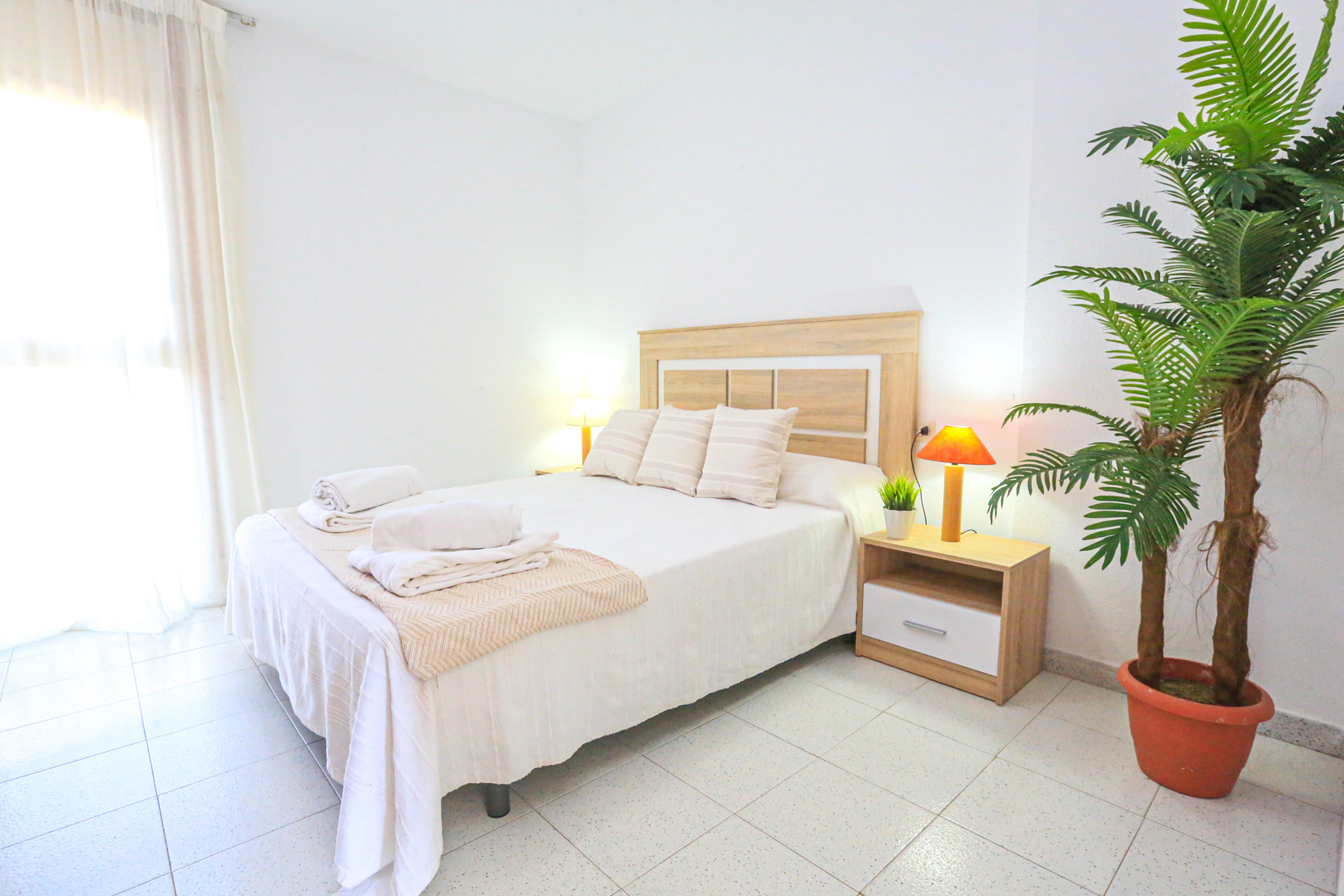 The TROPICANA BJS apartment has two bedrooms. It has one room with a double bed, another with two single beds and a sofa bed in the living room. A bathroom with a full bathtub completes the interior spaces.