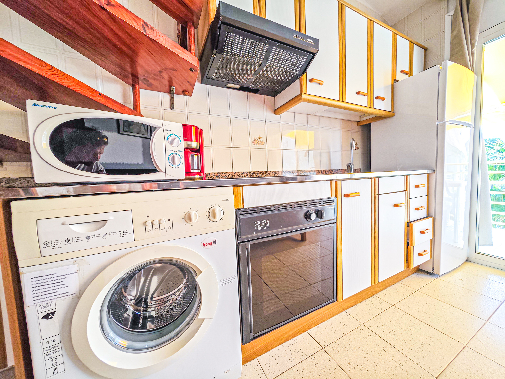 The American kitchen is fully equipped, including fridge, freezer, washing machine, oven, coffee machine and complete kitchenware.