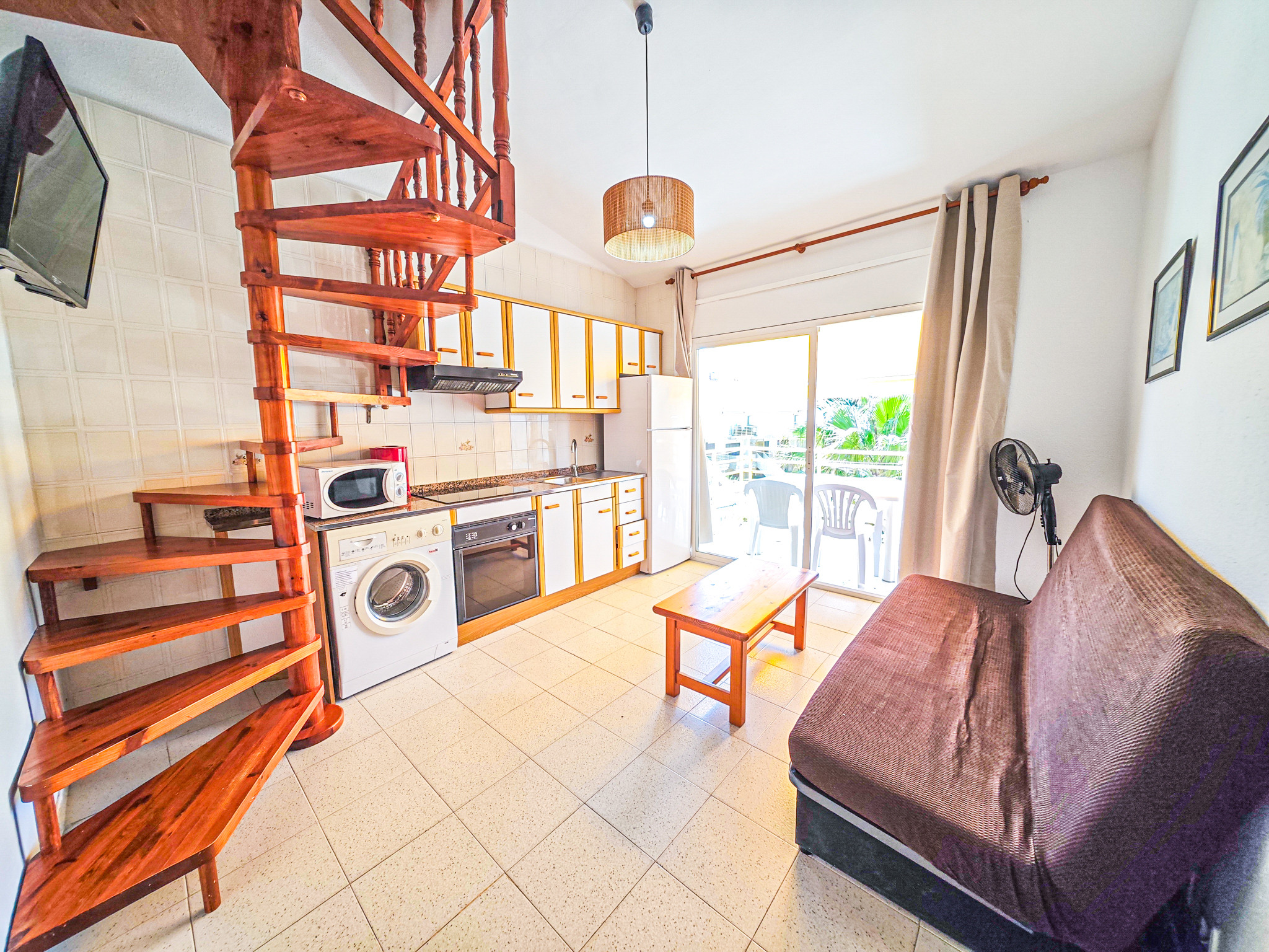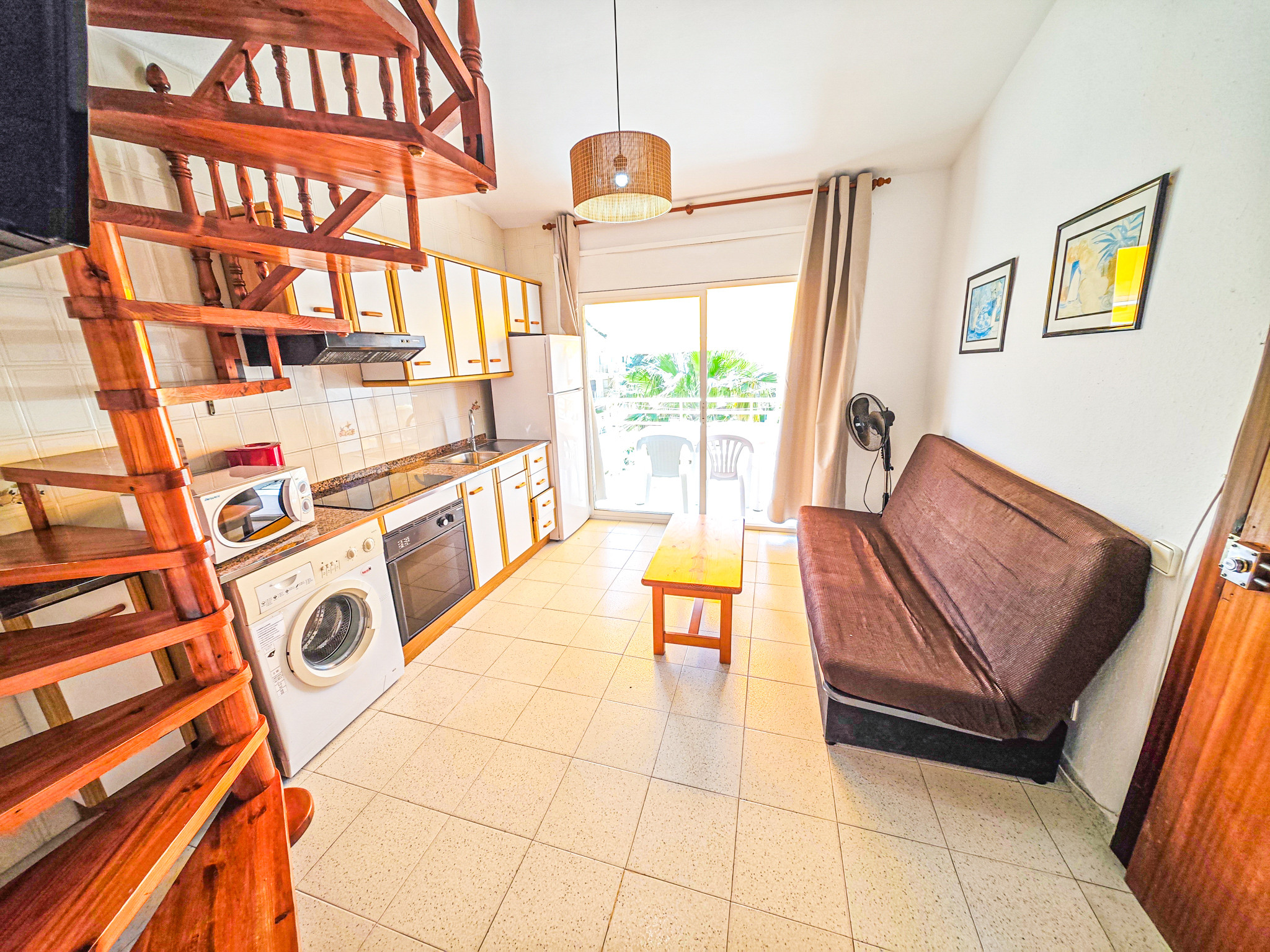 Charming family apartment in the TRES CARABELAS complex, perfect for a relaxing and fun holiday near the beach. This cosy 41-square-metre accommodation is a duplex with a kitchen, bathroom with bathtub and bedroom on the ground floor. Climbing the stairs, you will find another bedroom and a toilet.
