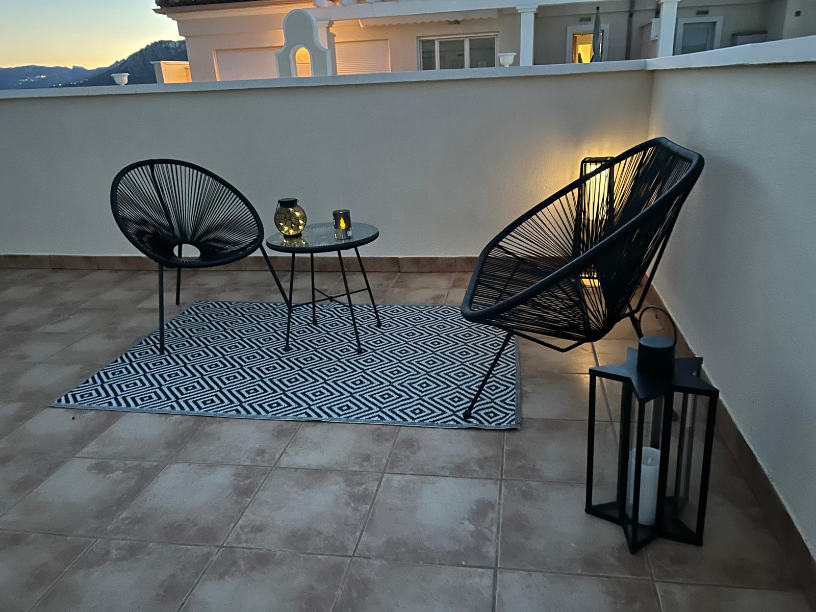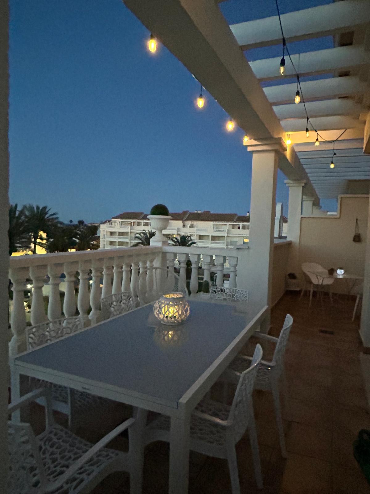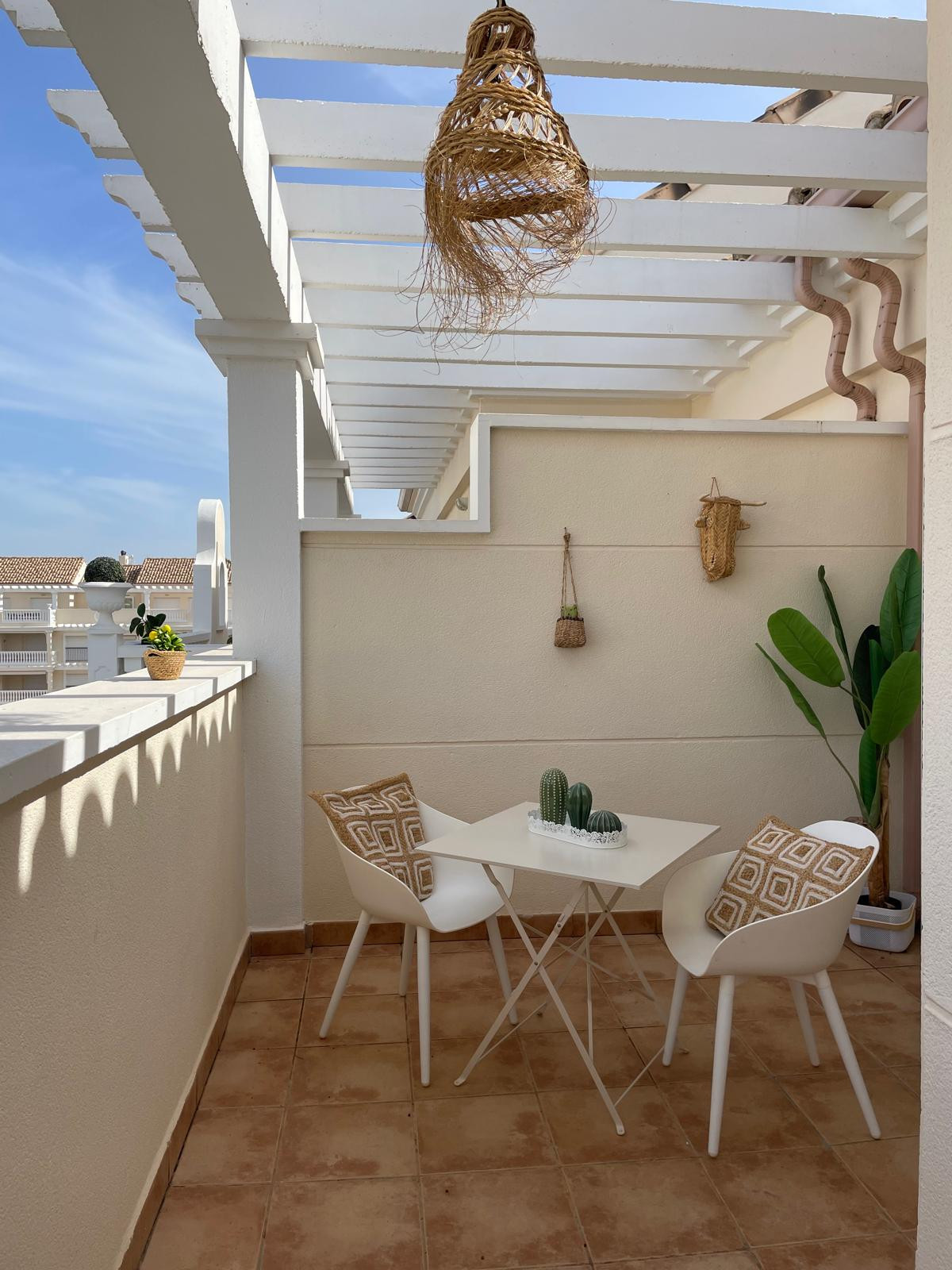 The apartment is coquettish, has a big terrace, with view to the comun area. It is a very nice urbanisation with gardens, pools and padel.