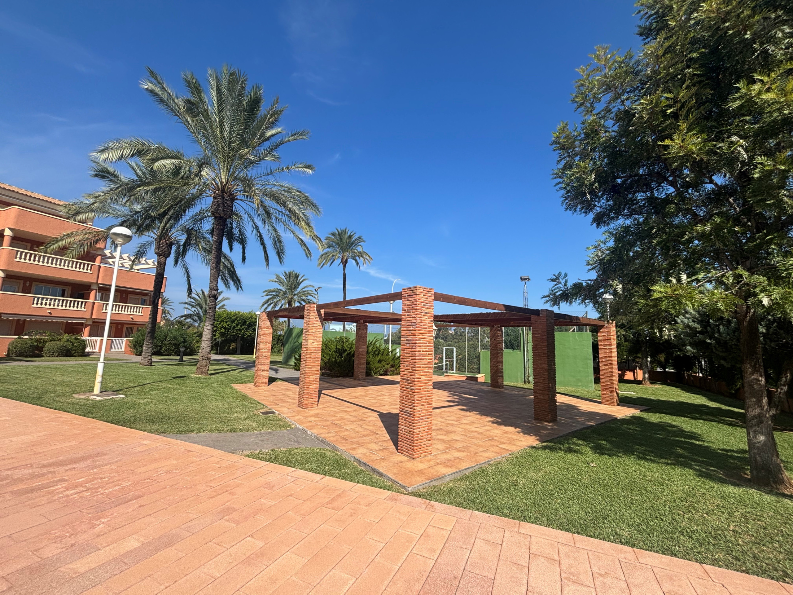 It has a garden, garden furniture, fenced plot, terrace, air conditioning only in the living room and ceiling fans in the bedrooms. Community+children's pool, open-air parking.