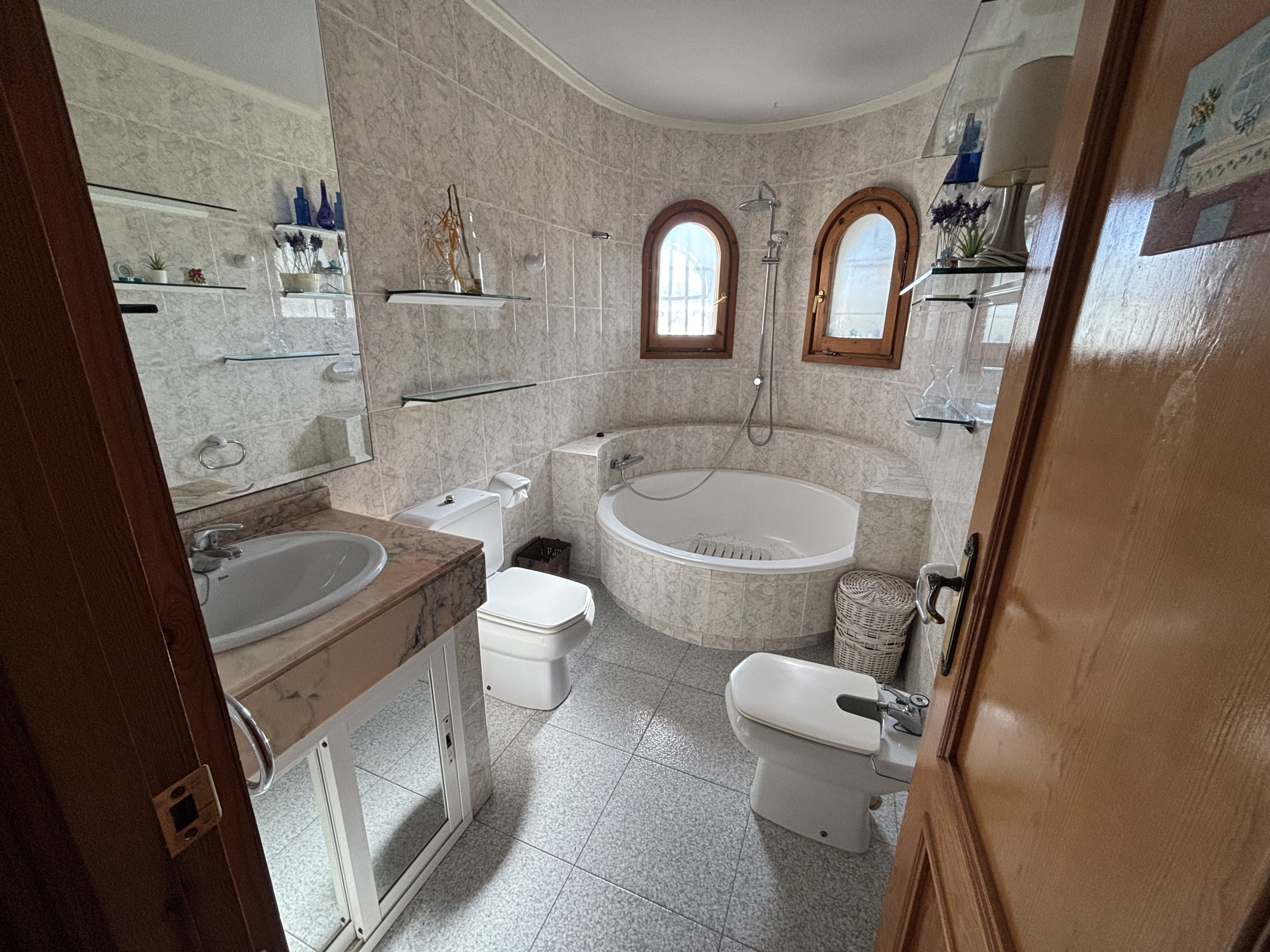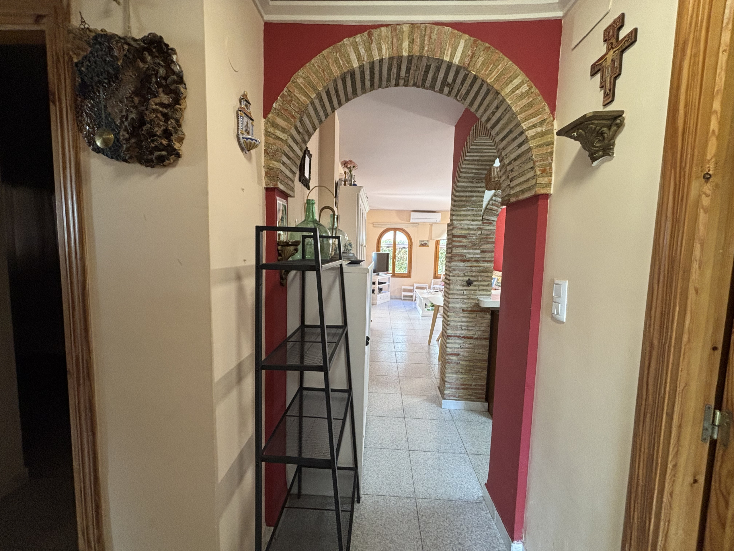 It has a garden, garden furniture, terrace, iron, heat pump heating, air conditioning in the living room and some bedrooms, community + children's pool, open-air parking in the same building, Television, satellite TV (Languages: Spanish, English).