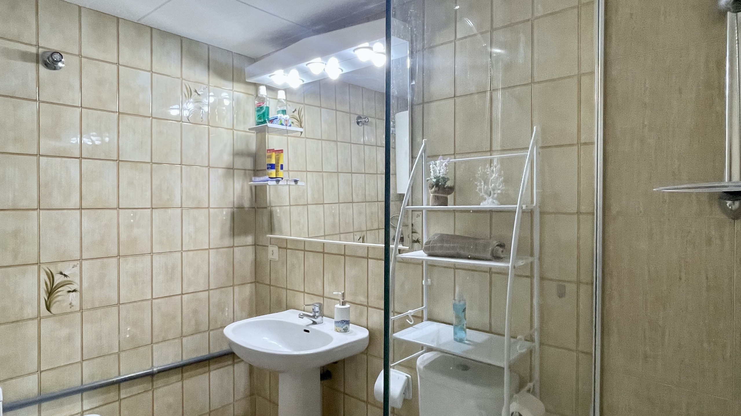 Equipped with all modern conveniences, the apartment includes an elevator, washing machine, iron, heating with heat pump, and air conditioning. The property also offers access to a community and children's pool, perfect for enjoying a refreshing swim on sunny days. For your entertainment, a television is provided.