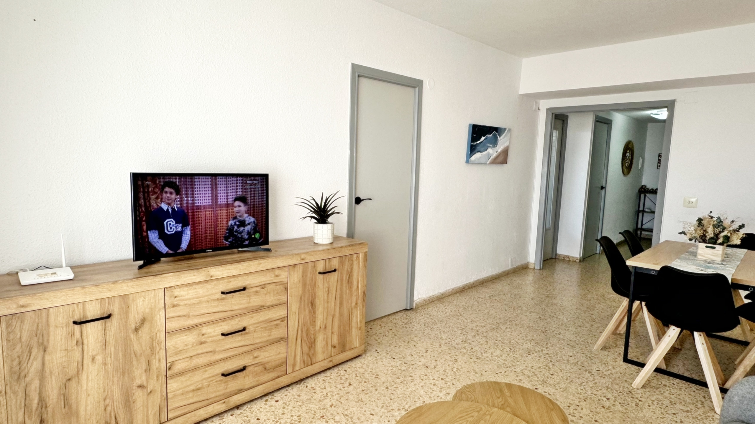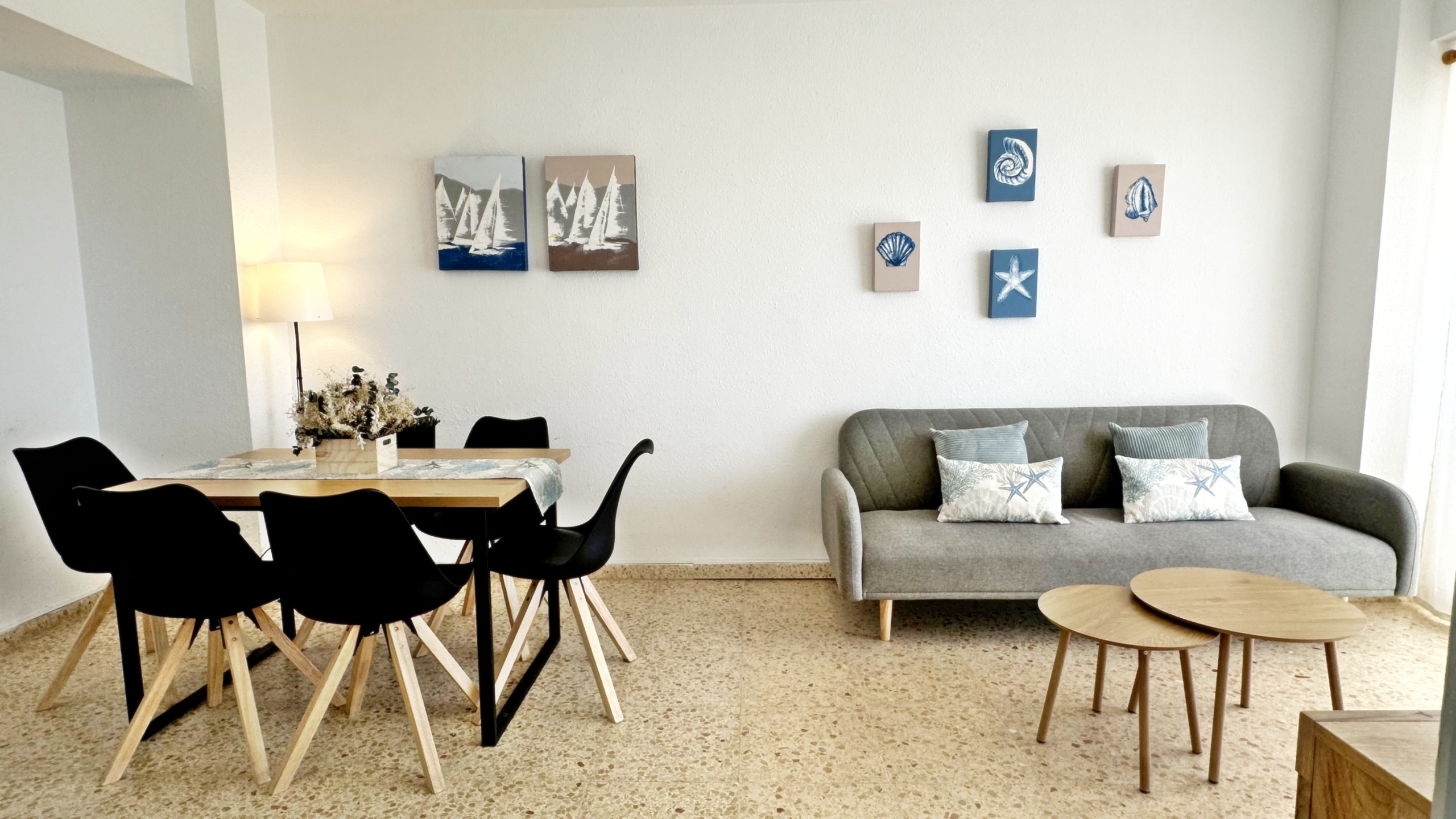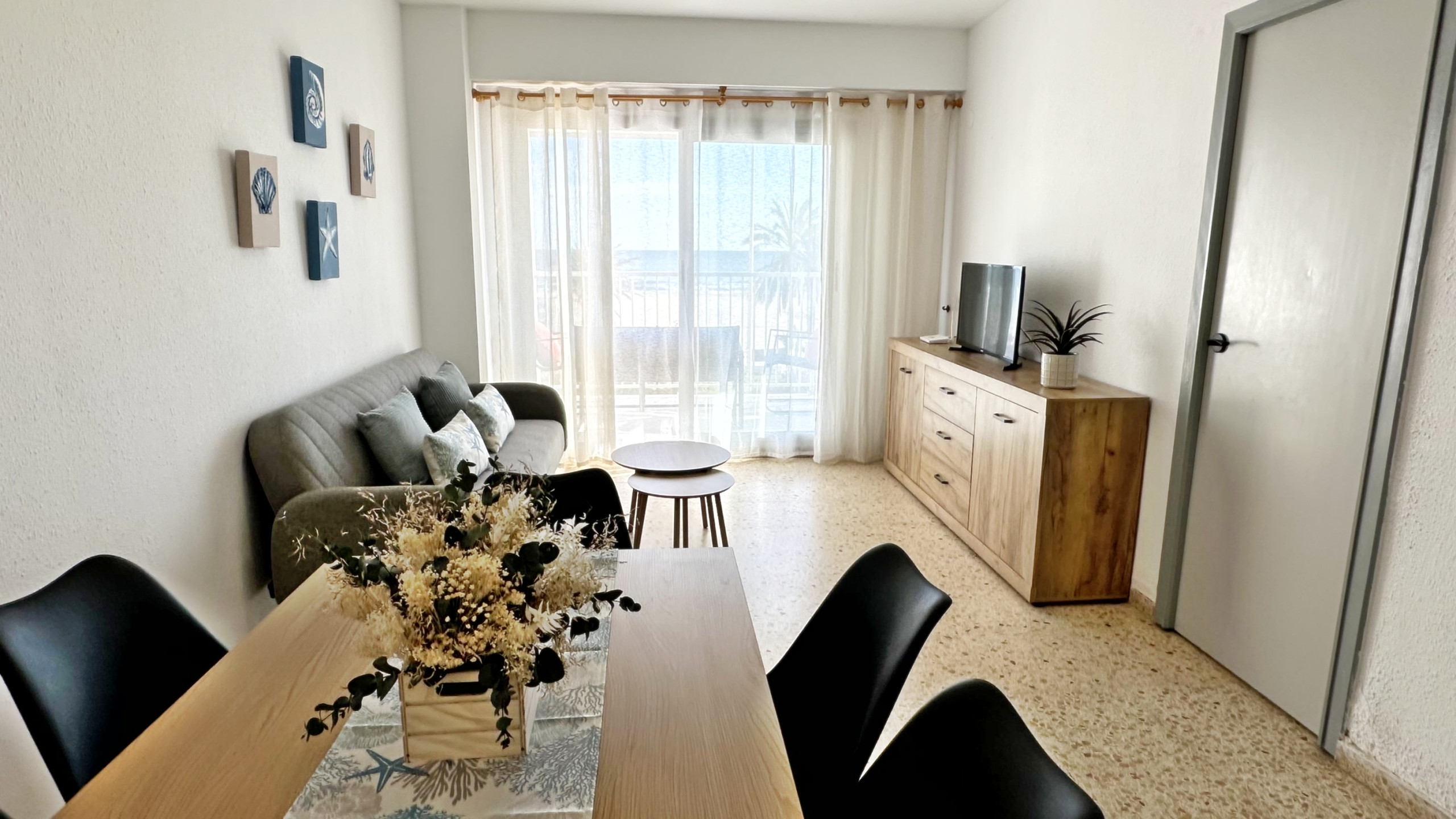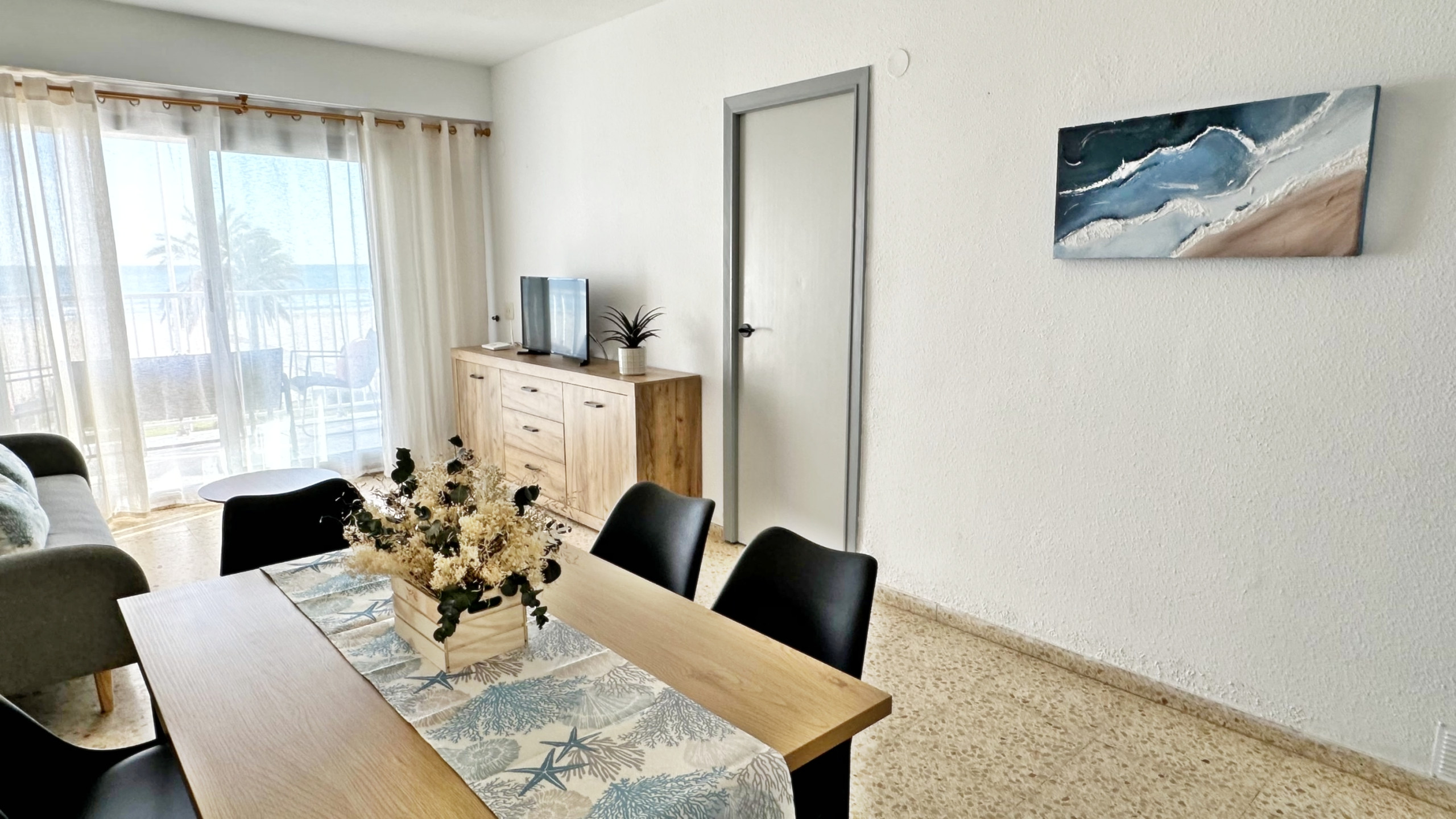 Two-bedroom apartment, WITHOUT POOL, located on the second beach line, in the centre of the seafront promenade. Located at C/ Mallorca 27. Area of the Bayren Hotel and Clot de la Mota park.
