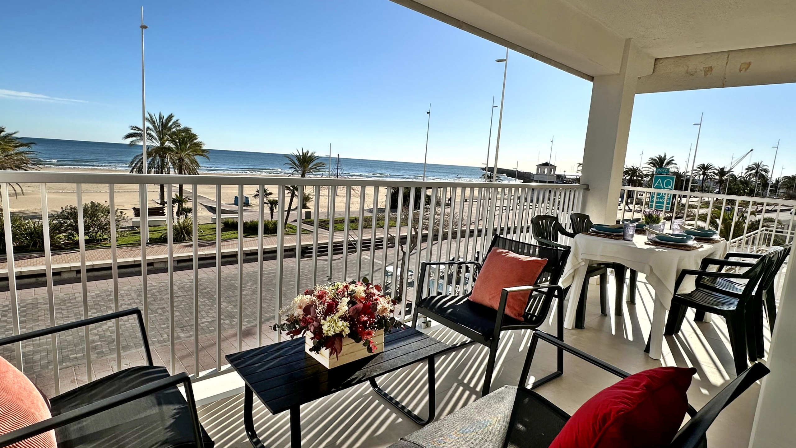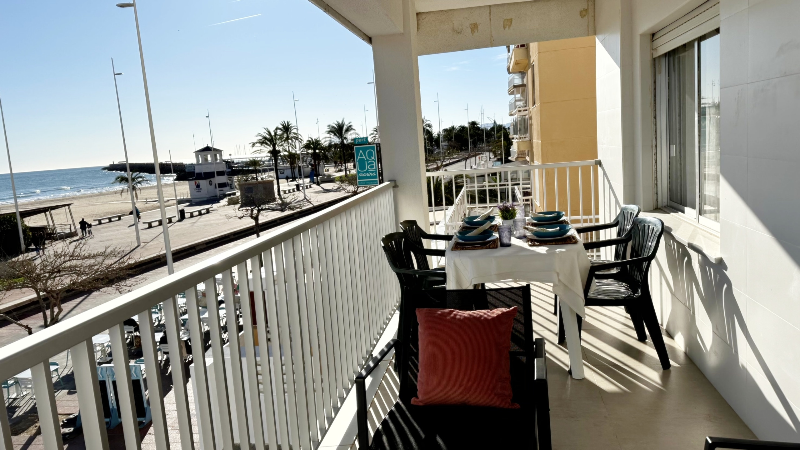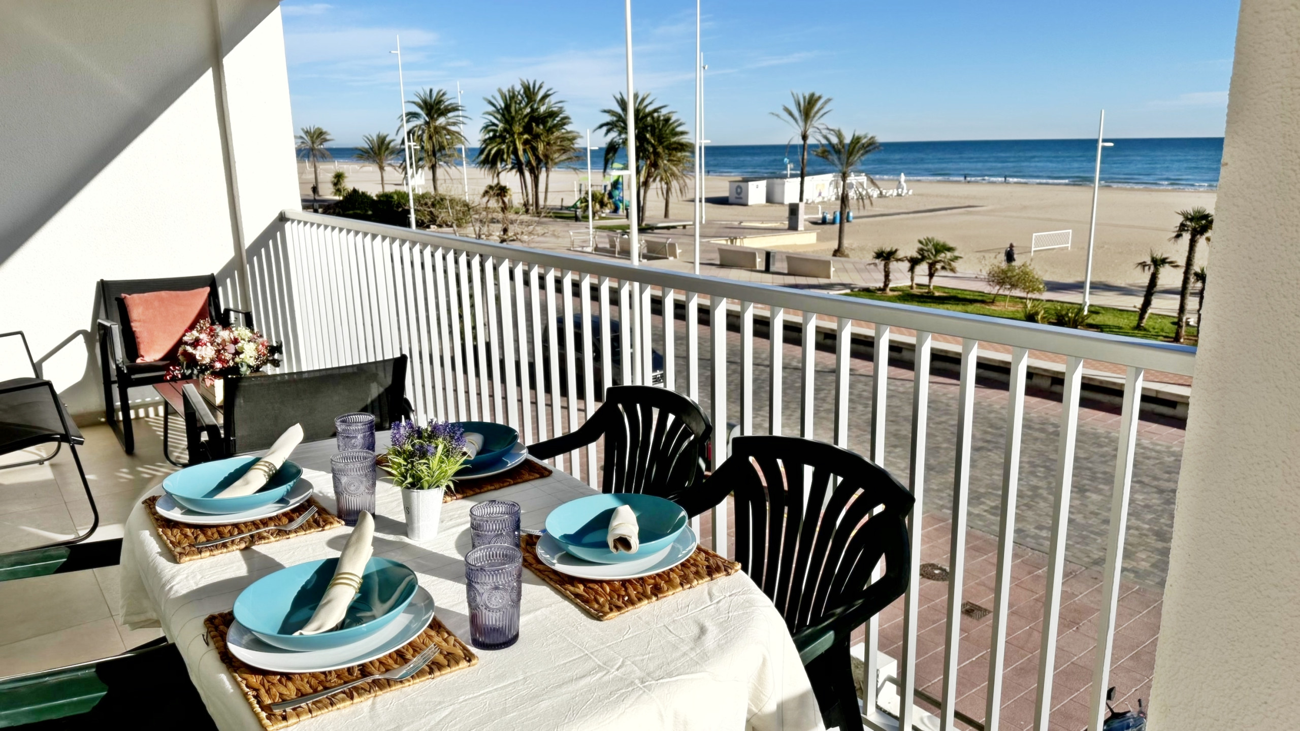 The apartment is located on the FIRST LINE OF THE BEACH with front views of the sea, in one of the best areas of Gandia beach, a few meters from the Gandia nautical club, and very close to all services such as ice cream shops, cafes, hairdressers, supermarket and everything necessary for a comfortable stay without the need to use the car.