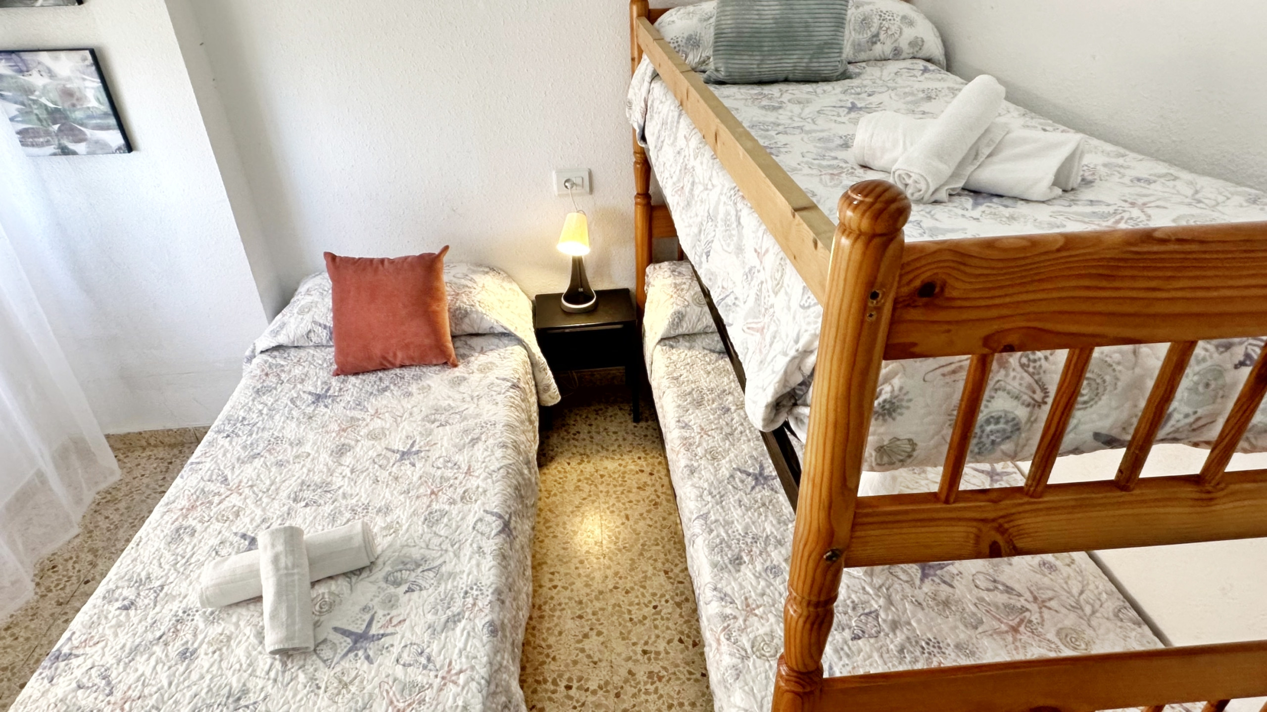 It consists of: 2 bedrooms (1 bedroom with two beds and another with a bunk bed and a single bed), living room, fully equipped independent kitchen, 1 complete bathroom with shower.