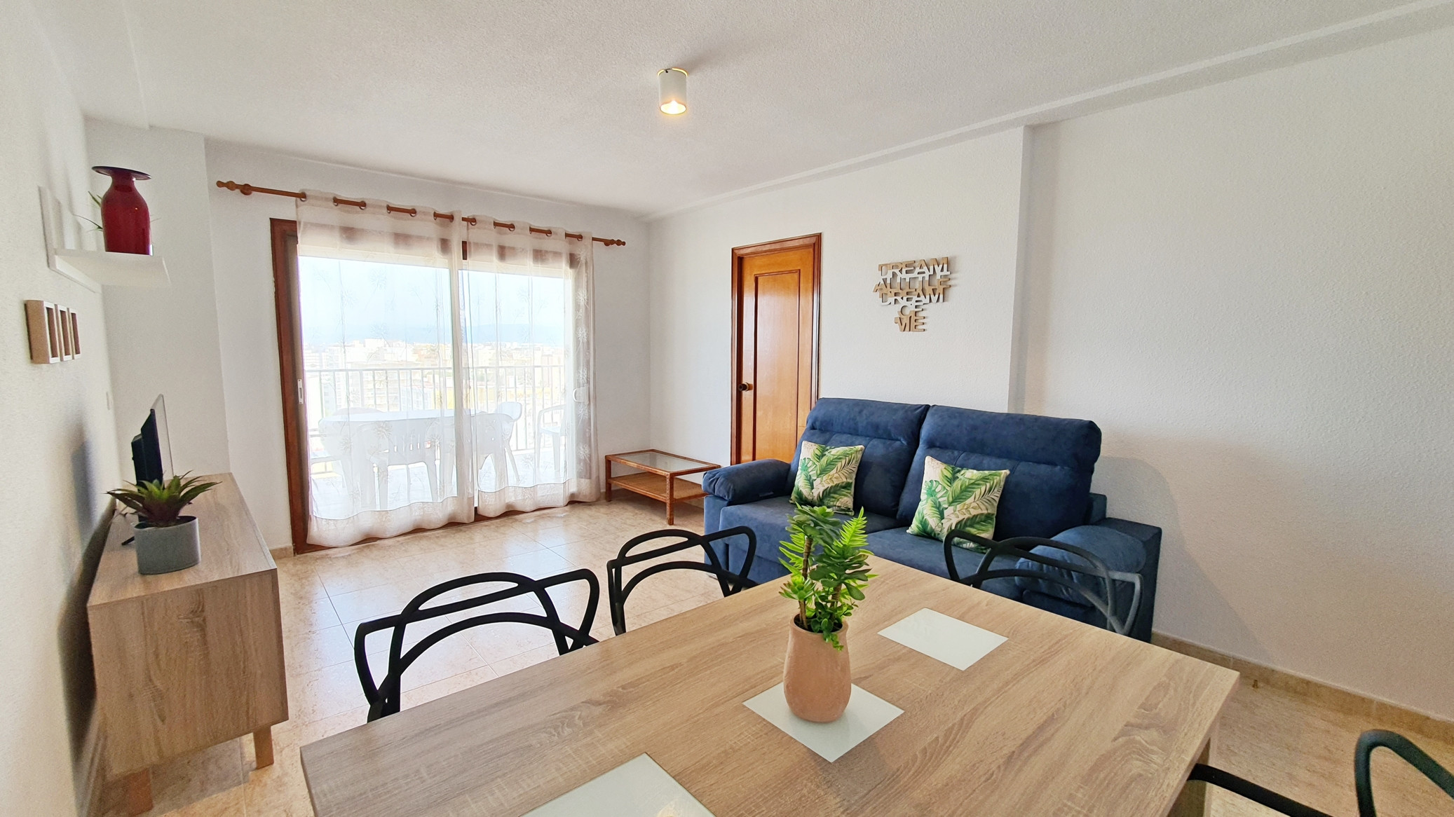 Apartment on the second beach line with front views, 3 bedrooms. Located in the central area of Gandia, on Formentera street 3, behind the Colonia Ducal complex.