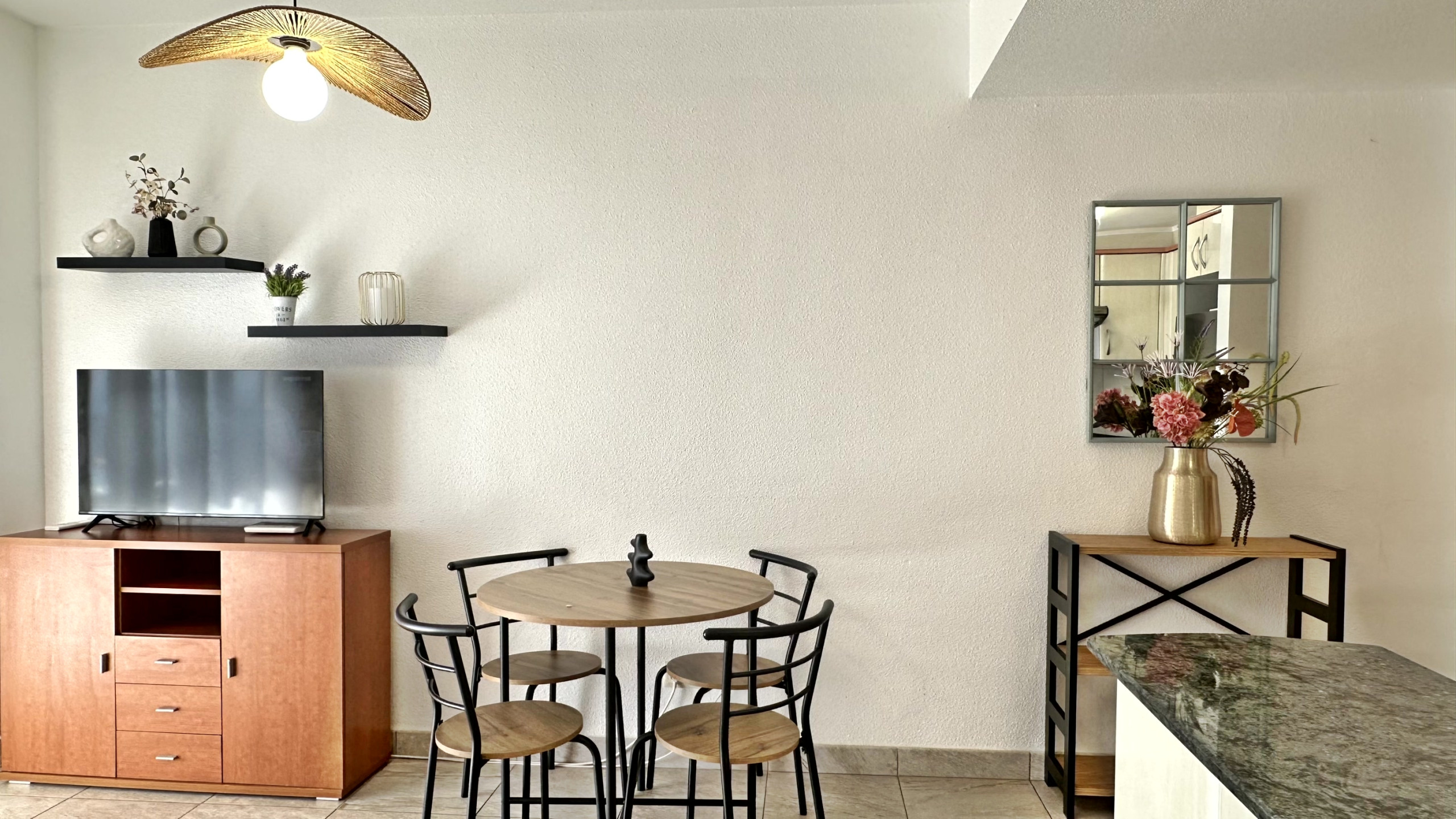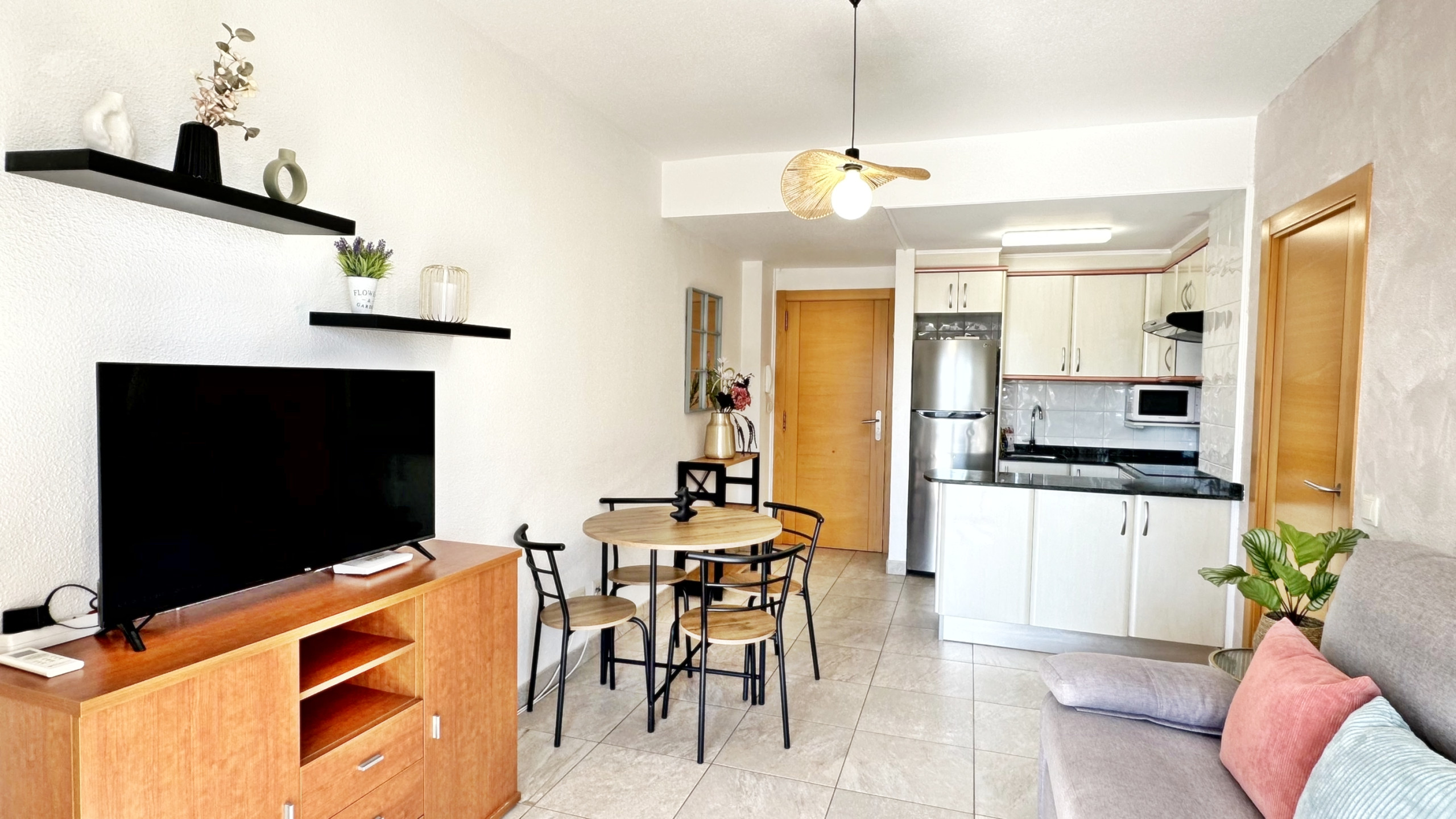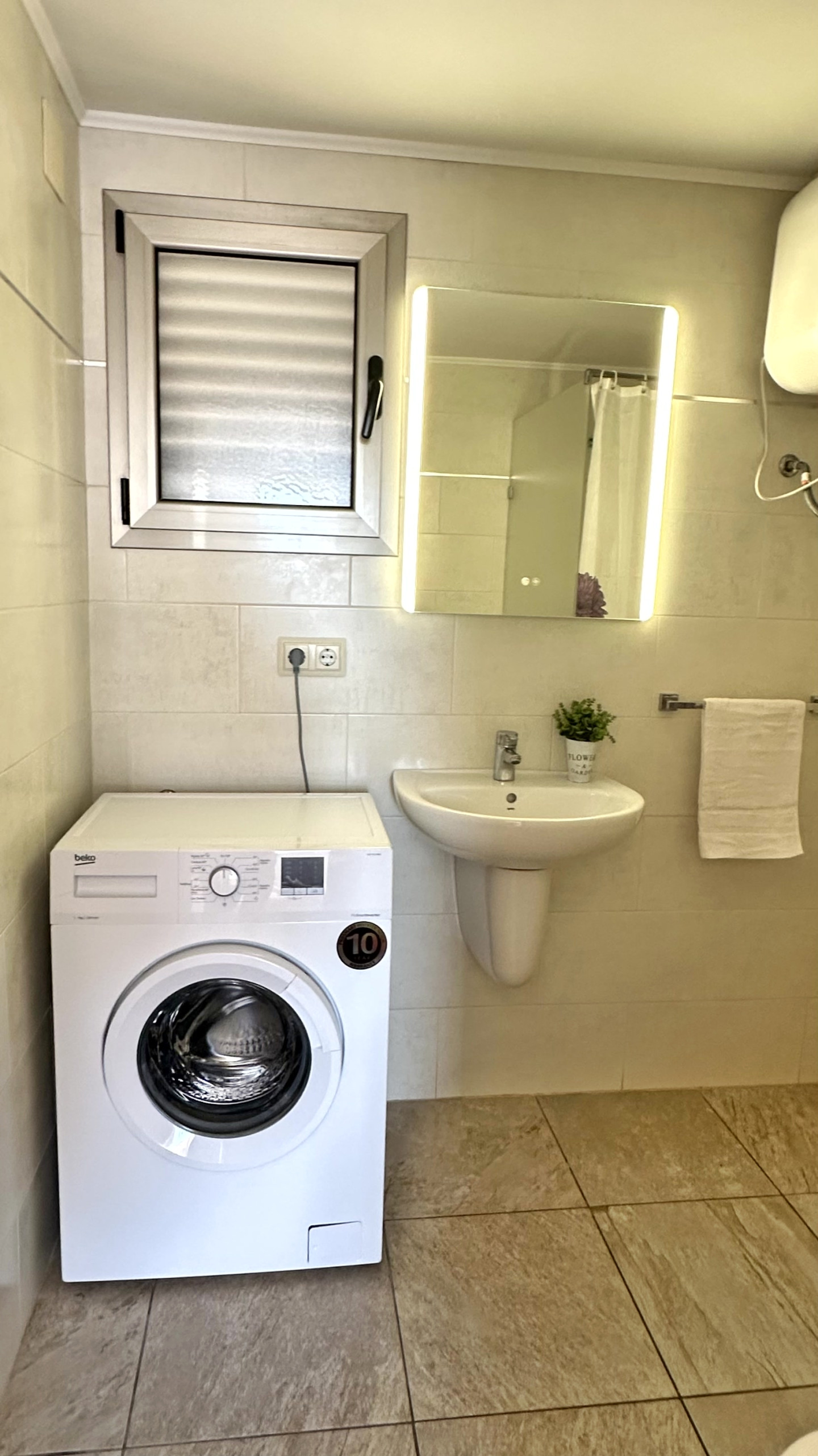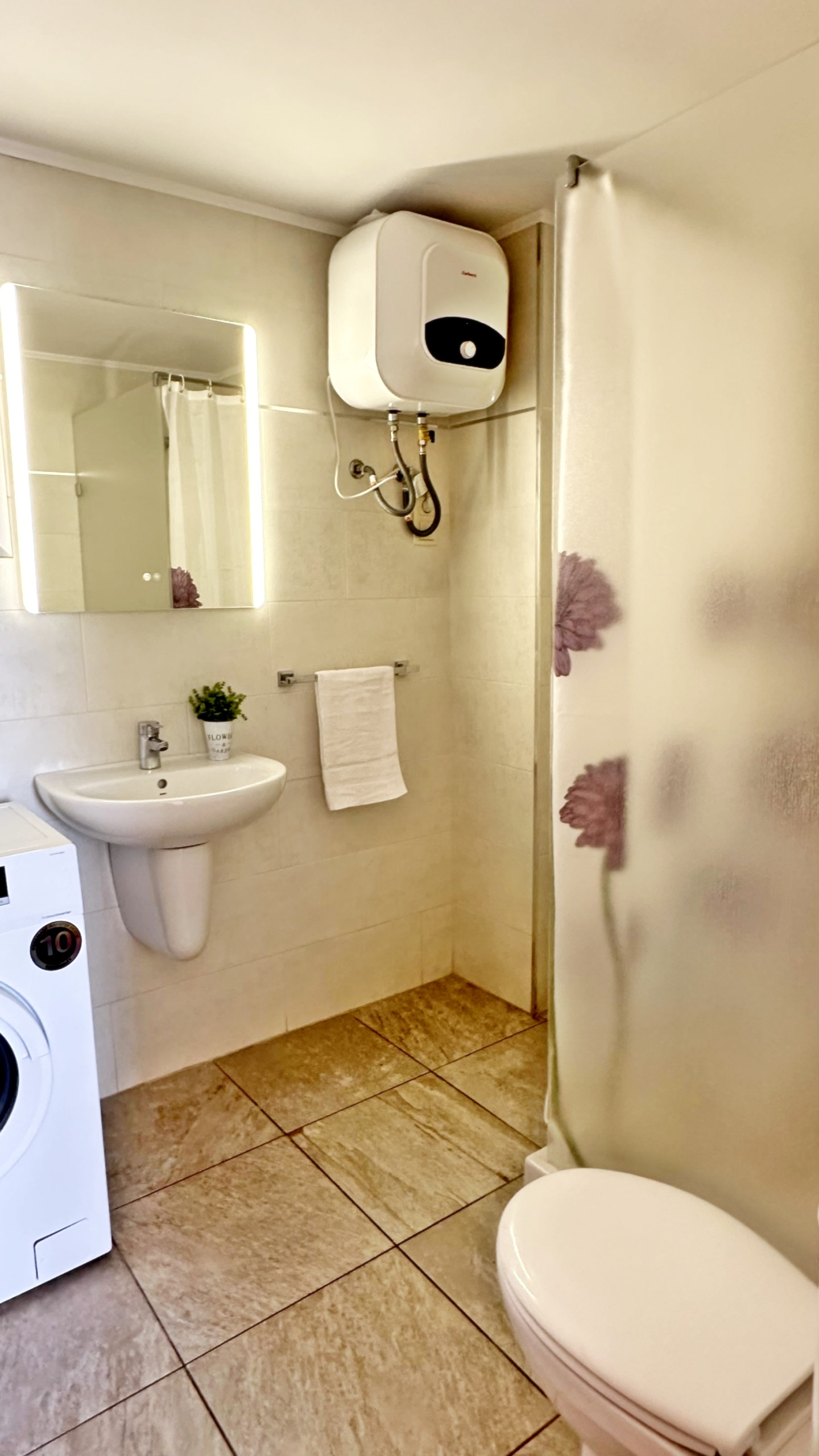 Equipped with: TV, washing machine, fridge, microwave, toaster, iron, ironing board, sheets, hand towels and shower towels, crockery and kitchen utensils