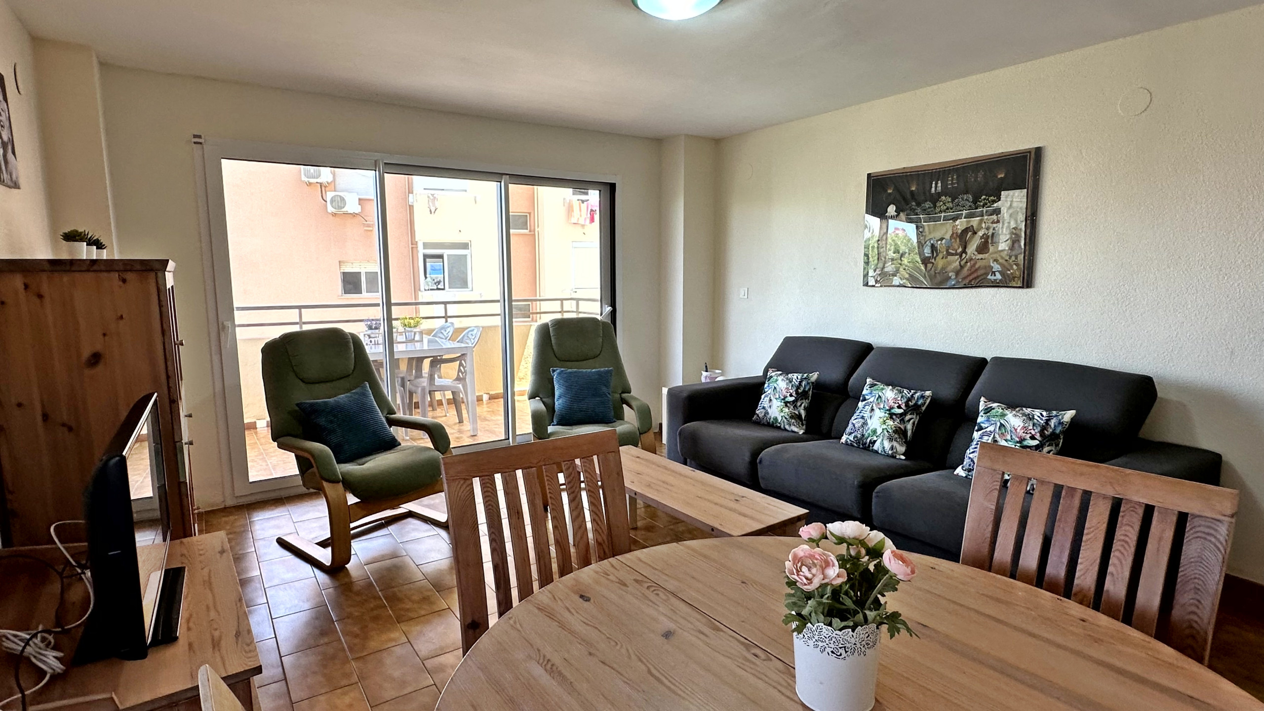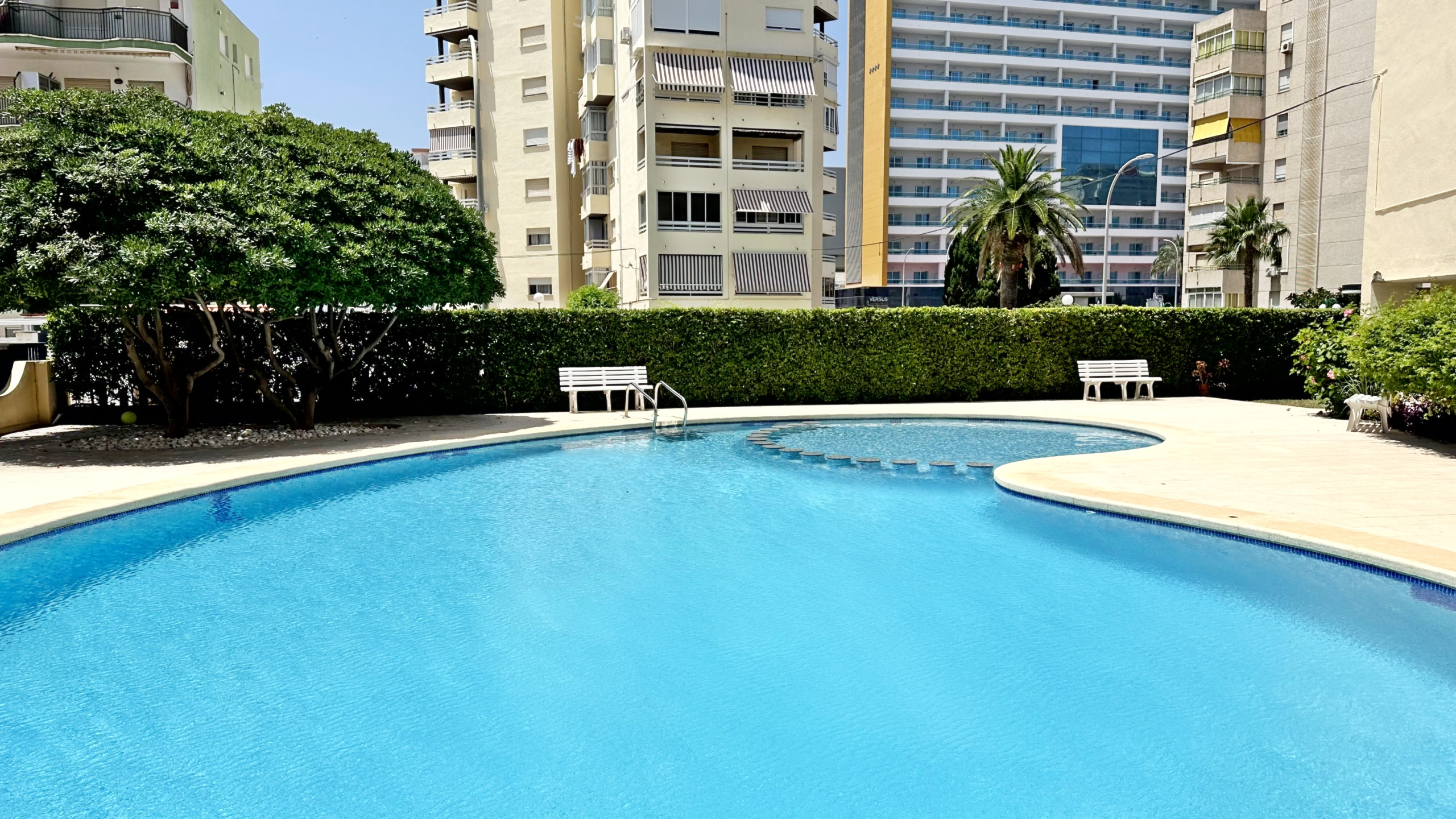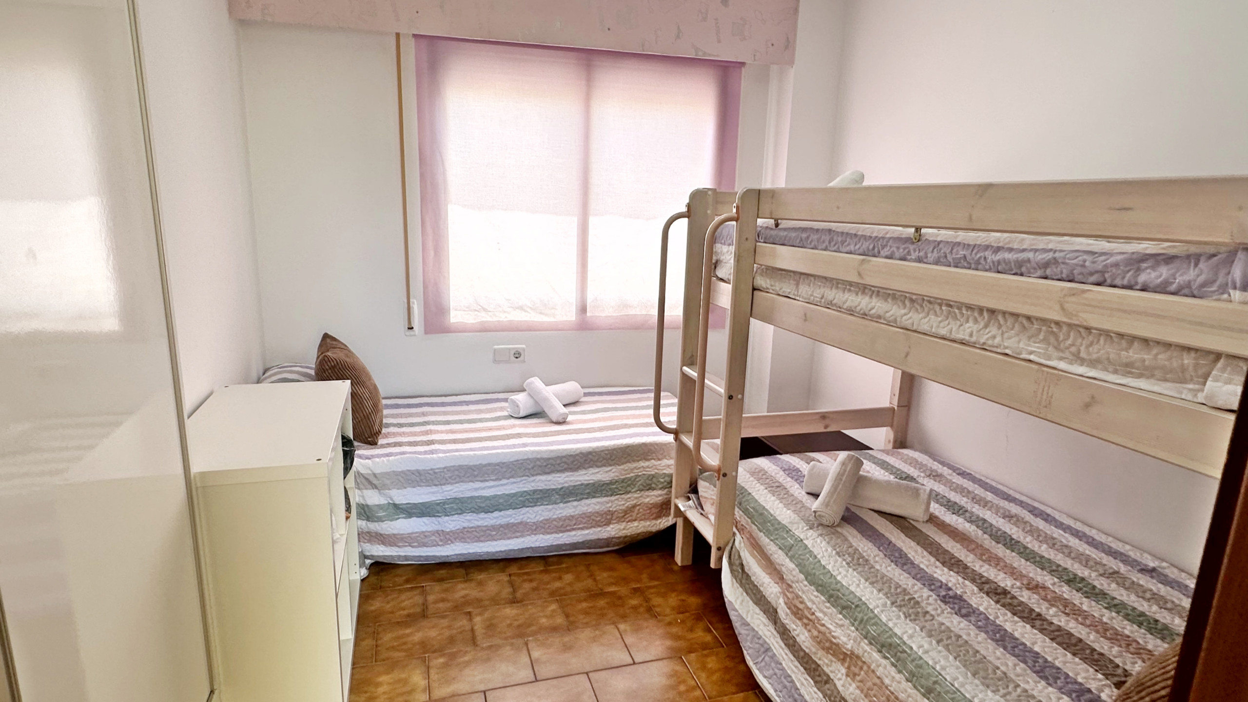 3-bedroom apartment located on the first line of Gandía beach with beautiful beach views, situated in a family-friendly and quiet area of Gandía beach. With swimming pool, children's pool and garage parking for one car.