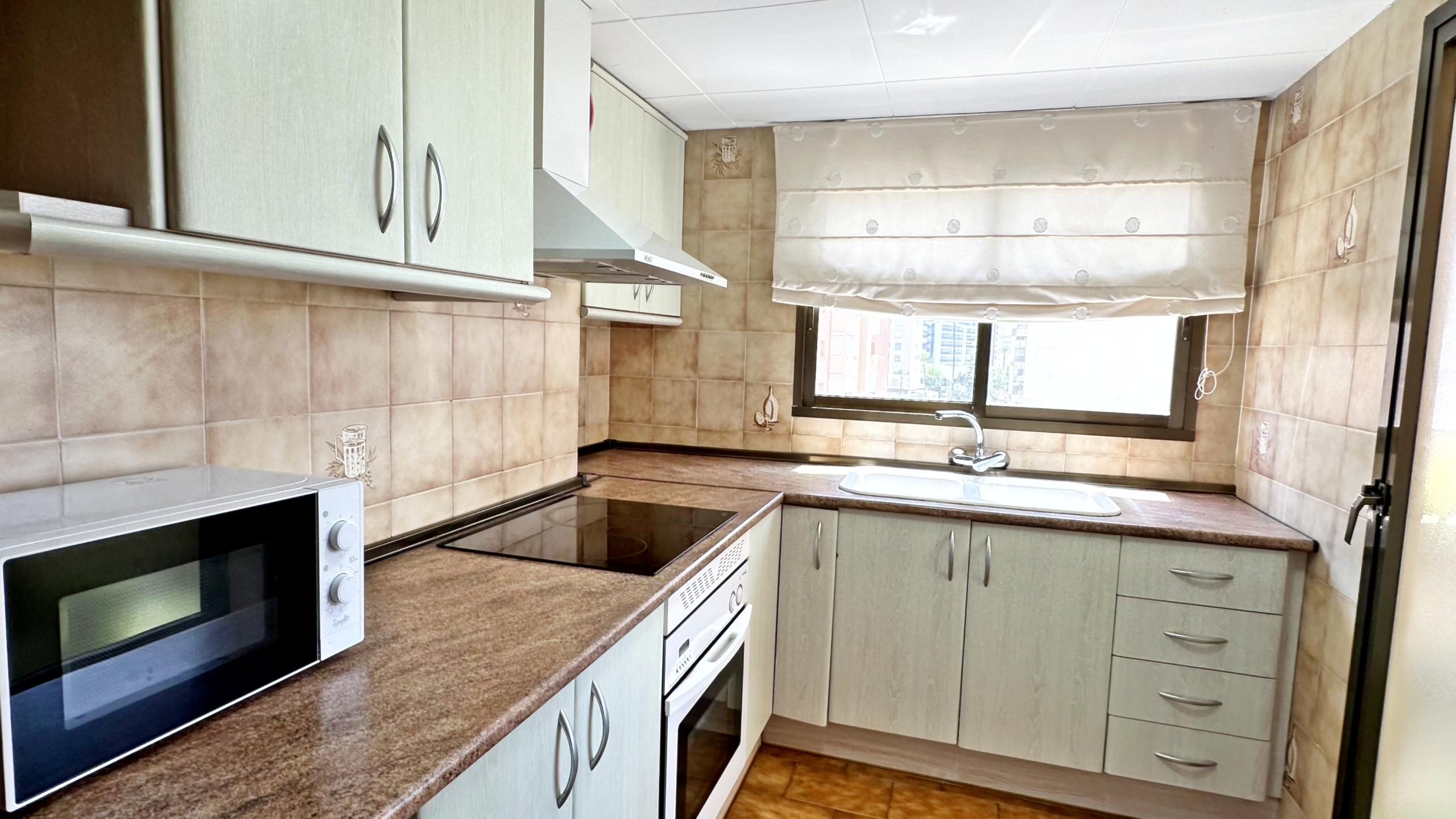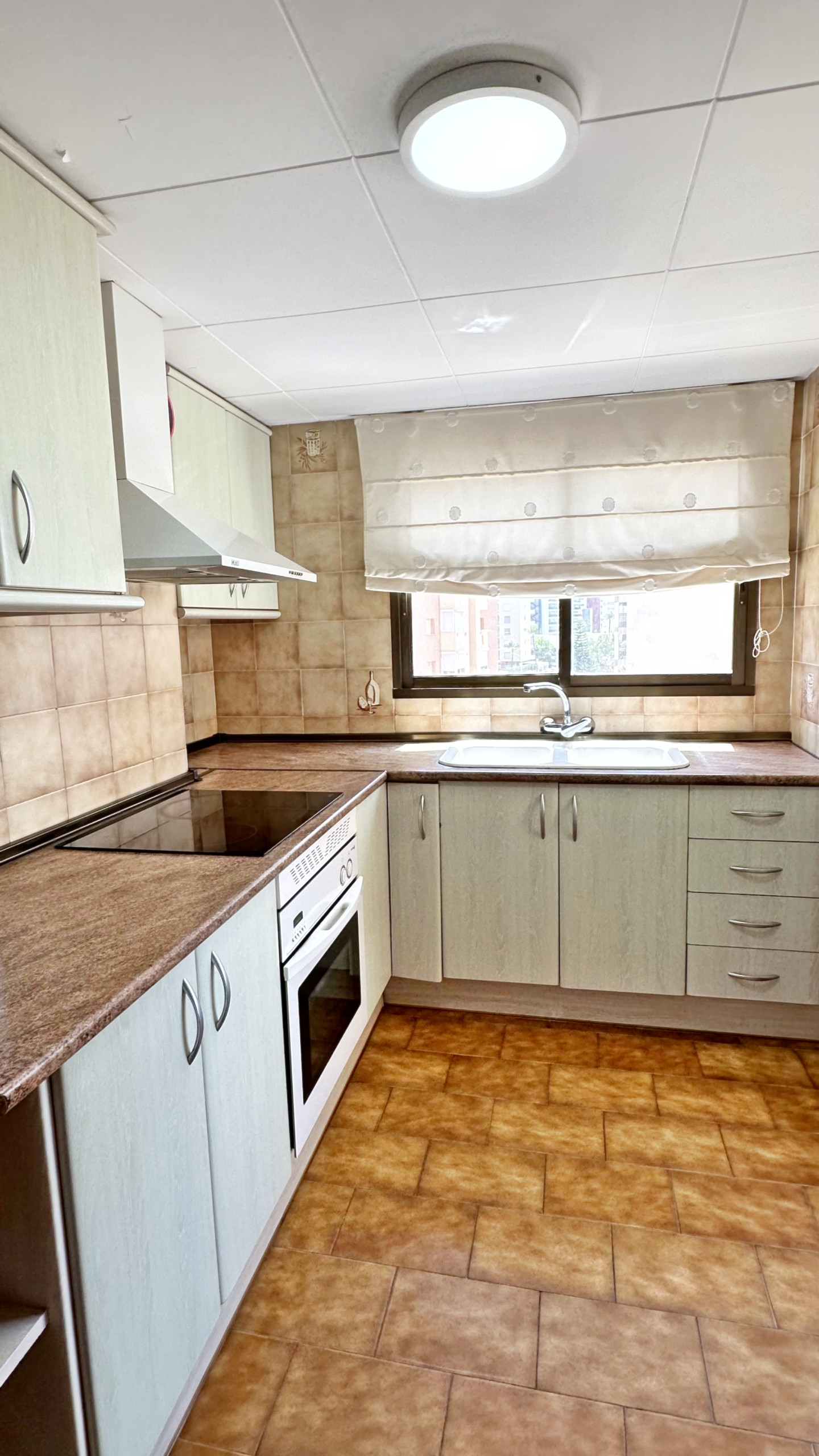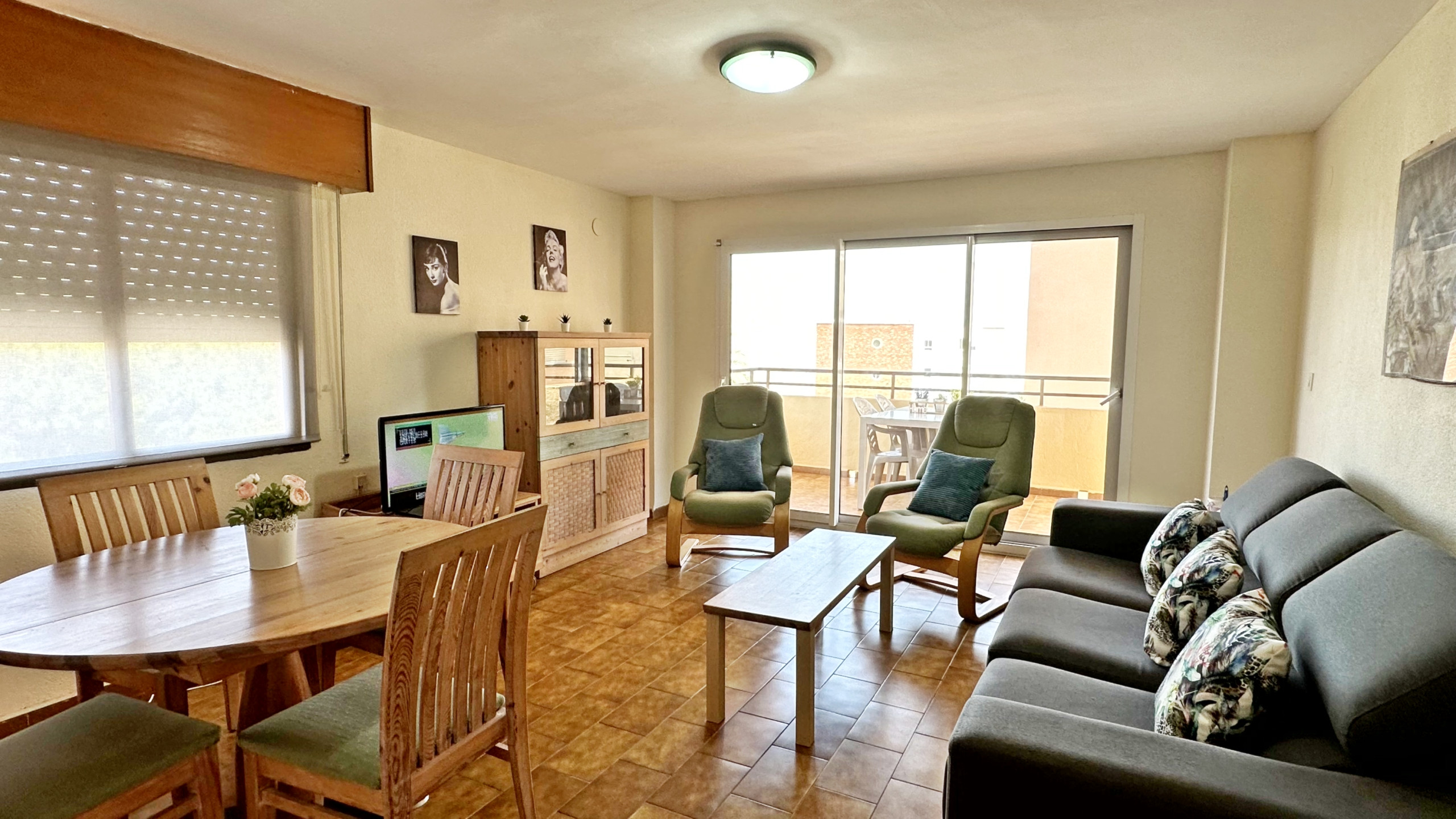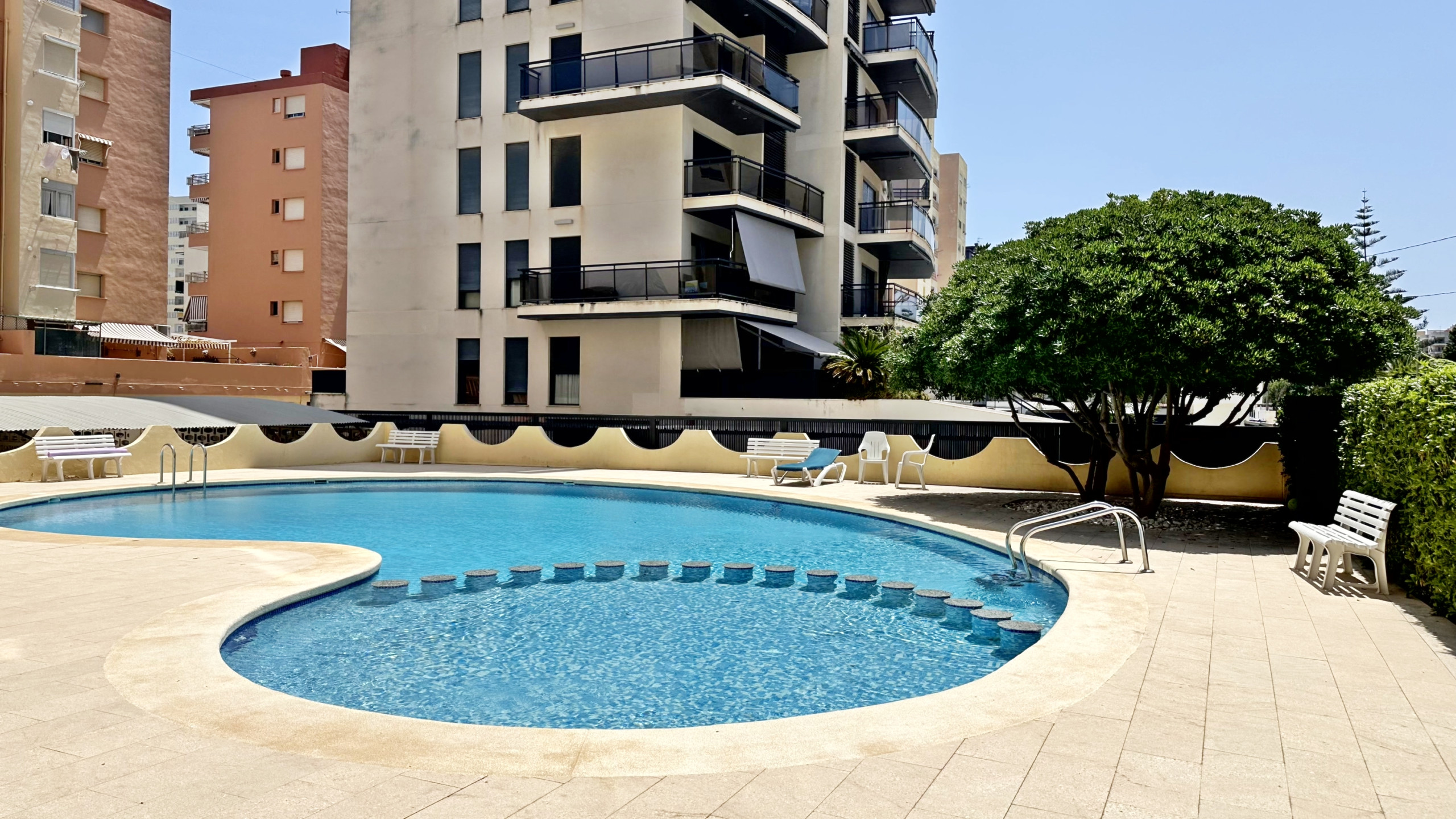 3-bedroom apartment located on the first line of Gandía beach with beautiful beach views, situated in a family-friendly and quiet area of Gandía beach. With swimming pool, children's pool and garage parking for one car.
