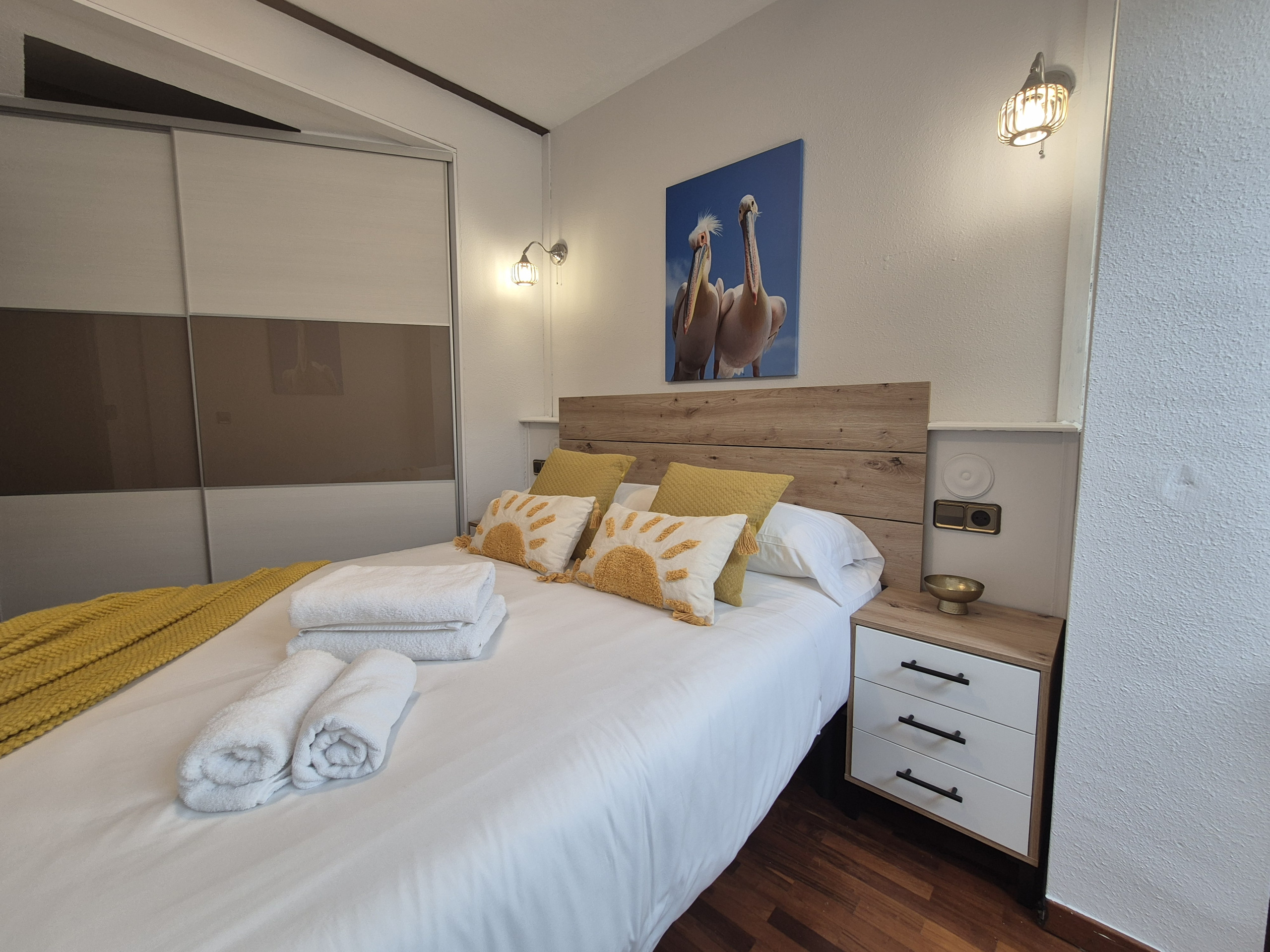 Cosy apartment with two bedrooms, each with two single beds, one of them with a converter to join the two beds and become 180x200cm. In the living room area there is a double sofa bed of 130x200cm. It has a full bathroom.