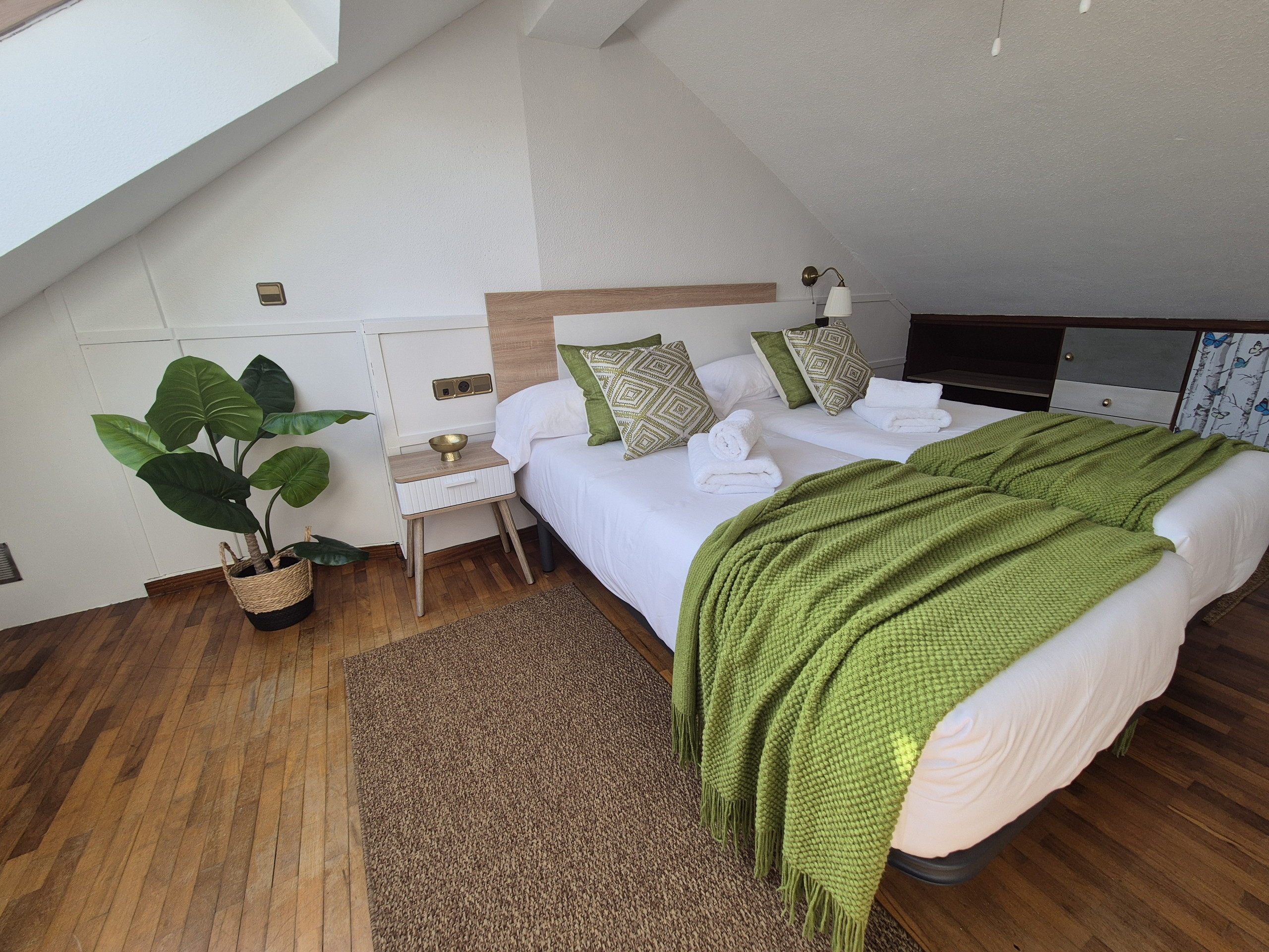 On the ground floor: 2 bedrooms with beds of 135 and 150 cm, and 2 full bathrooms (one en suite). On the second floor: spacious living room kitchen fully equipped and additional bathroom. The third floor, under the roof, has a bedroom with 2 single beds of 80 cm. Comfortable, bright spaces with everything necessary for your stay.