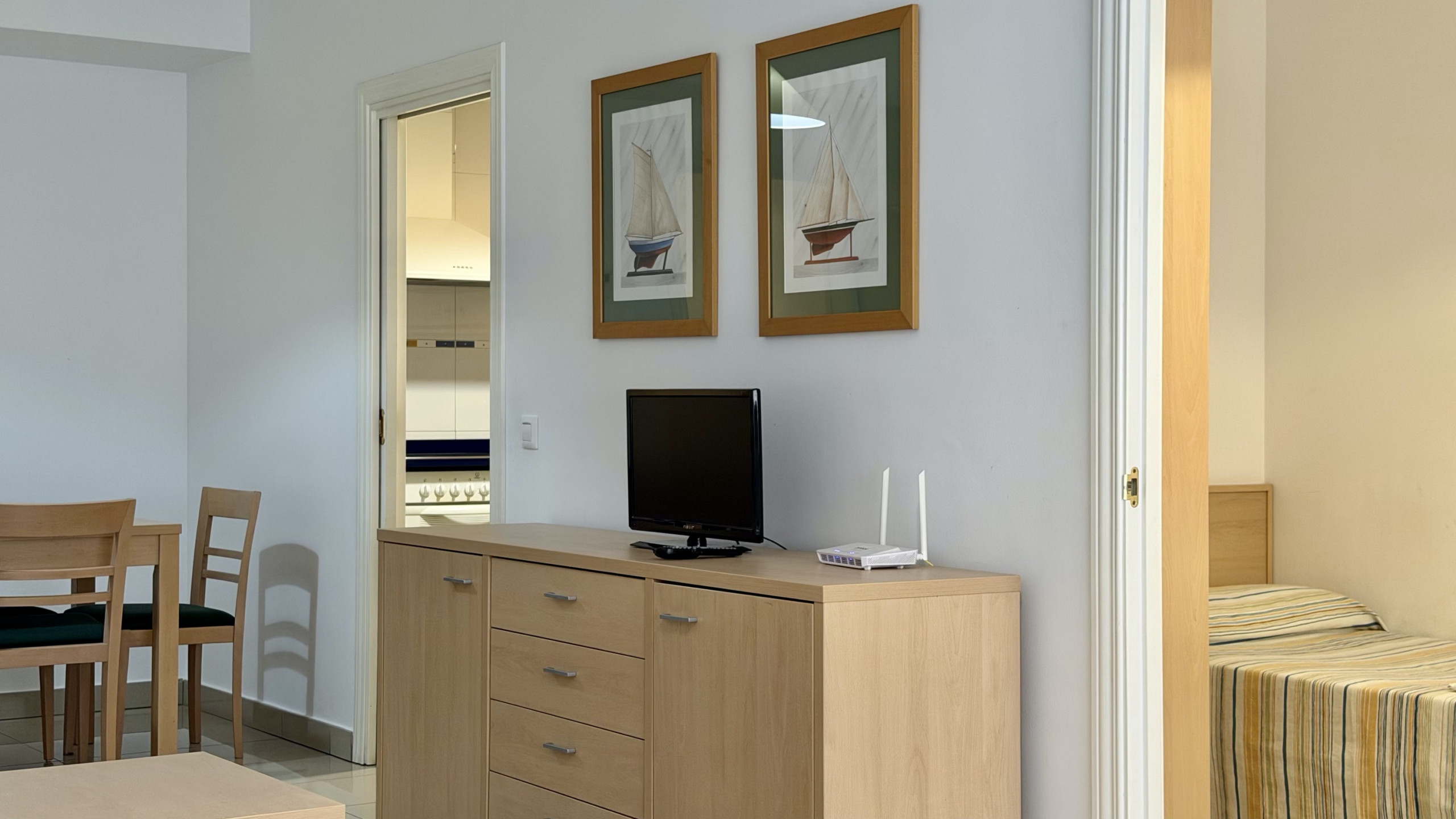The apartment has two bedrooms equipped with three beds: a bunk bed, a double bed and a sofa bed, ensuring comfortable rest for all guests. It has a single bathroom with a bathtub, ideal for relaxing after a day at the beach.