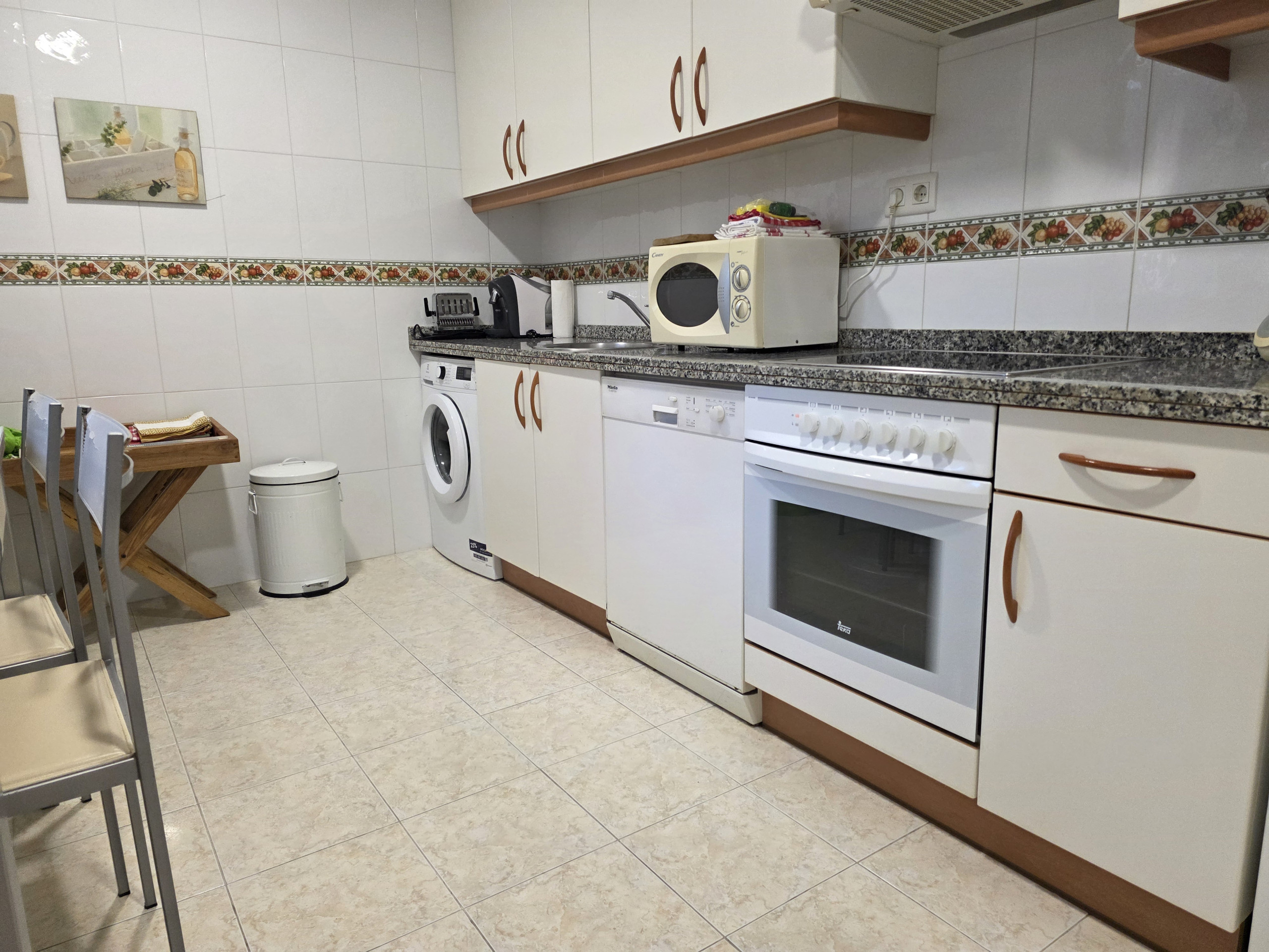 In this bright and modern apartment you will find 2 bedrooms: A main bedroom with an en-suite bathroom and a second bedroom with 2 single beds, a desk and a large TV. The living-dining room is the perfect place to share family moments and enjoy the relaxation provided by the spacious chaise longue sofa, this space connects to a superb modern and fully equipped American kitchen with all amenities.