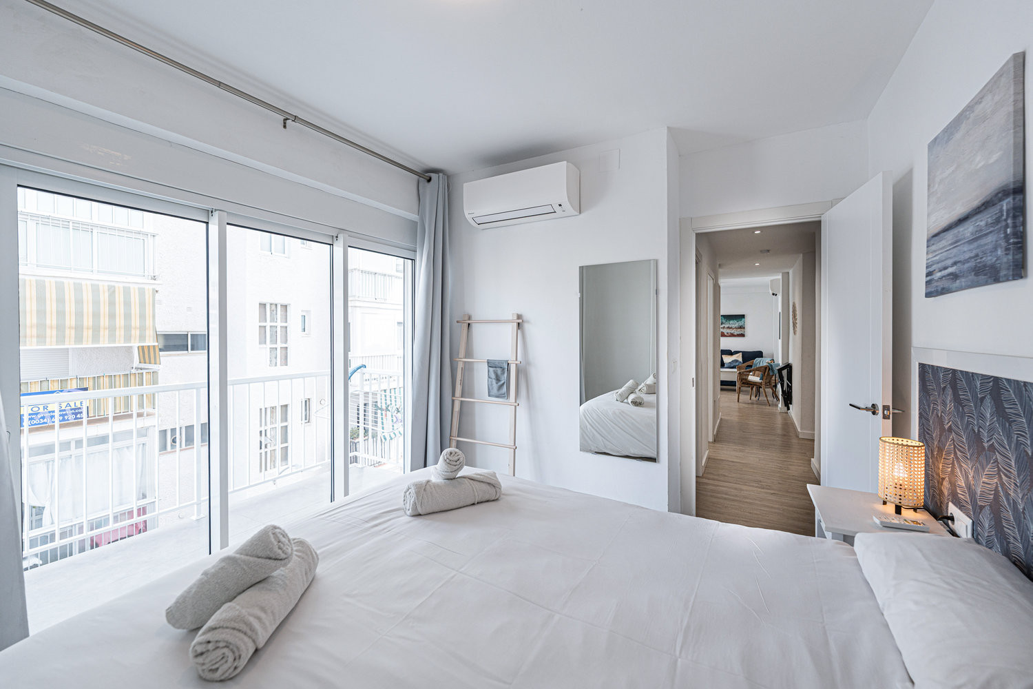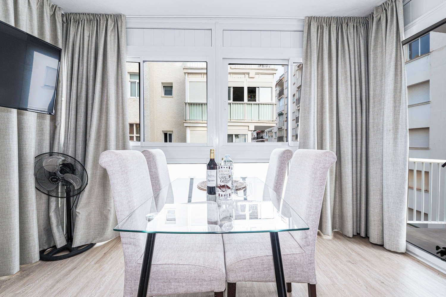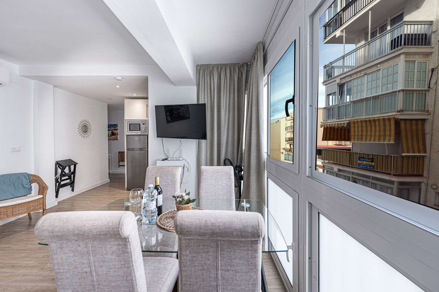 The apartment is in a lovely location with two balconies, close to the beach and restaurants.The apartment is very clean and modern with everything you need for a relaxing holiday, Nice to have a shopping trolley as we were stopping for a month,Alreasee more