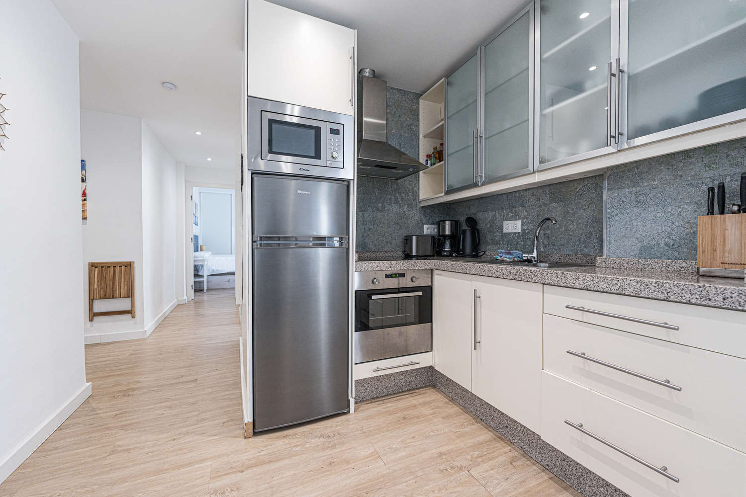 As it is a central area, the building does not have private parking. In low season, you can usually find a space in the nearby streets, but in summer it is easiest to unload your luggage and leave your car in the Parking Plaza España (about 700 m away). Once you have settled in, you will see that you can walk everywhere.Please note: Suitable for families or couples (parties are not allowed). The second bedroom is compact with bunk beds to maximise the common space.
