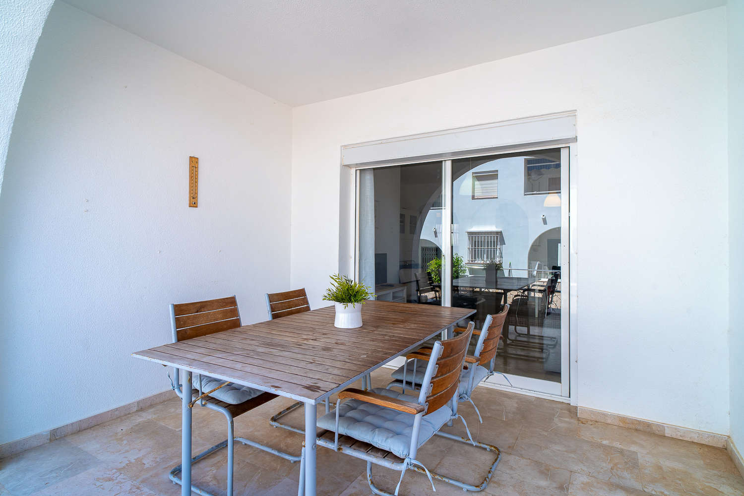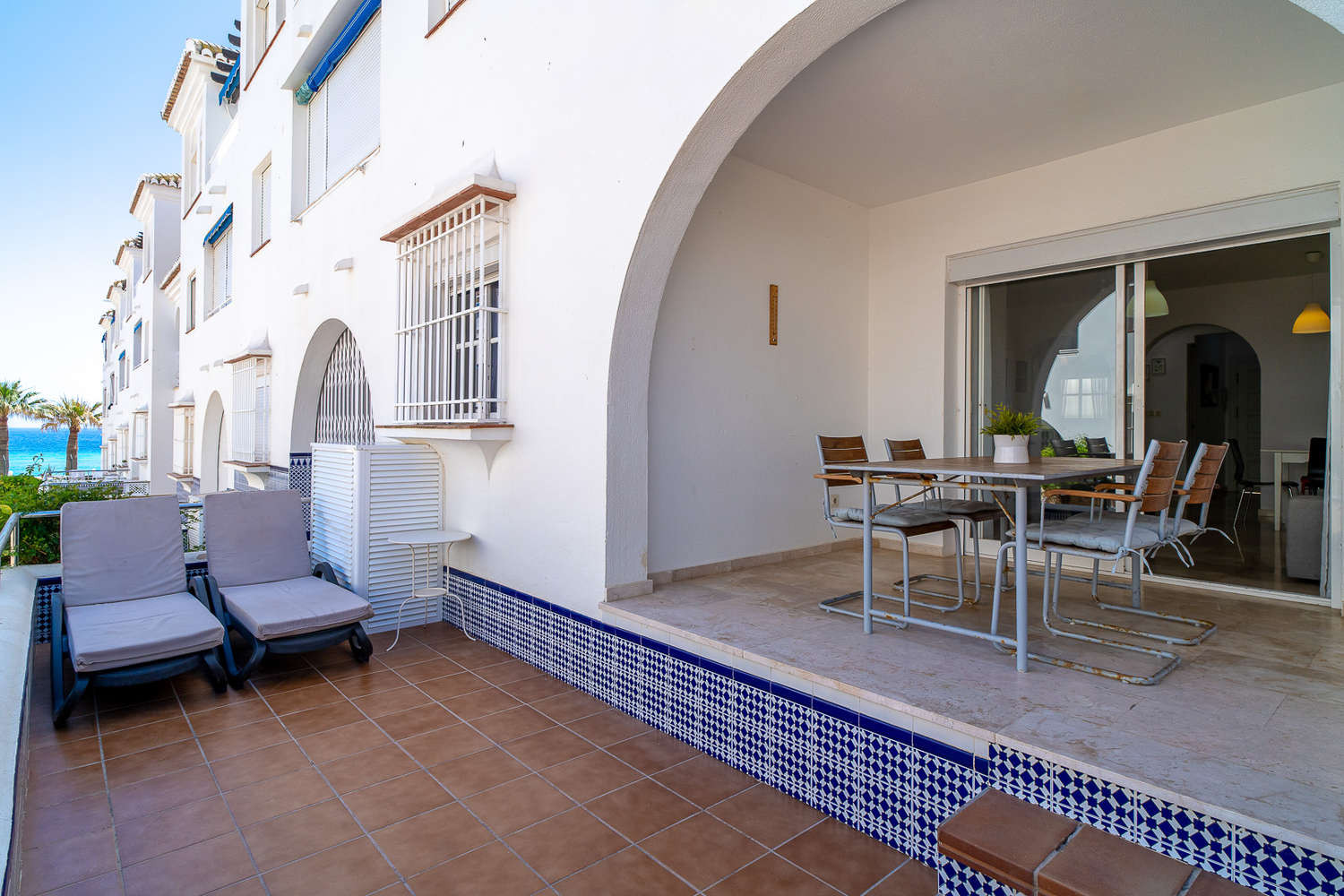 Indoor and outdoor living: The living room flows directly onto the terrace, which acts as a natural extension of the space to enjoy the sea breeze. Thanks to its southern orientation, the property receives natural light throughout the day, while the central air conditioning ensures thermal comfort in all rooms without exception.