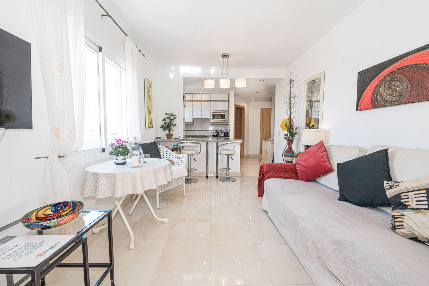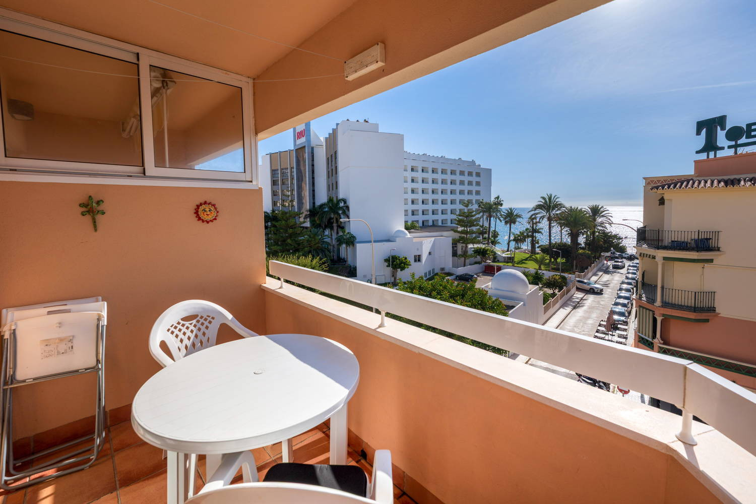 Flat is perfect location for Torrecilla beach. Restaurants and a few bars on your doorstep. Air conditioning in both rooms. Equipped with everything you could possibly need. Ten minute walk to the Balcon de Europe. Casasol offer an excellent service. Taxi waiting for us at airport and Ana waiting for us at apartment on arrival, nothing is to much trouble. Would return to apartment and definitely book with Casasol again.