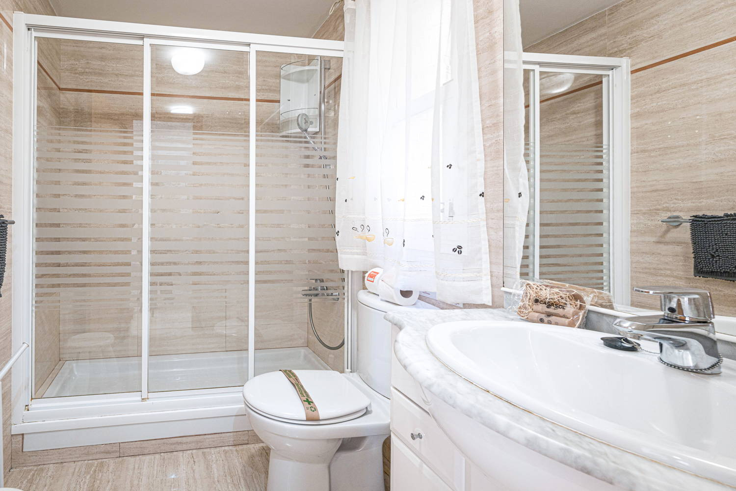 The Property: A spacious home designed for the comfort of two people. It has a bedroom with a double bed, a bathroom with a shower tray and a fully equipped kitchen so you can manage your stay with complete autonomy. The living room is the heart of the accommodation, offering a relaxing space with air conditioning and natural light.